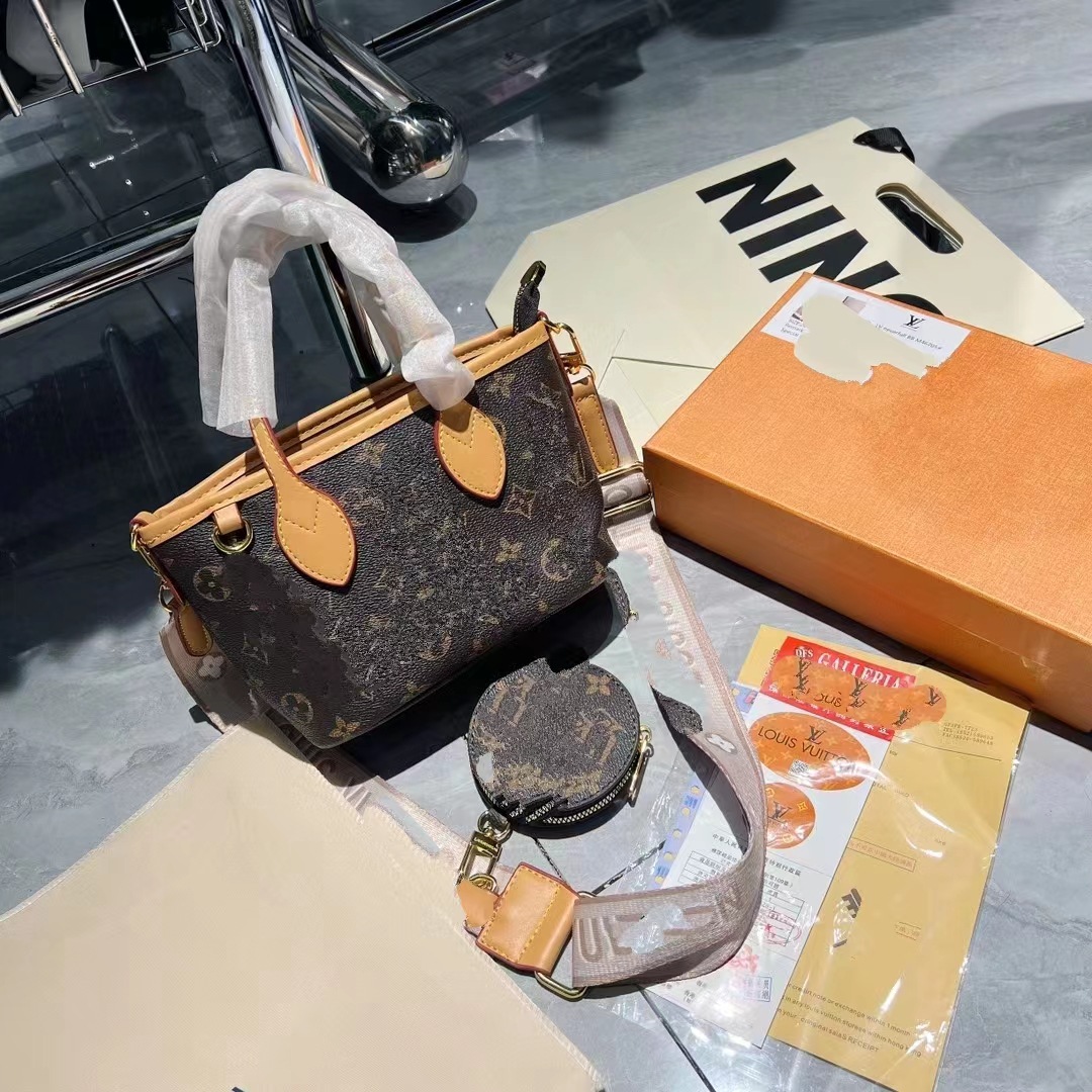 2023新款托特包老花实胶面料单肩宽肩带斜跨包女士手提两件套女包
