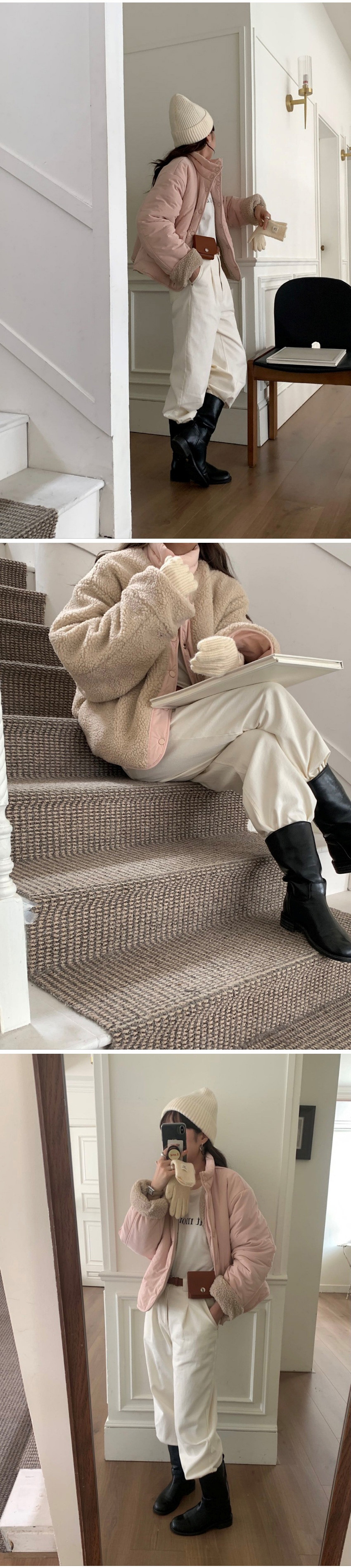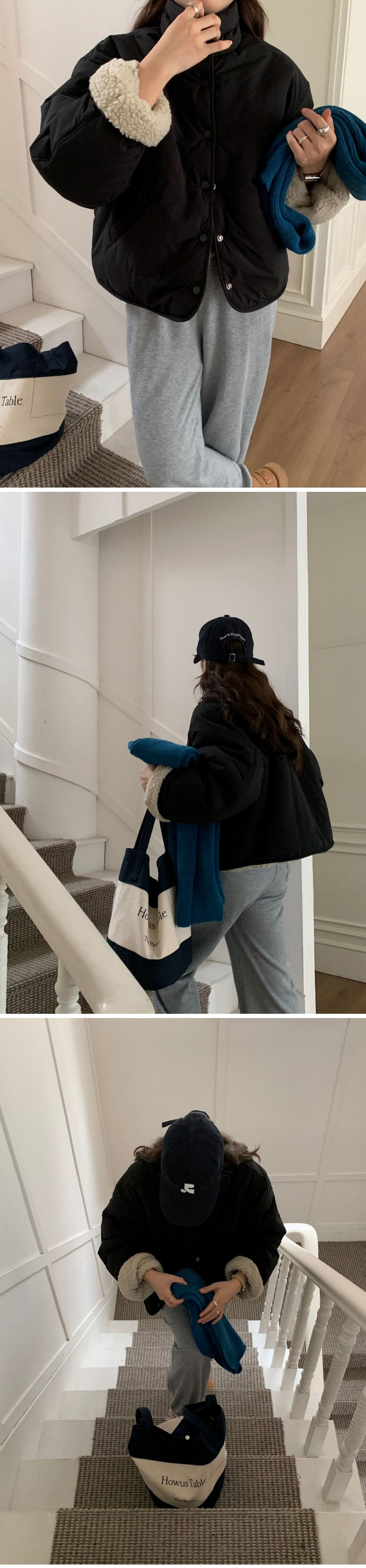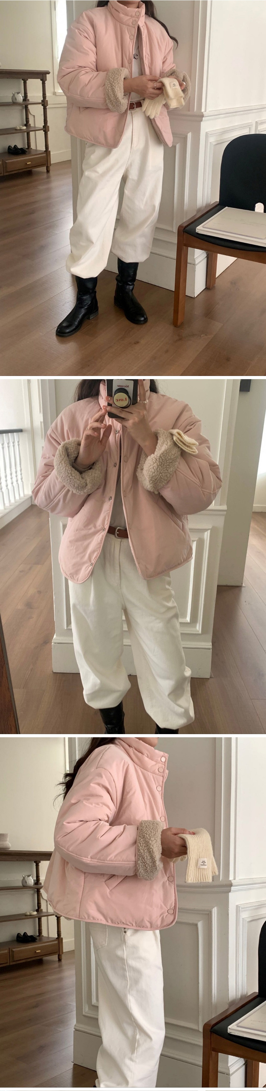 韩国chic秋冬甜美减龄立领单排扣两穿设计宽松休闲百搭棉服外套女