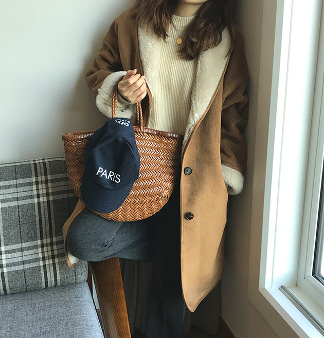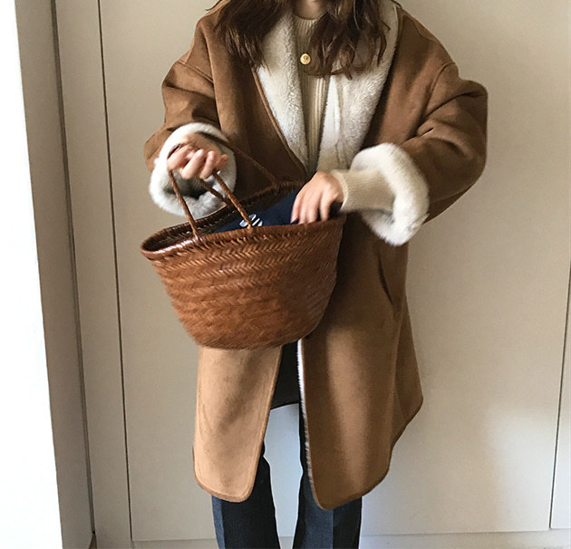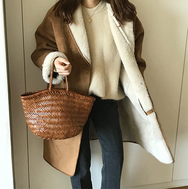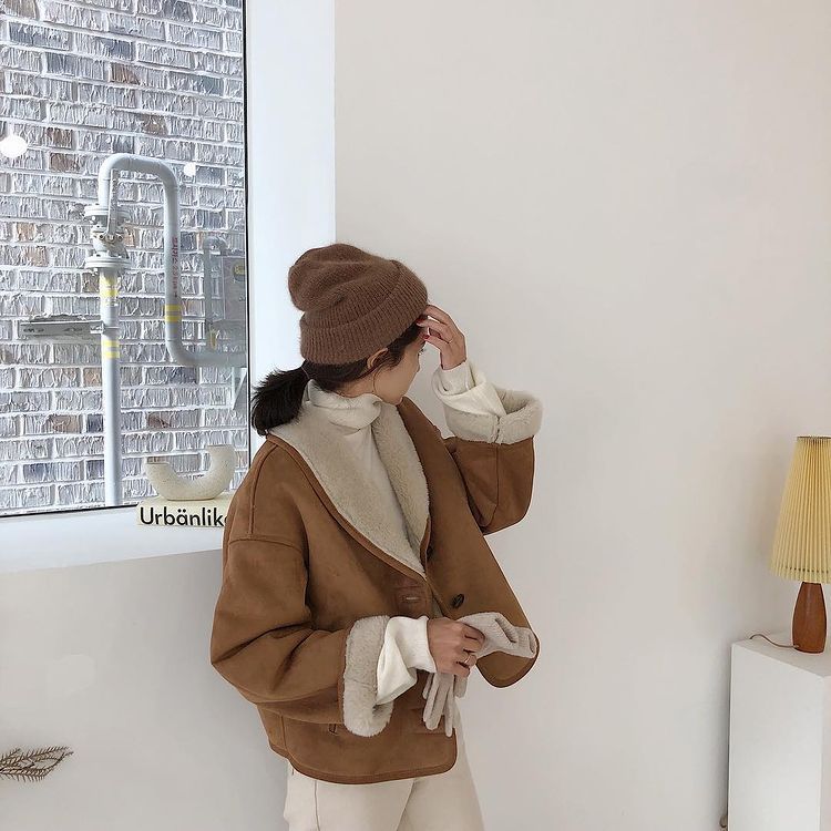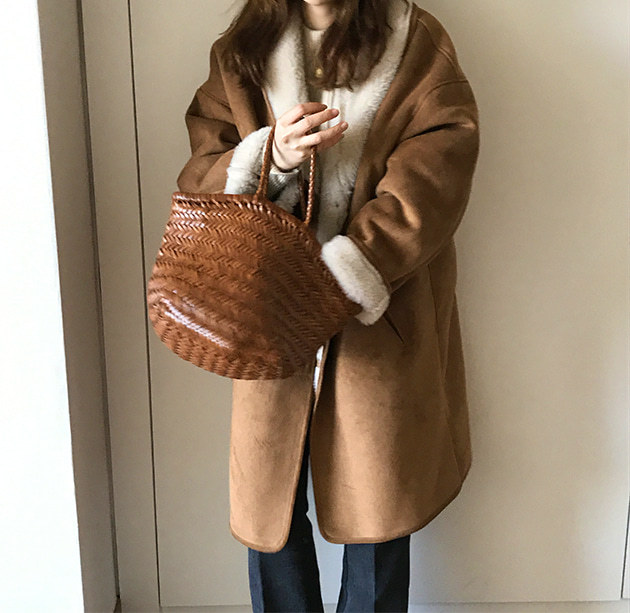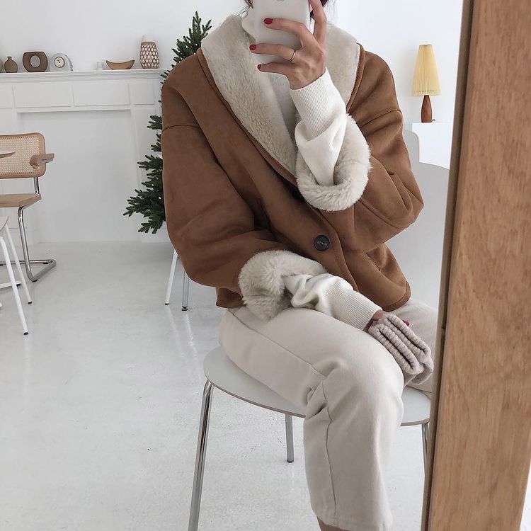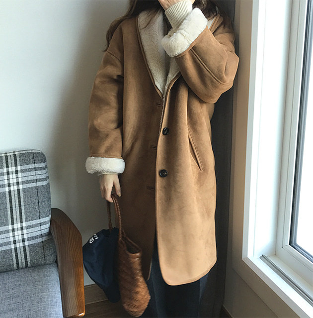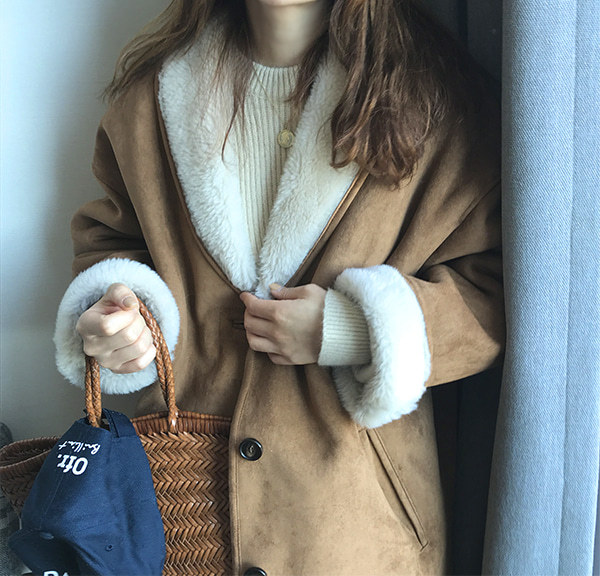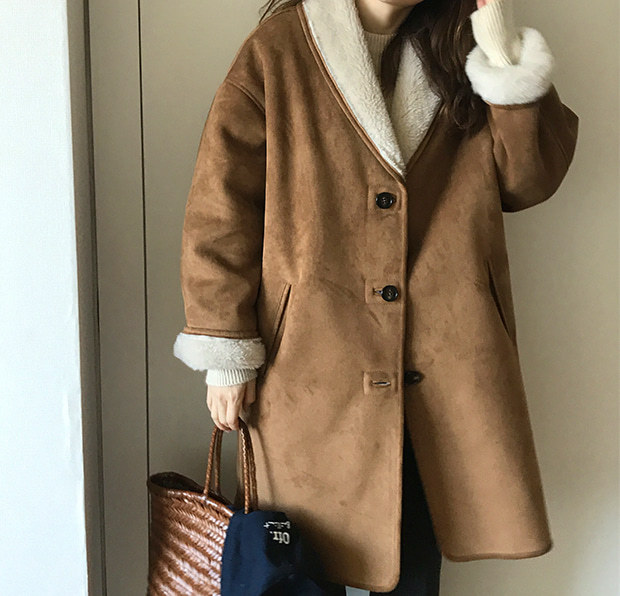 复古加厚拼接羊羔毛棉服外套女冬季设计感小众皮毛一体呢子大衣潮