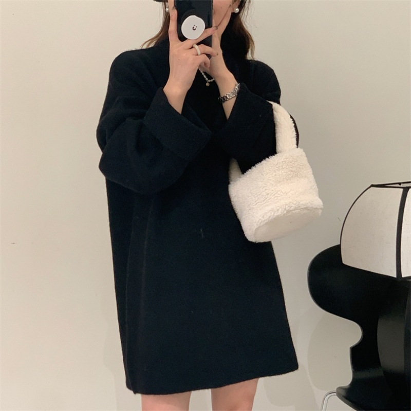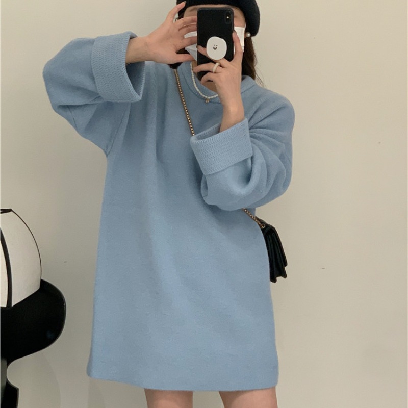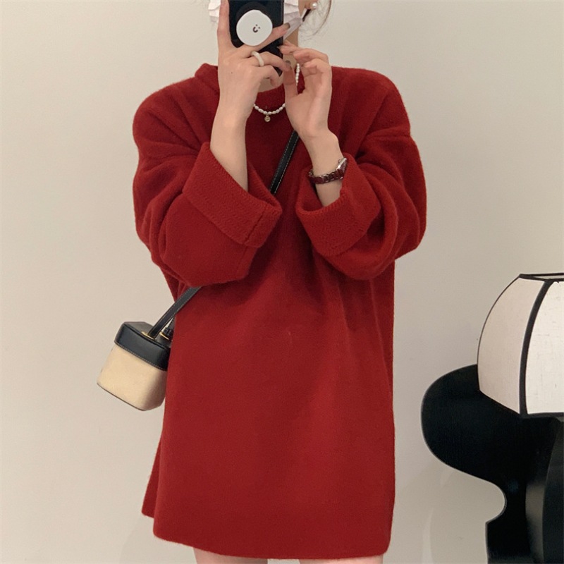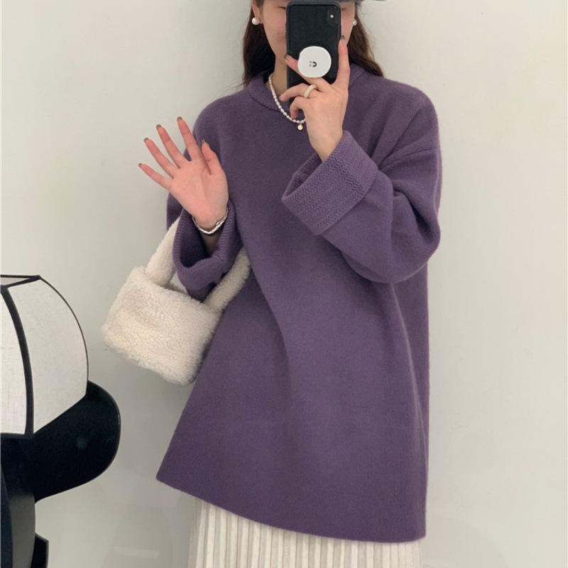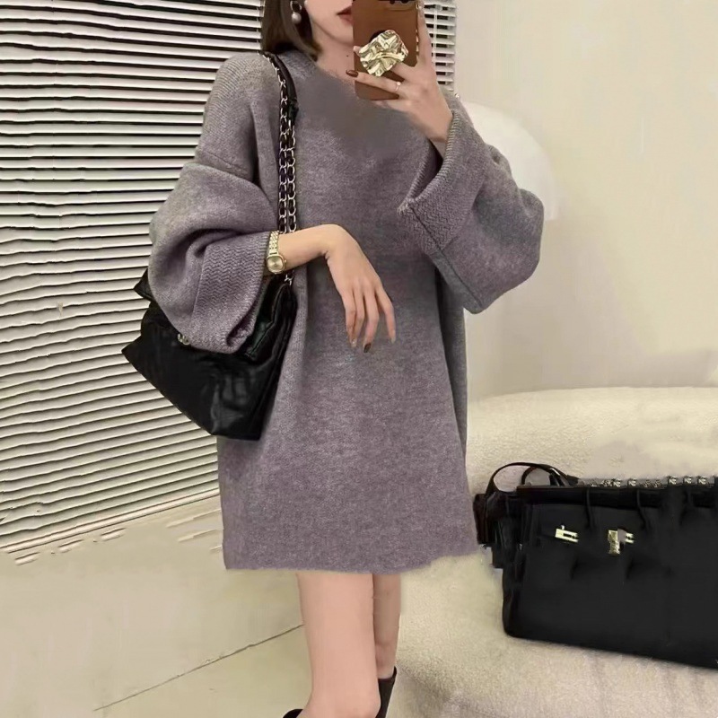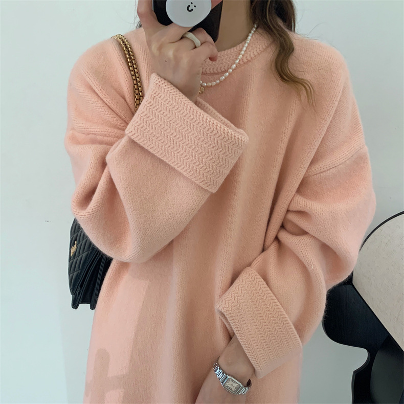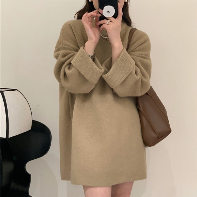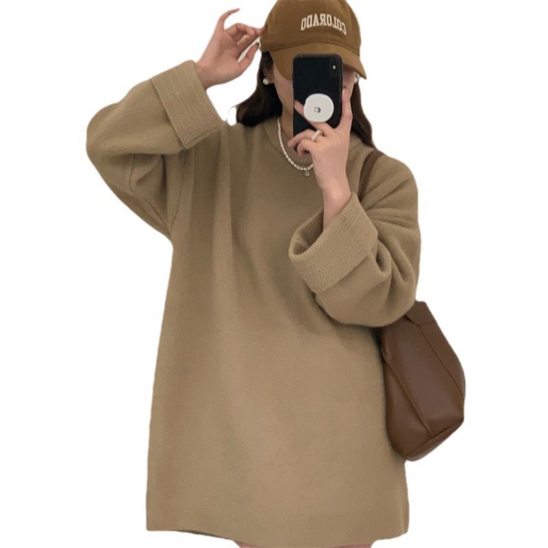 软糯新款大码毛衣女秋冬外穿中长款日系慵懒复古宽松套头针织衫
