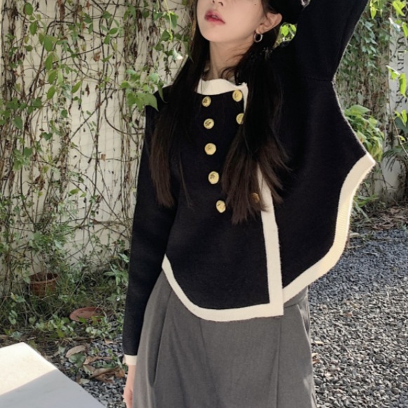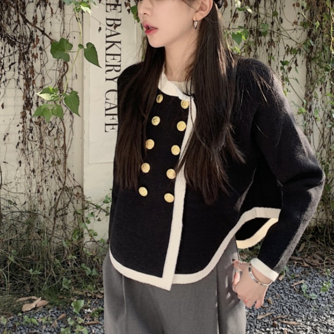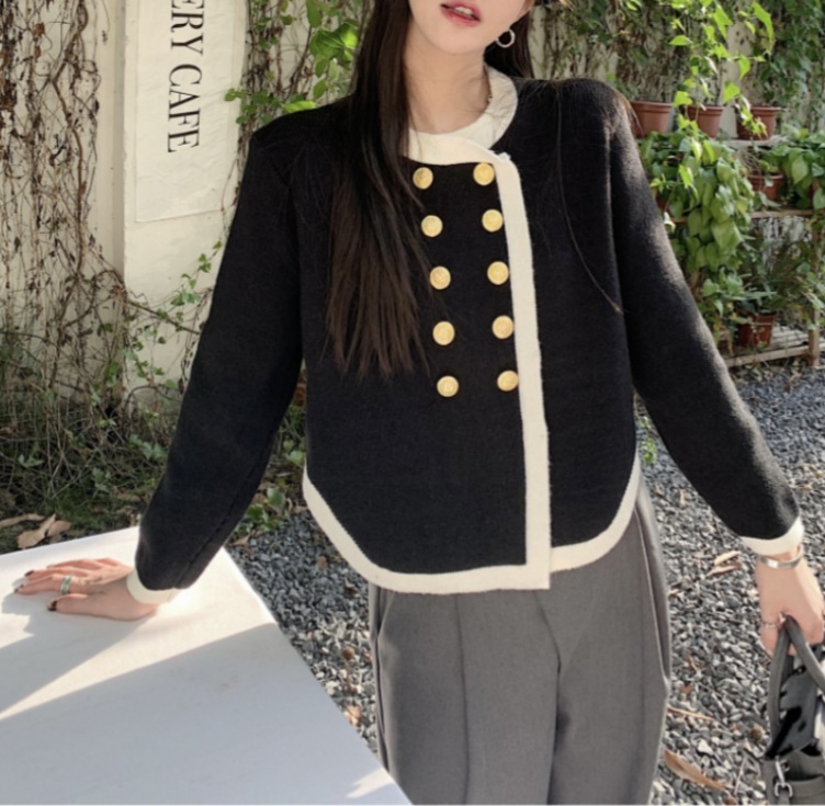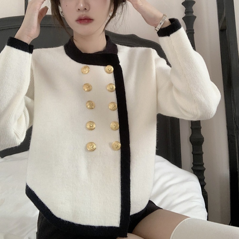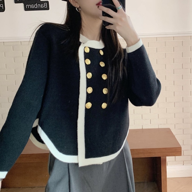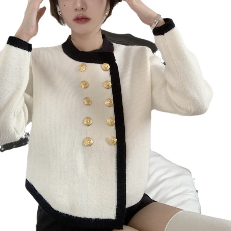高级感毛衣外套秋冬女小香风气质韩版外搭女士针织开衫上衣双排扣