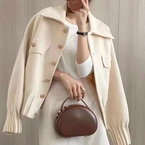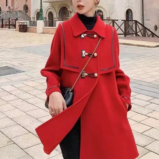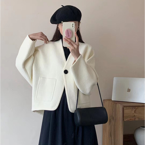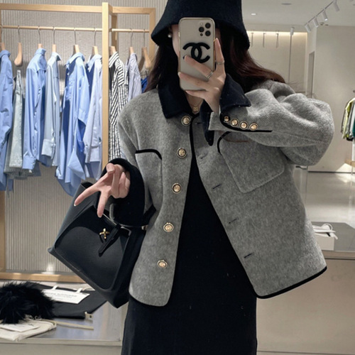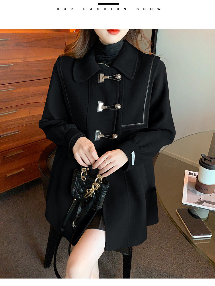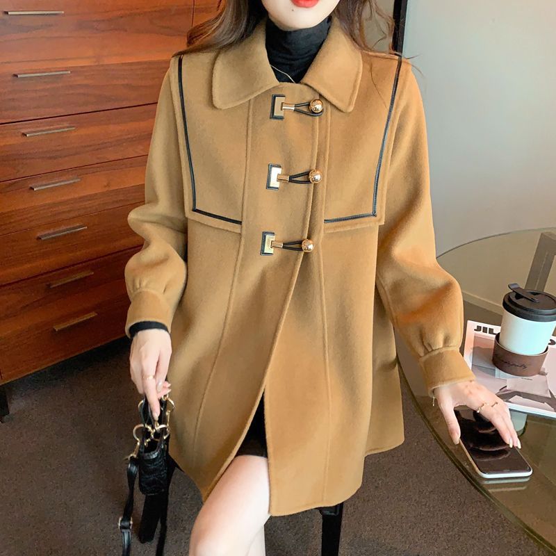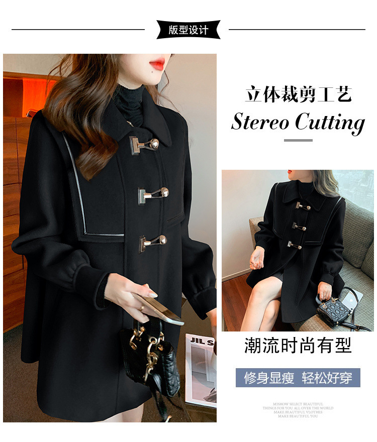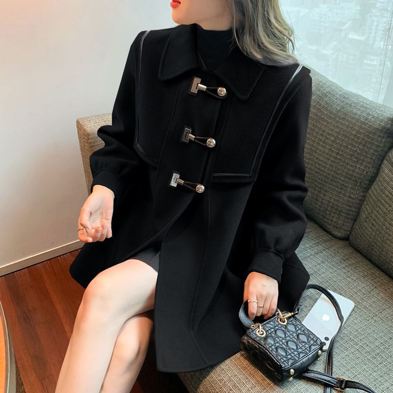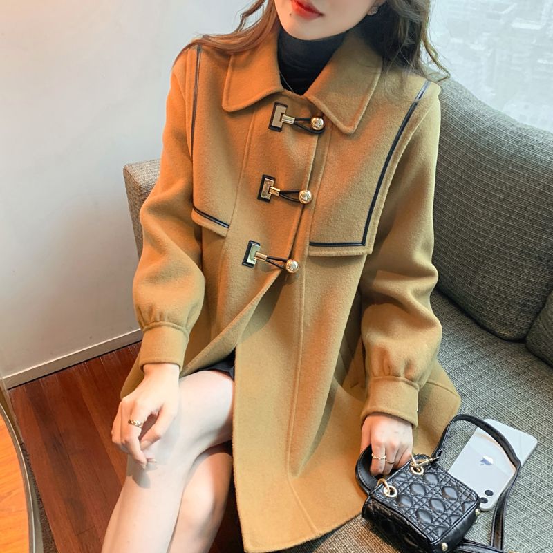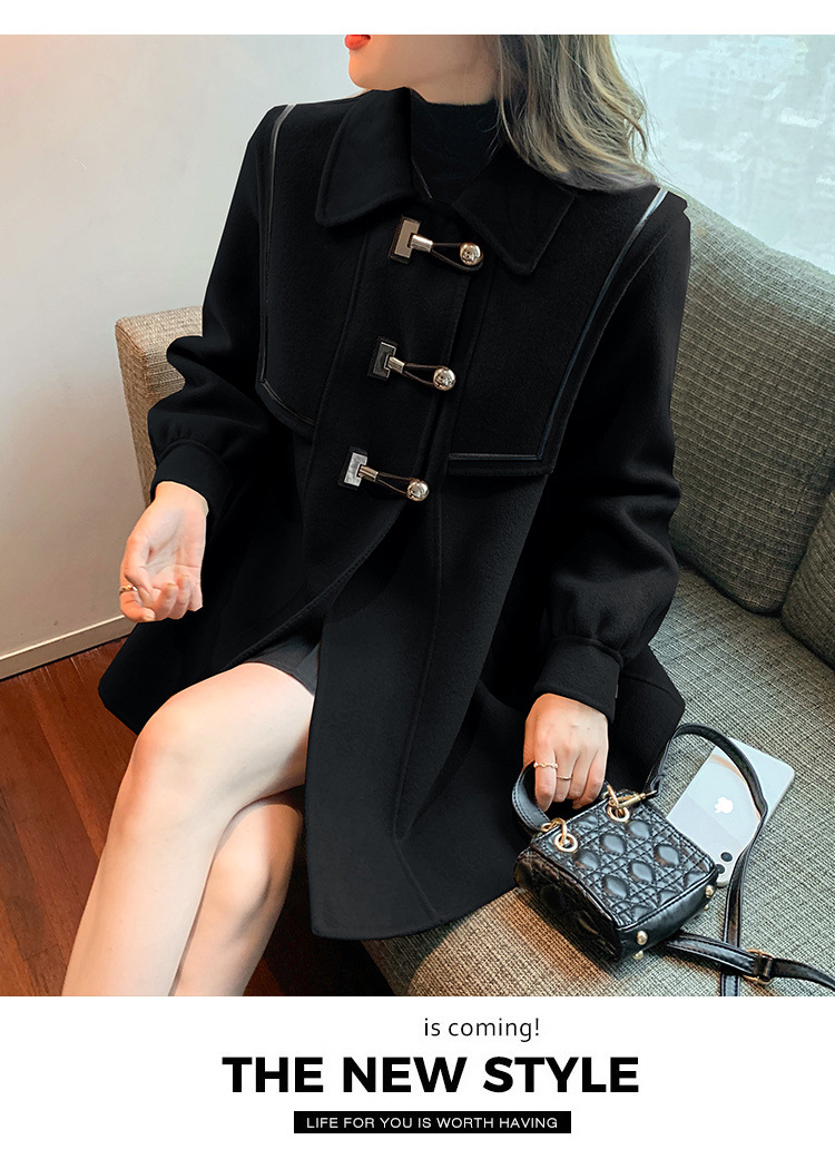 冬季毛呢厚外套女装中长款大衣2023年新款小个子气质双面绒上衣服