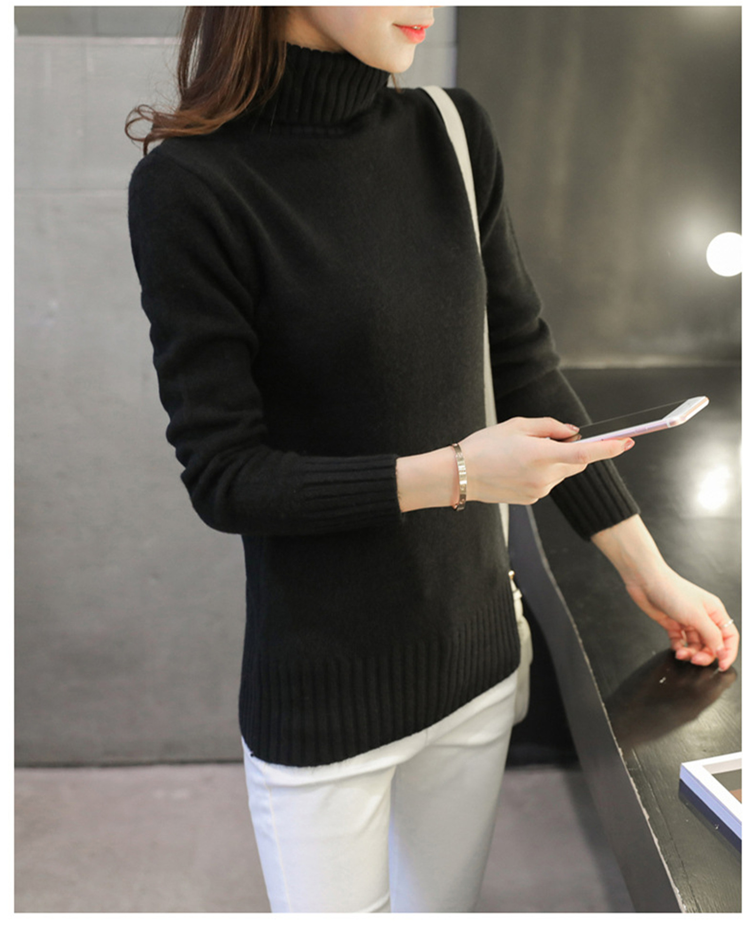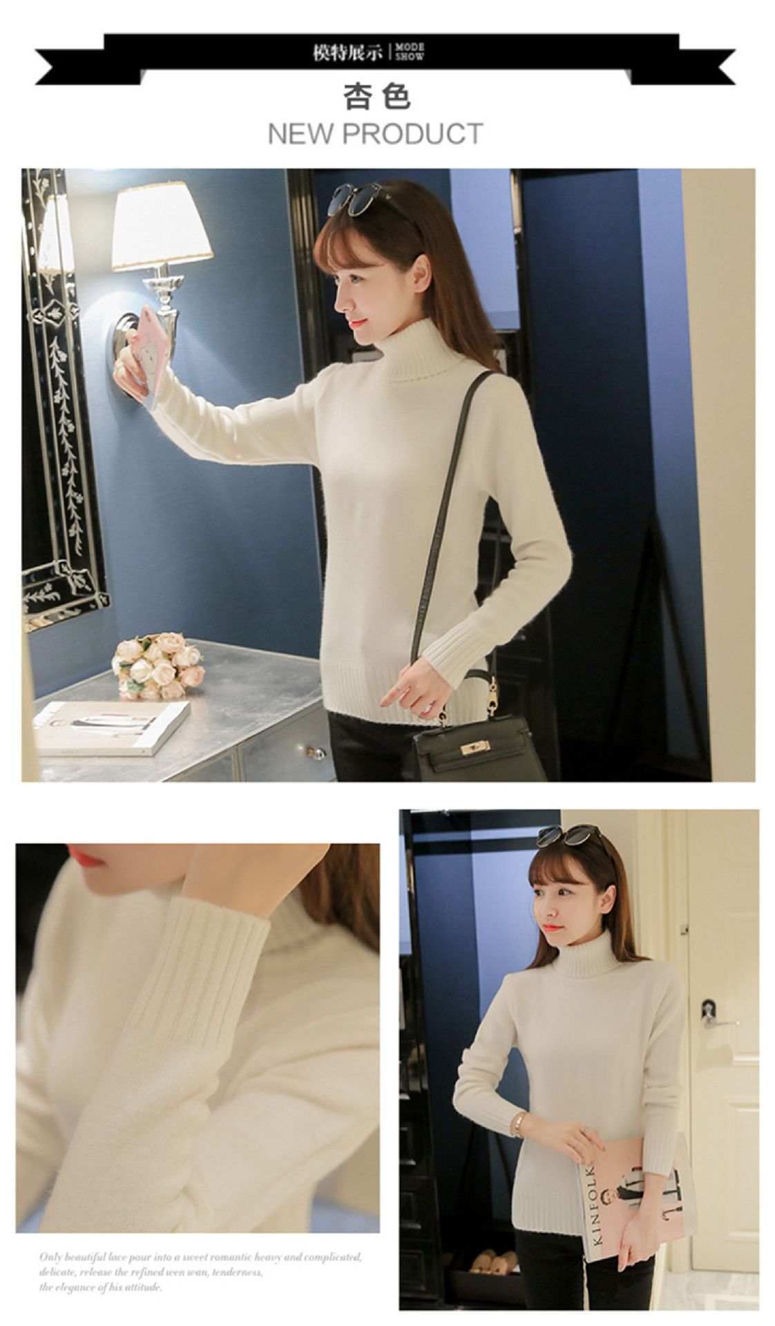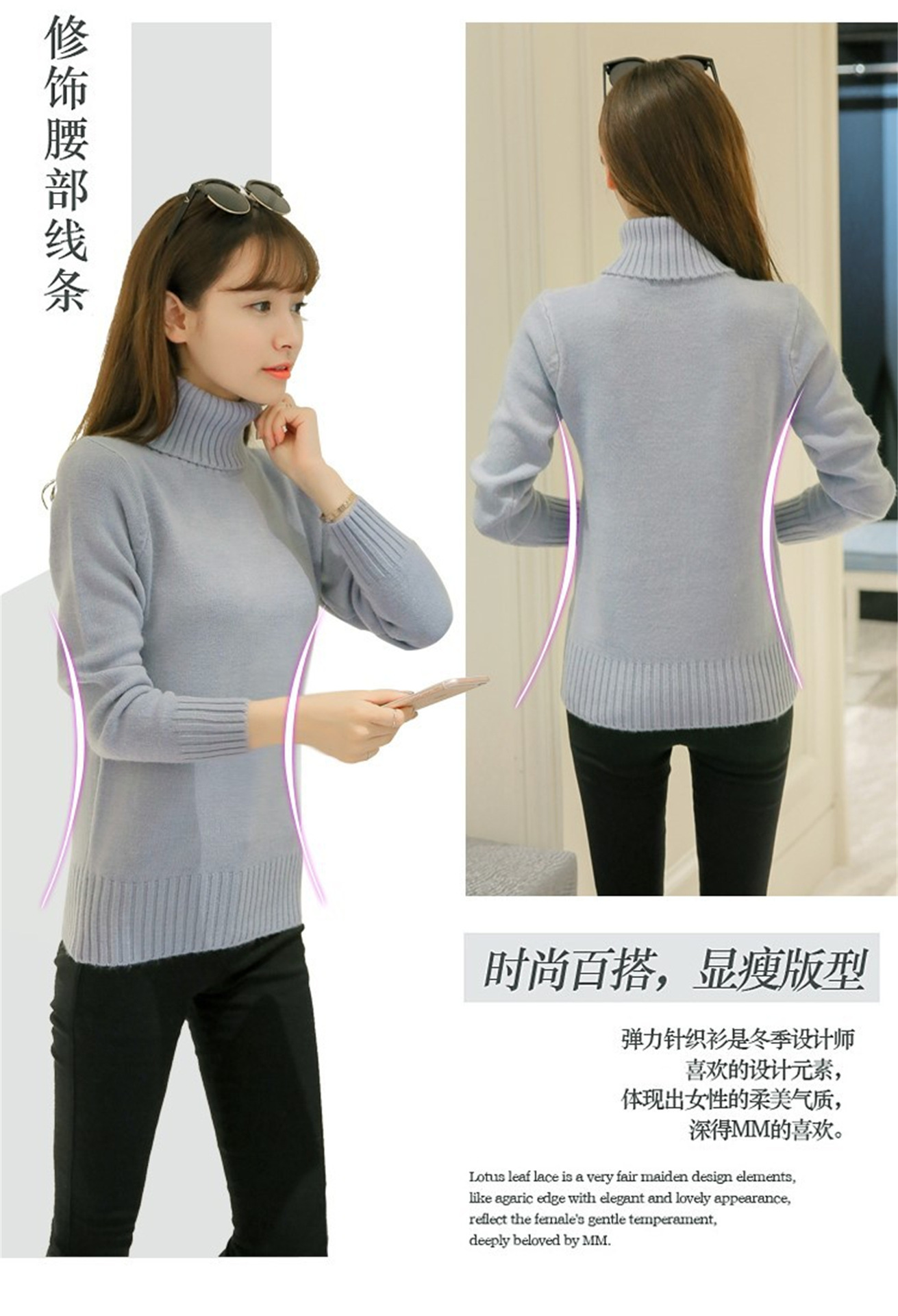 软糯女士毛衣2023新款秋冬高领套头长袖纯色针织衫韩版舒适打底衫