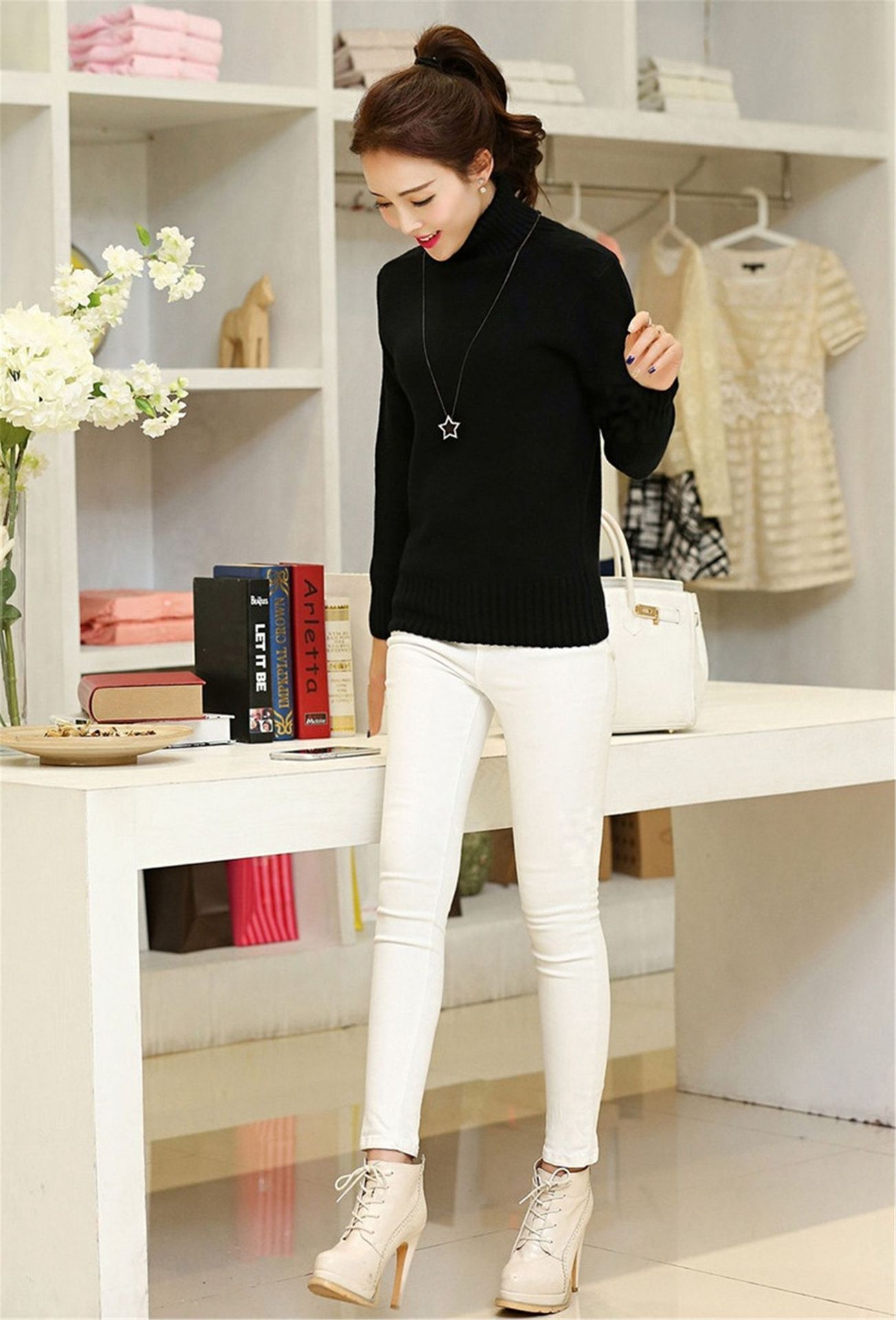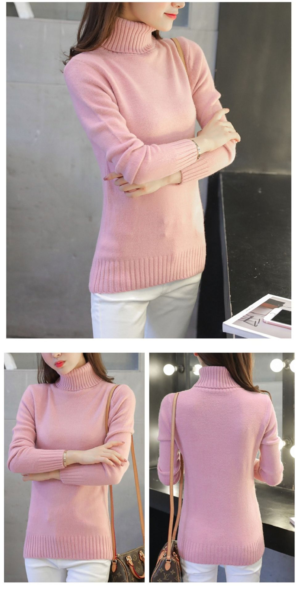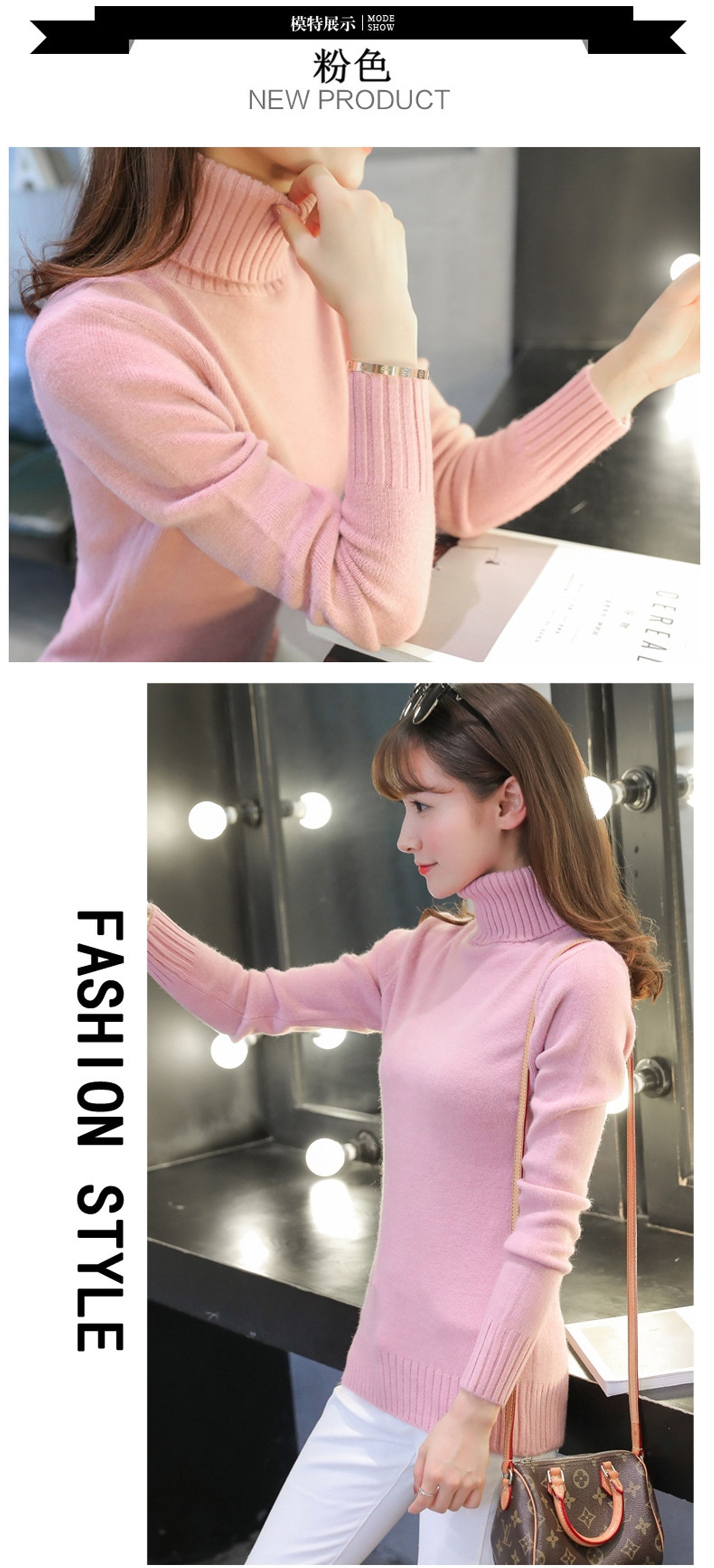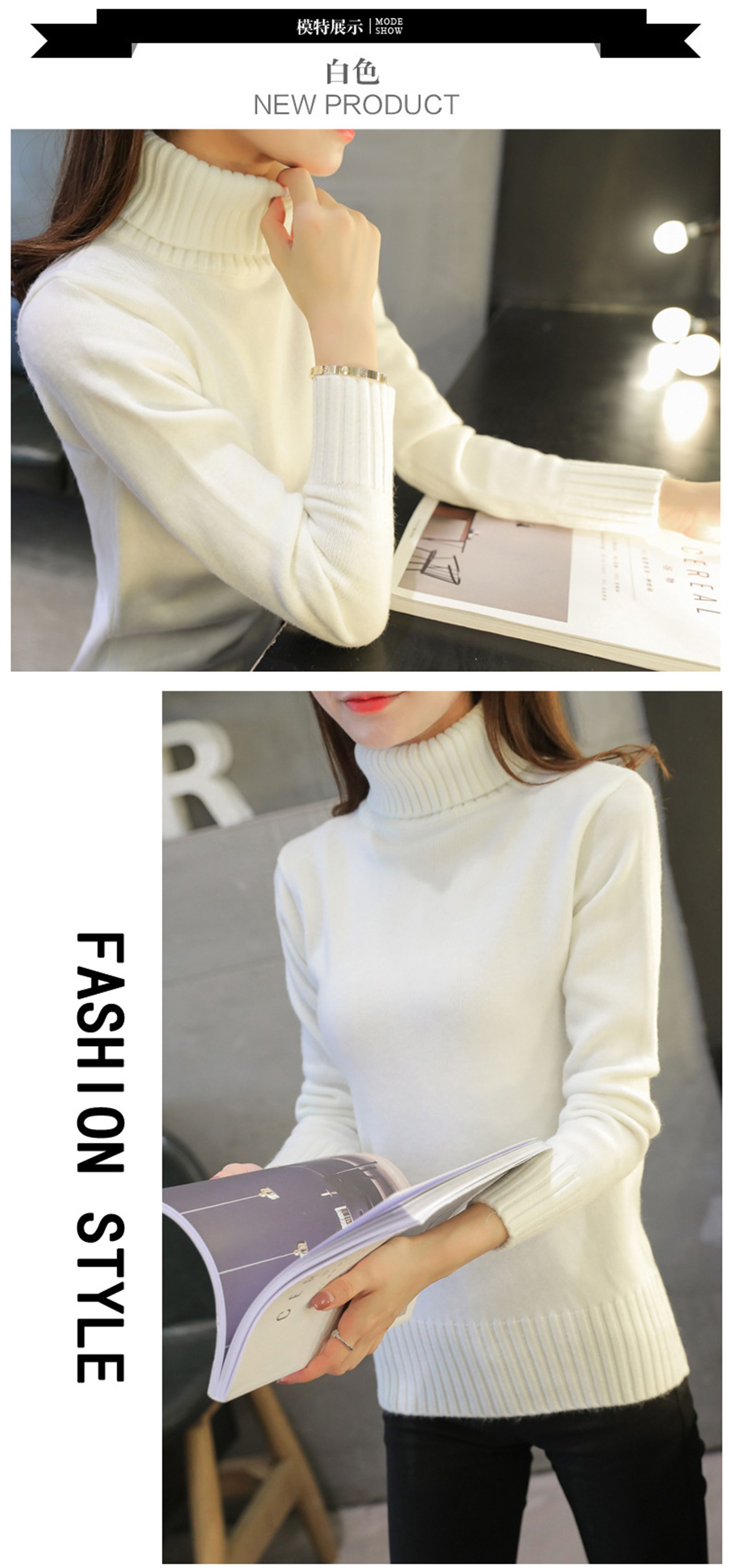 软糯女士毛衣2023新款秋冬高领套头长袖纯色针织衫韩版舒适打底衫