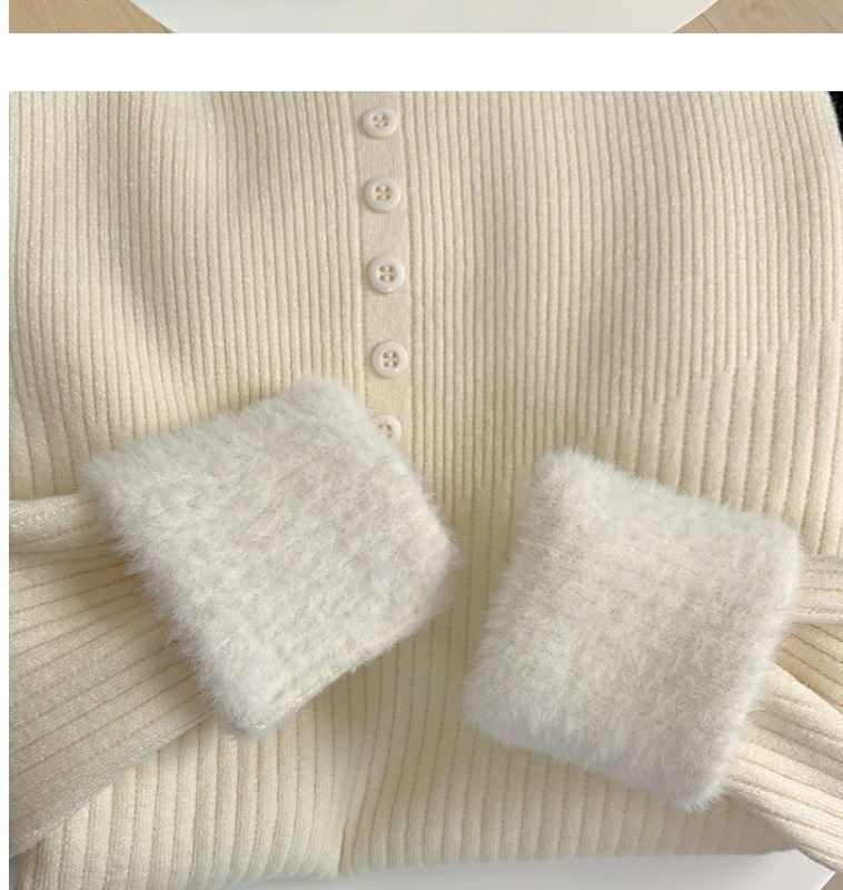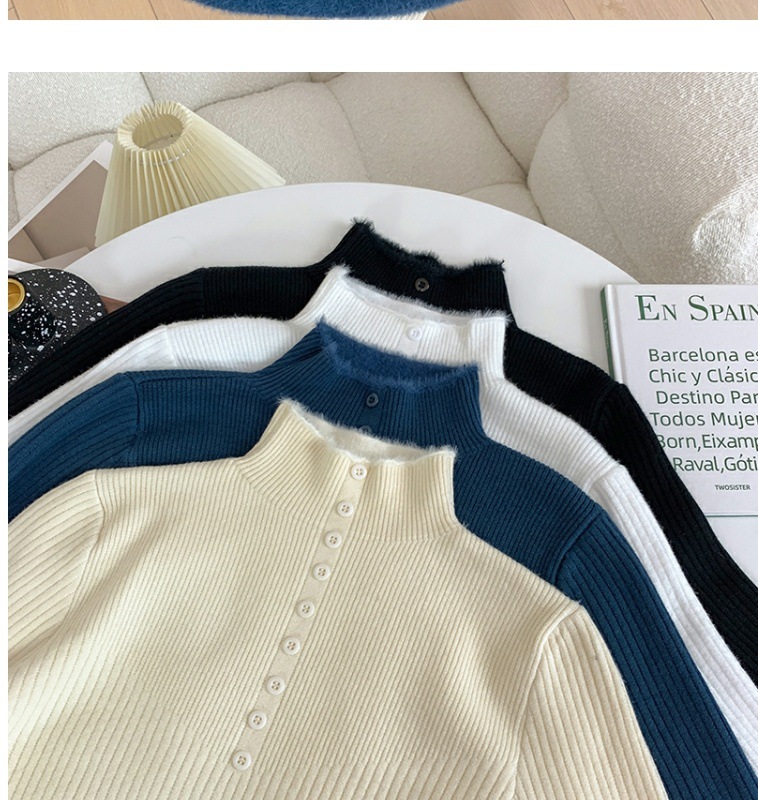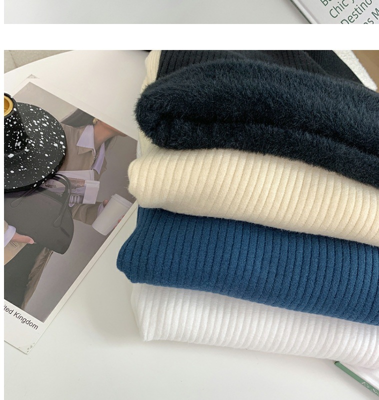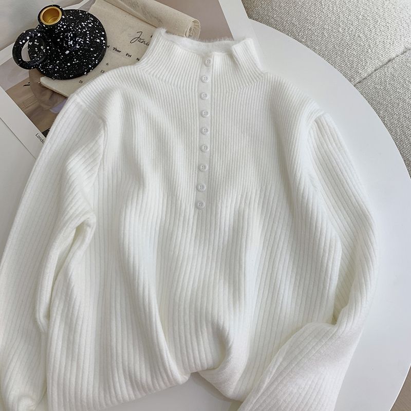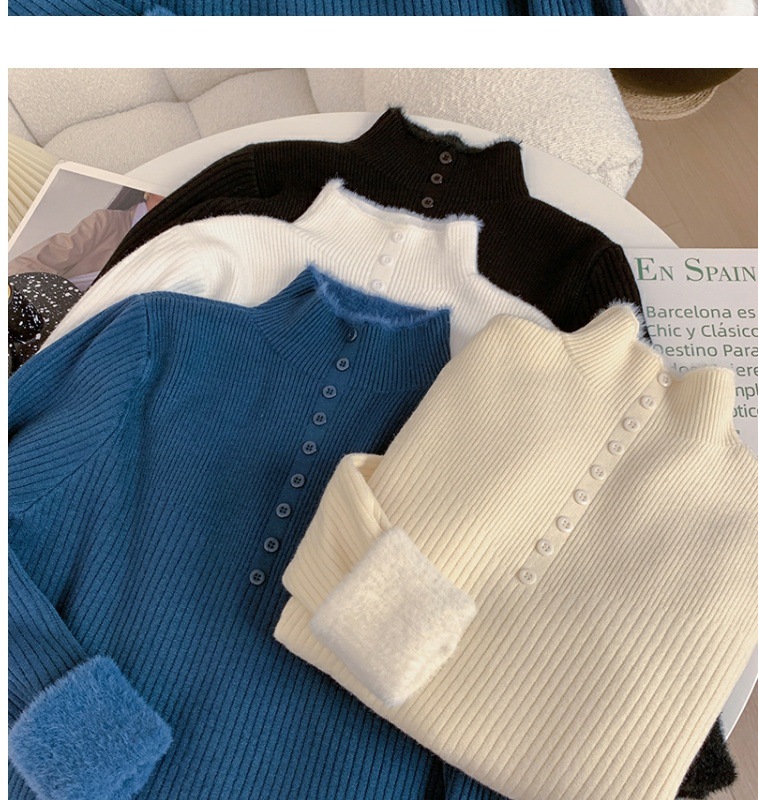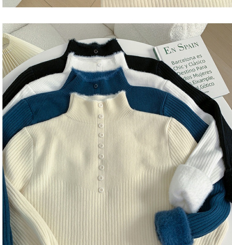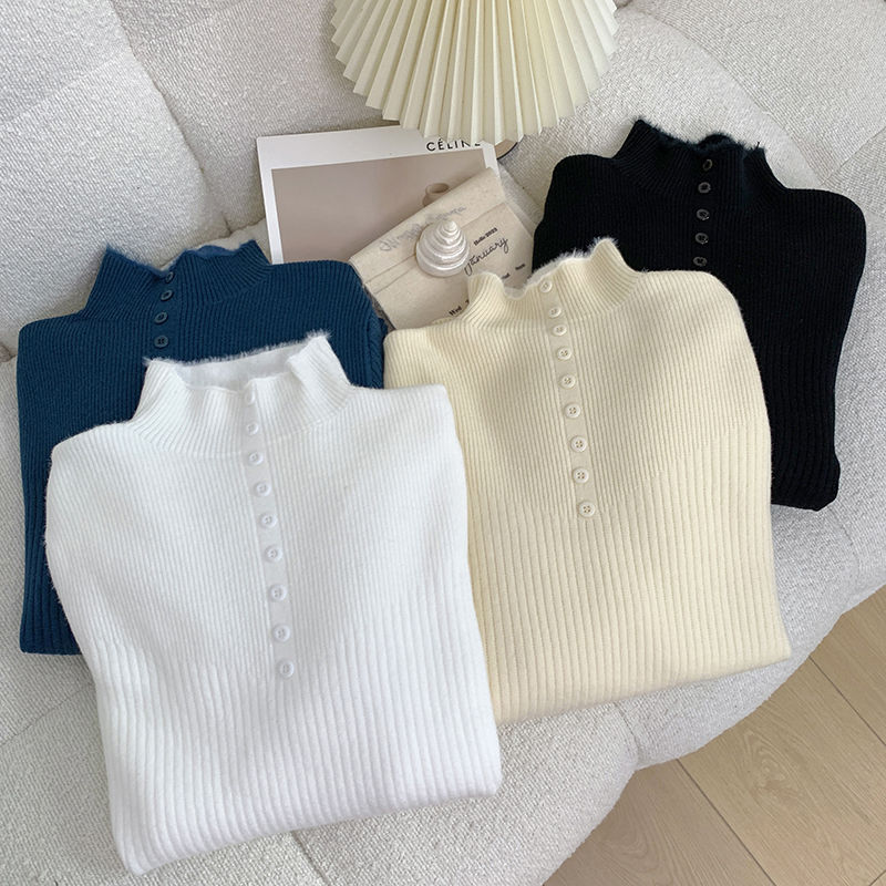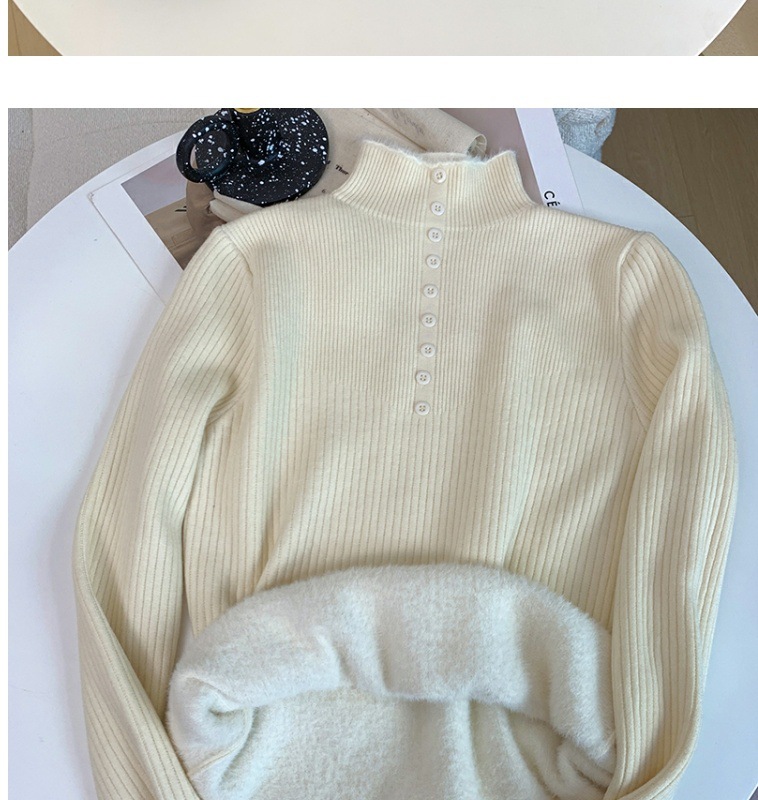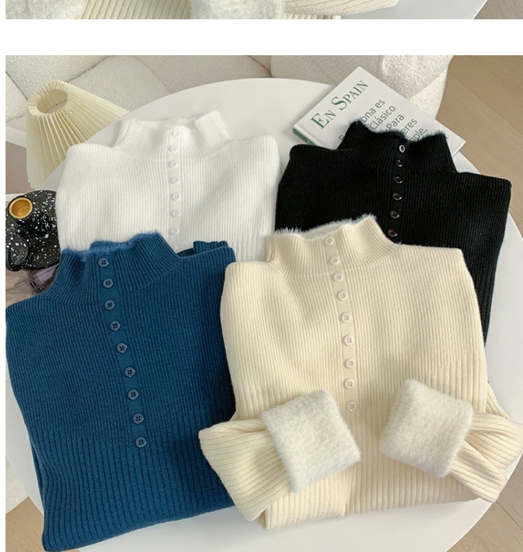 一体绒半高领长袖针织衫毛衣女秋冬季新款韩版加绒加厚打底衫上衣