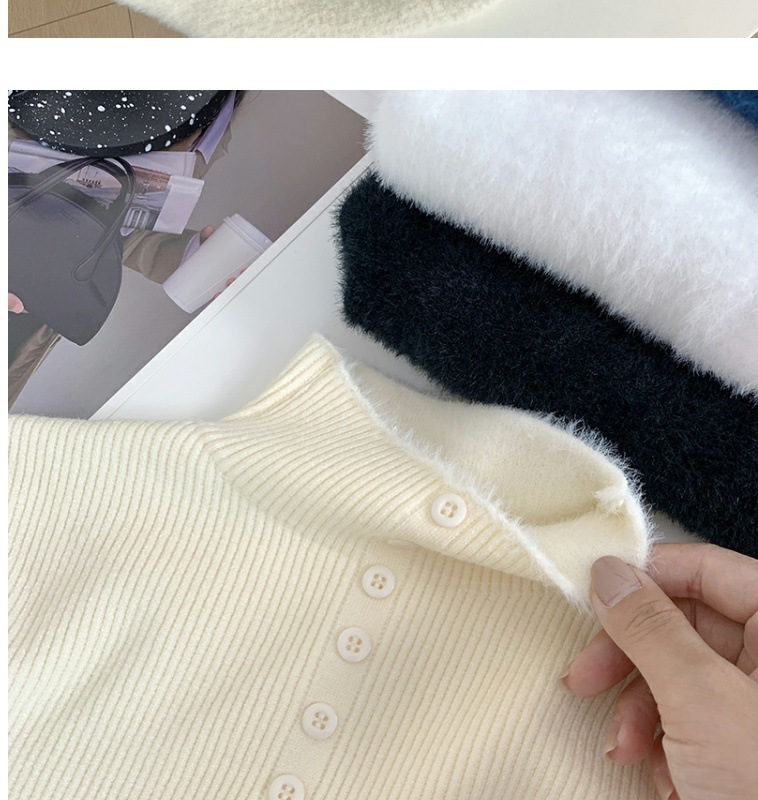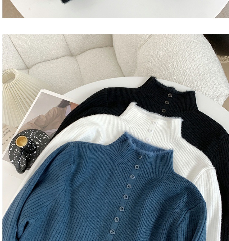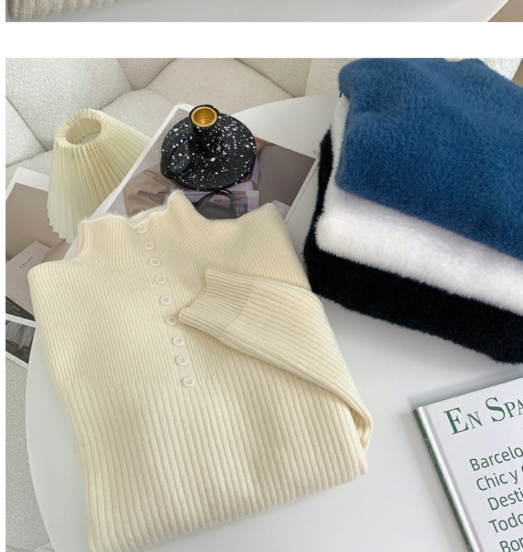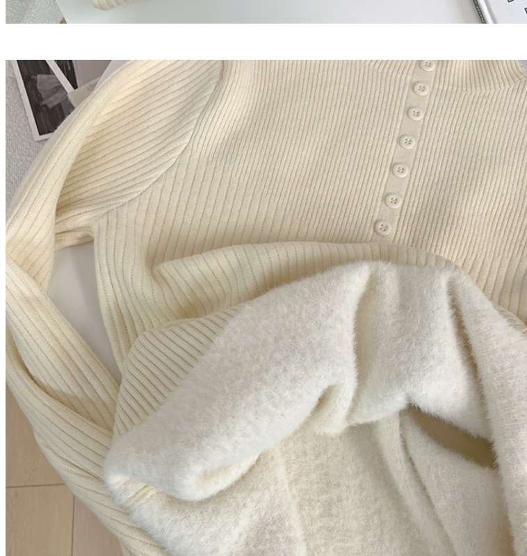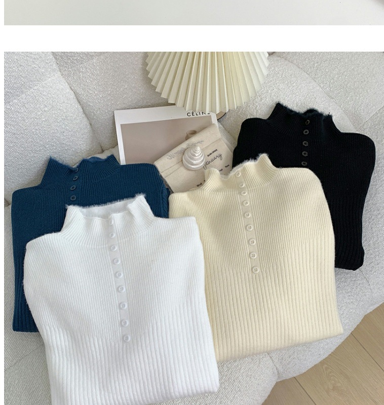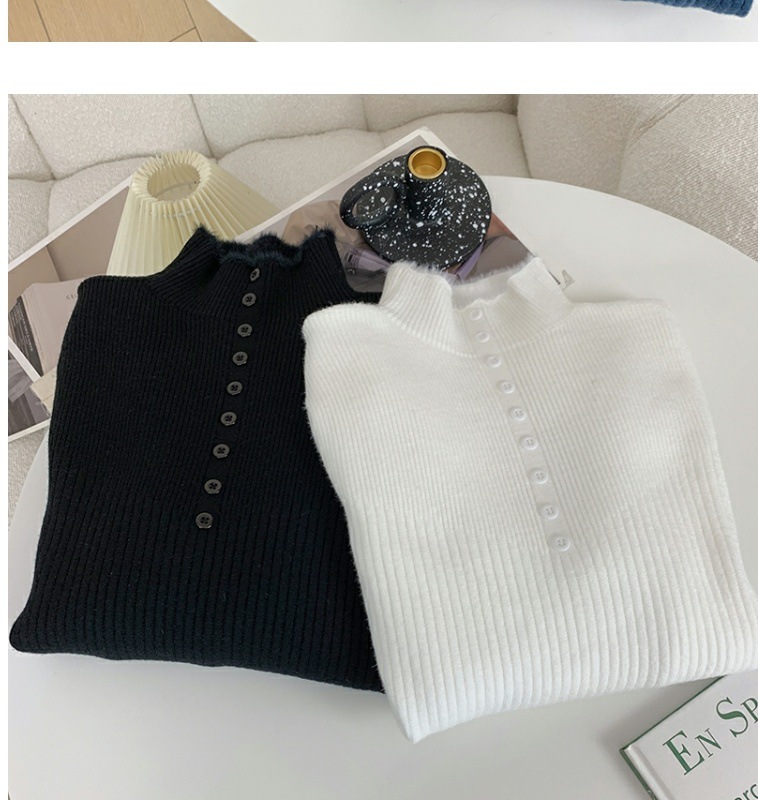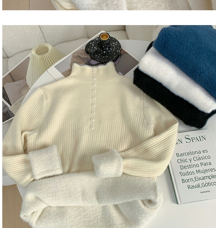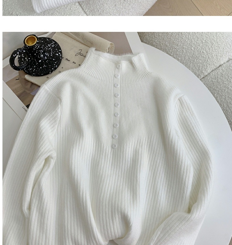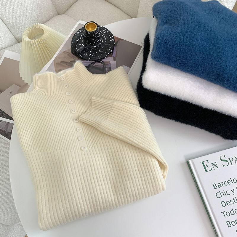 一体绒半高领长袖针织衫毛衣女秋冬季新款韩版加绒加厚打底衫上衣