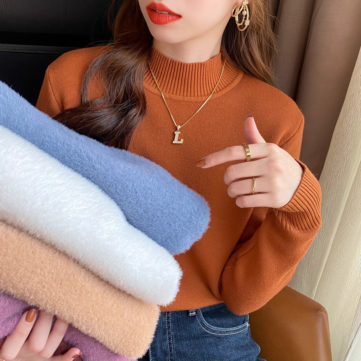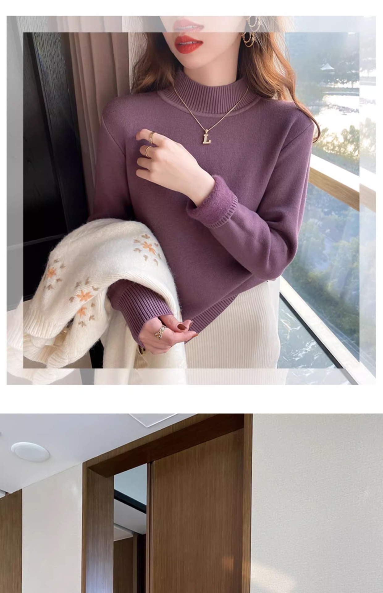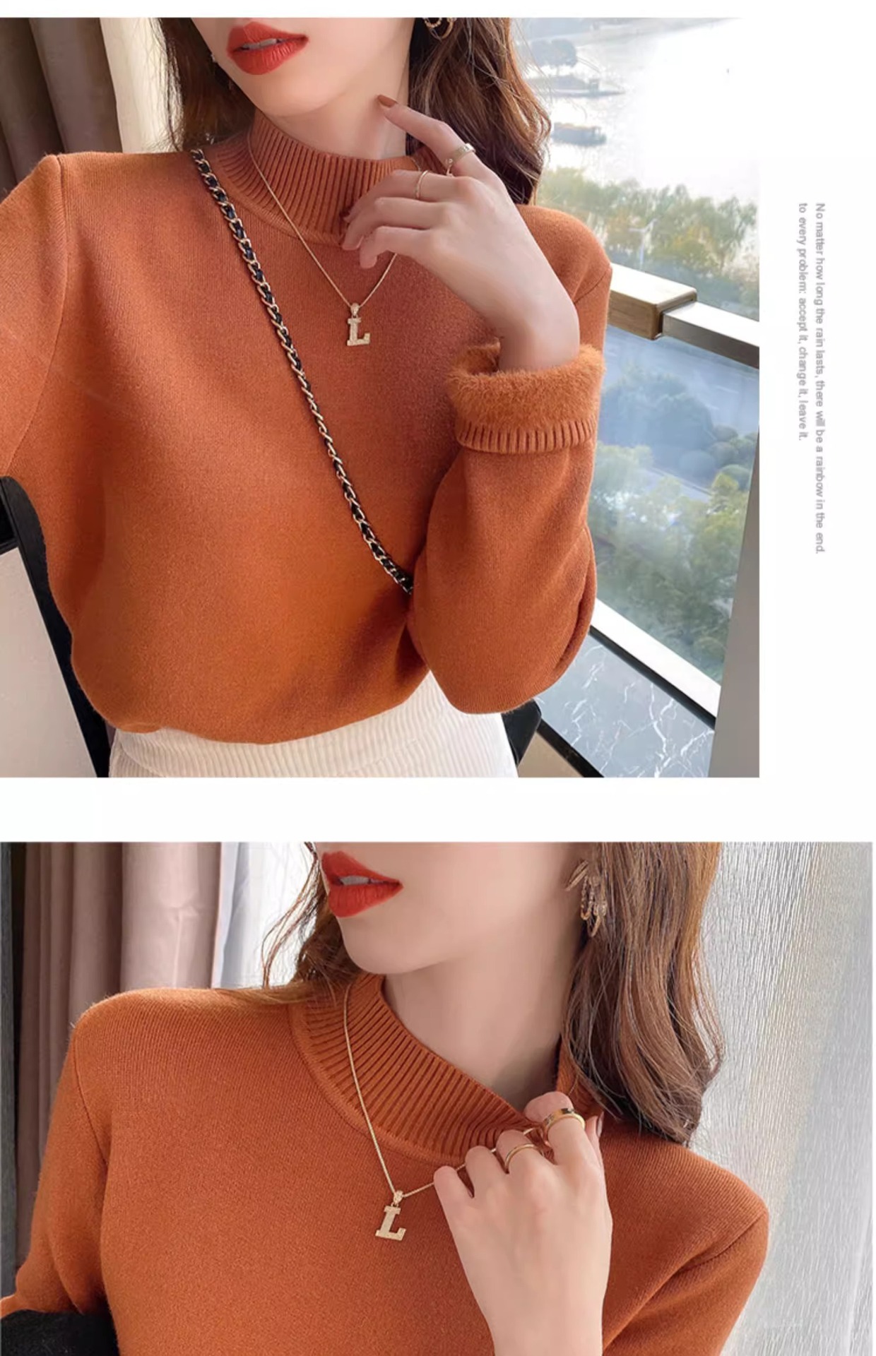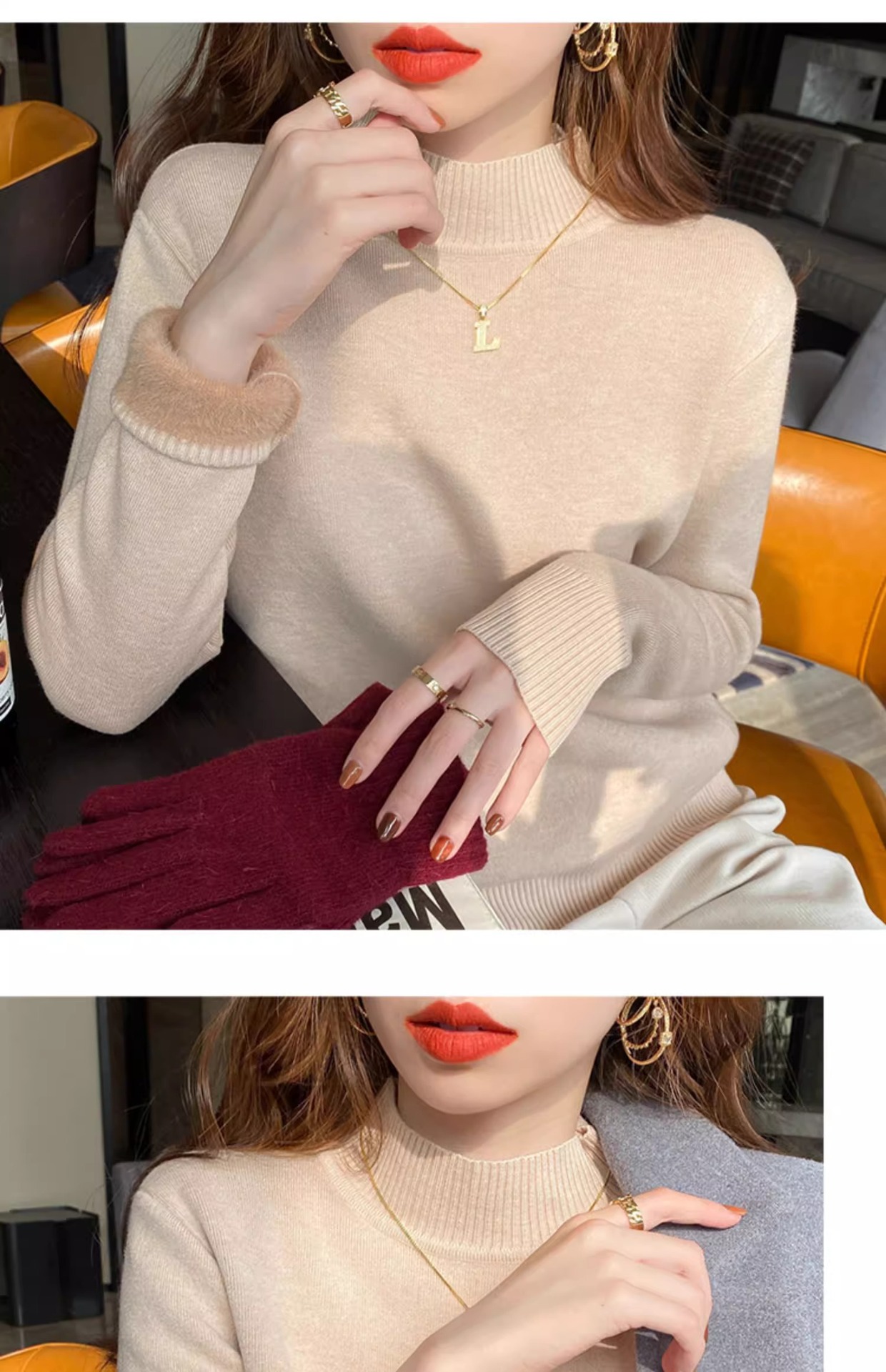 半高领打底衫女冬季新款内搭毛衣一体绒加厚保暖针织衫女士上衣冬