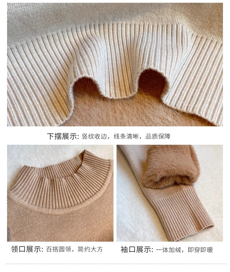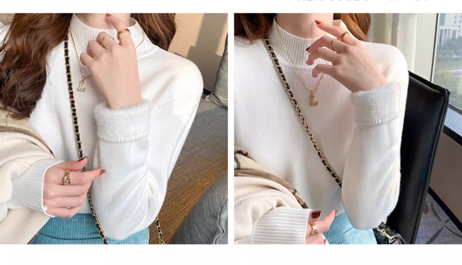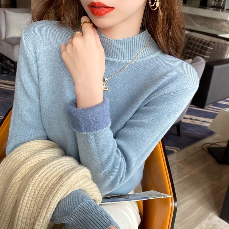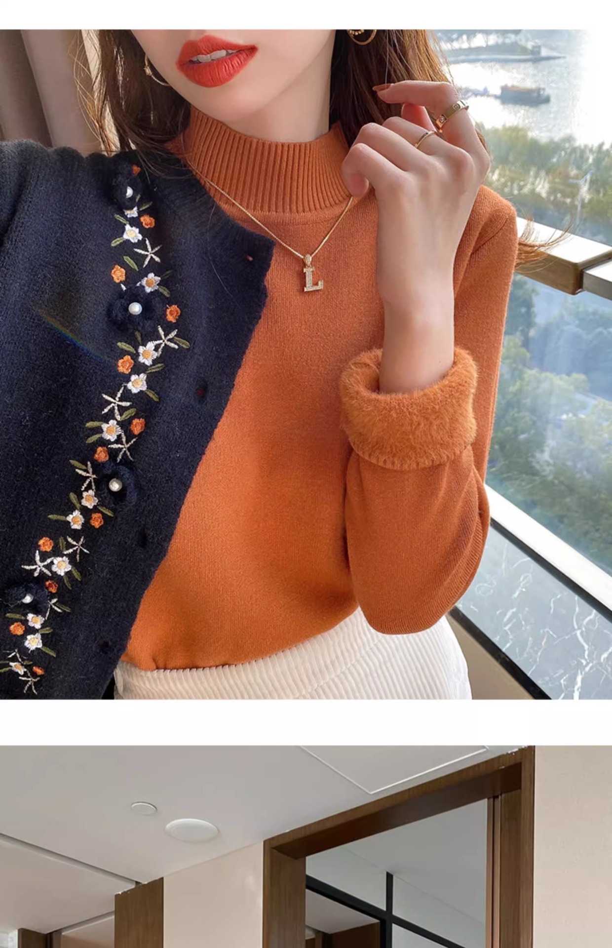 半高领打底衫女冬季新款内搭毛衣一体绒加厚保暖针织衫女士上衣冬