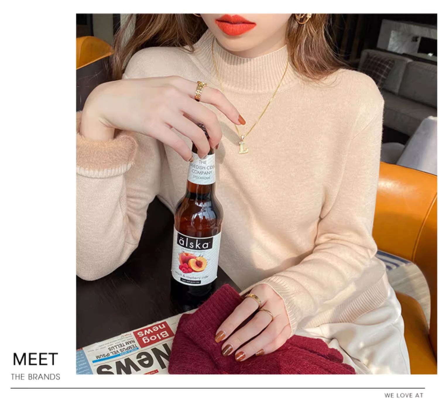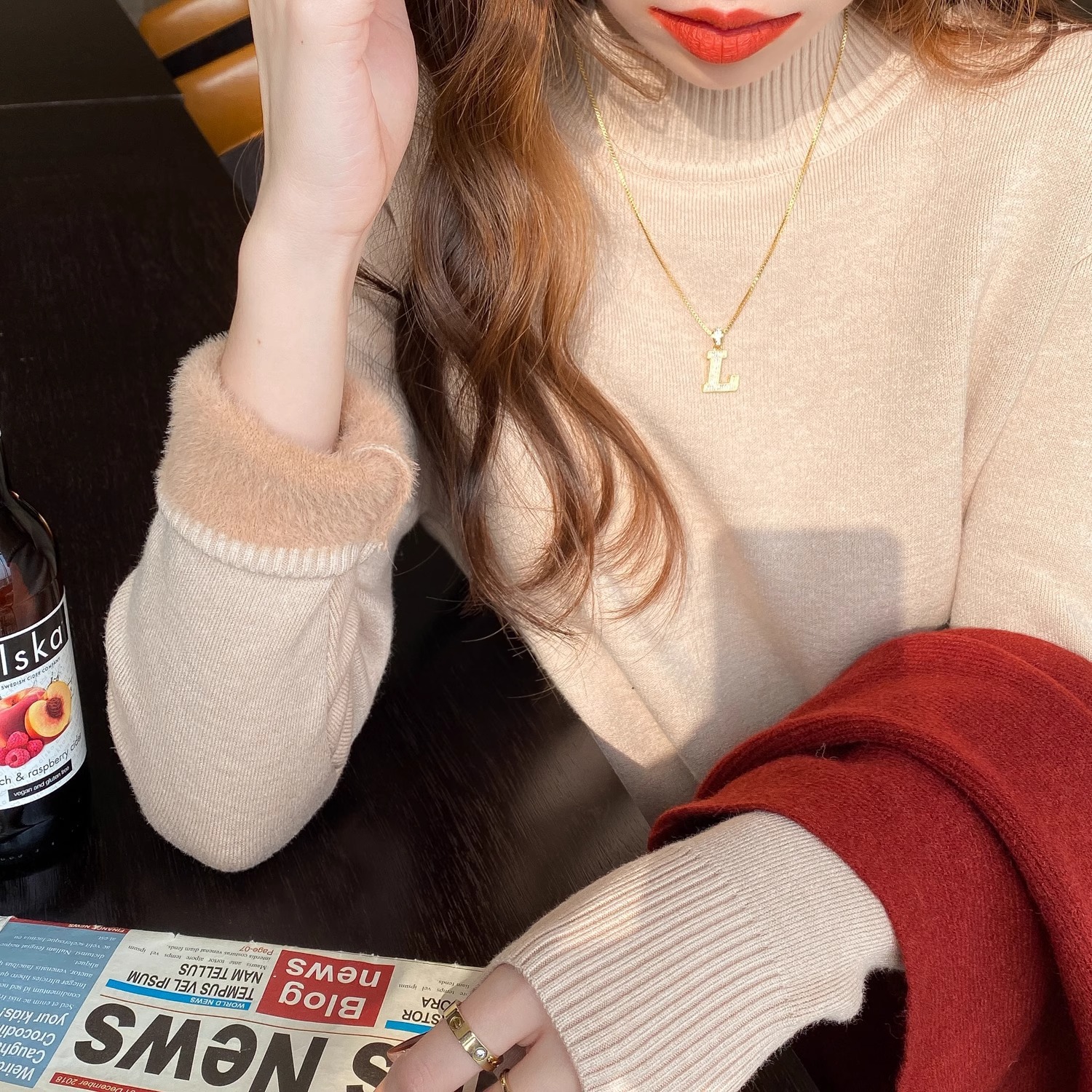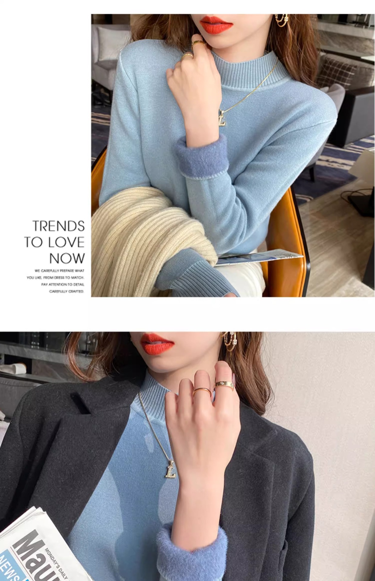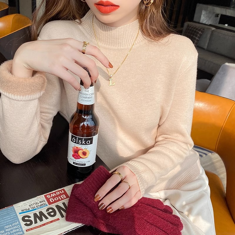 半高领打底衫女冬季新款内搭毛衣一体绒加厚保暖针织衫女士上衣冬