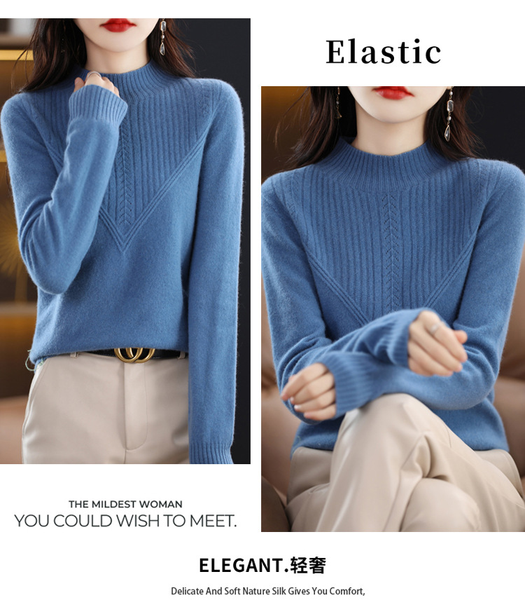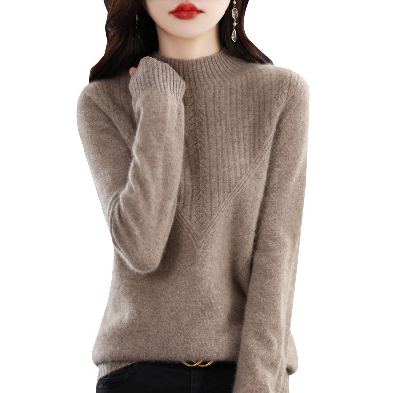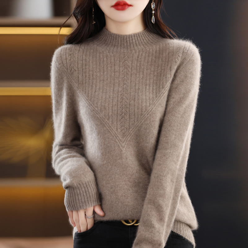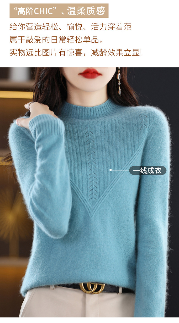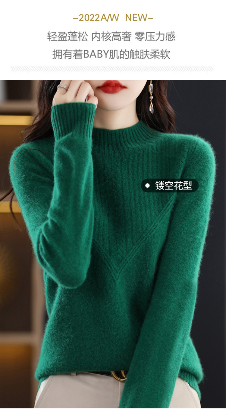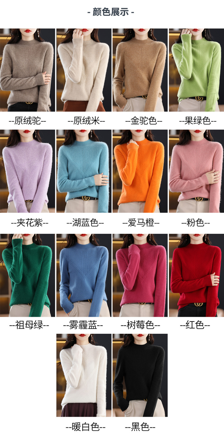 半高圆领针织衫女士套头毛衣秋冬新款宽松菱形纯色打底衫加厚上衣