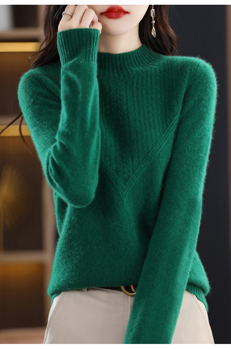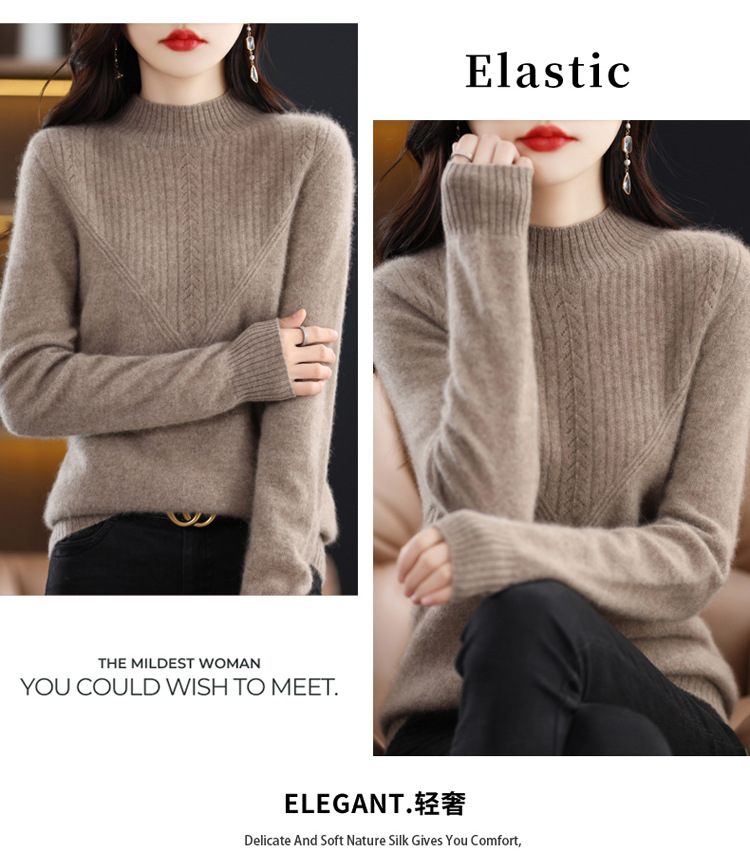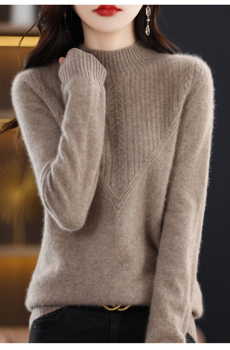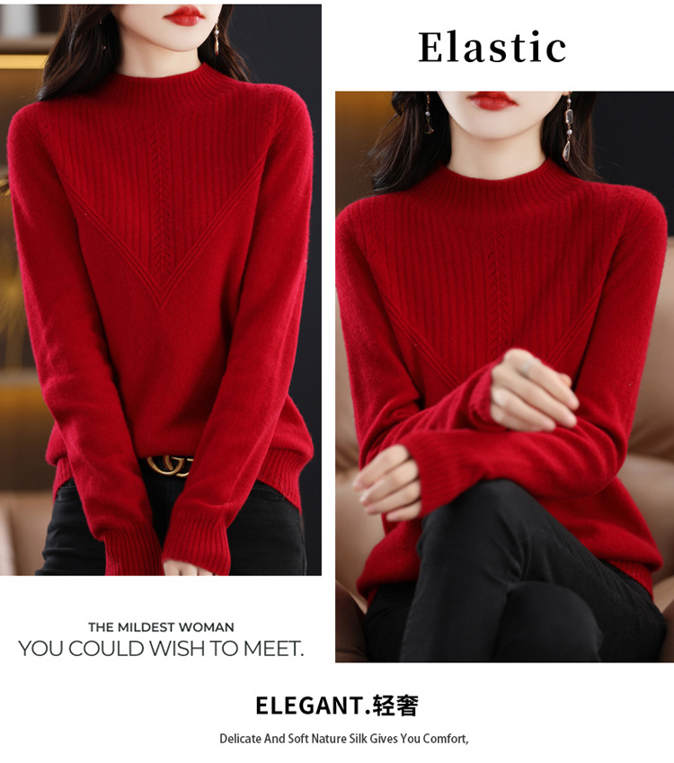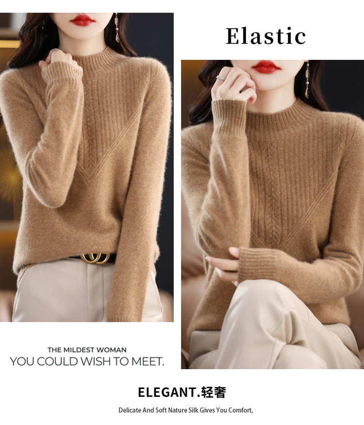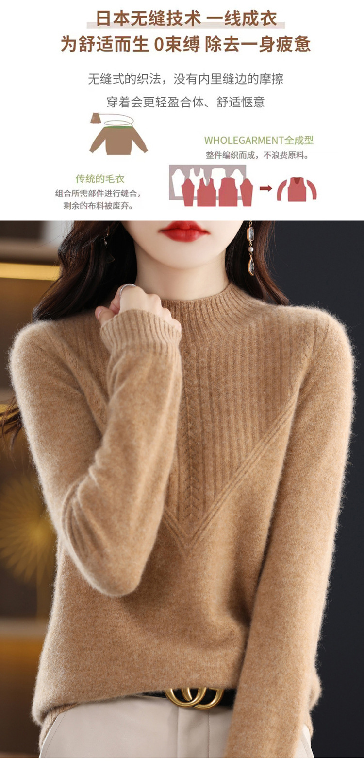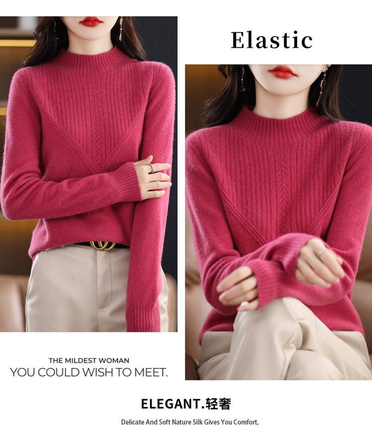 半高圆领针织衫女士套头毛衣秋冬新款宽松菱形纯色打底衫加厚上衣