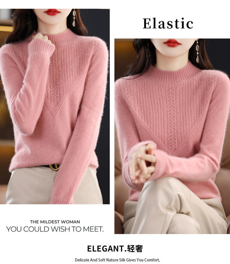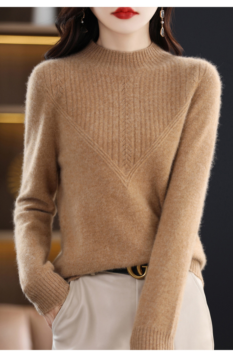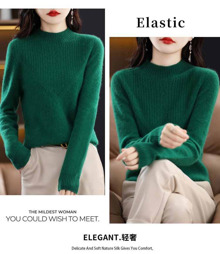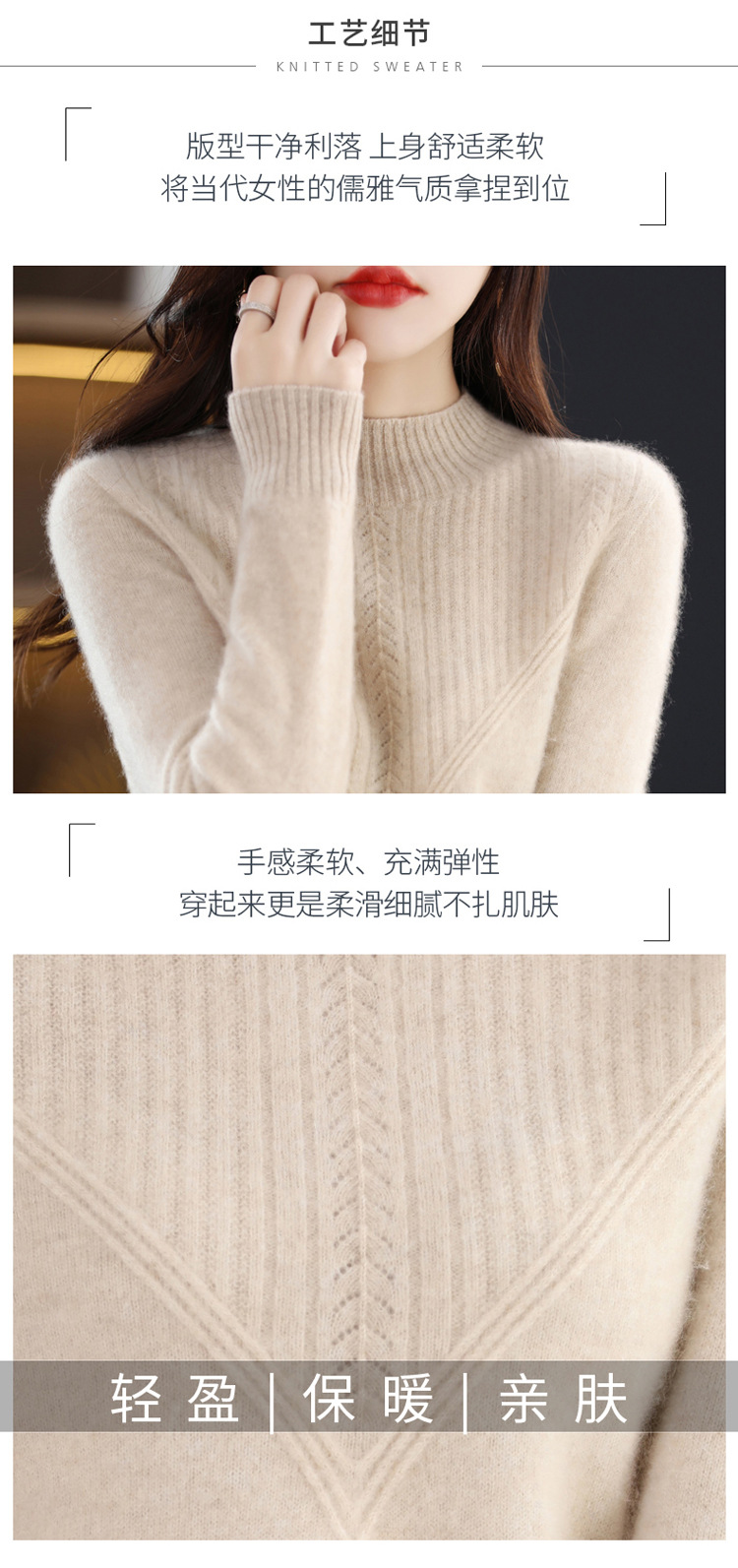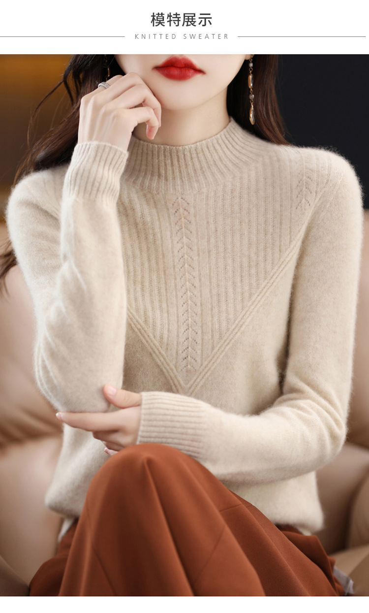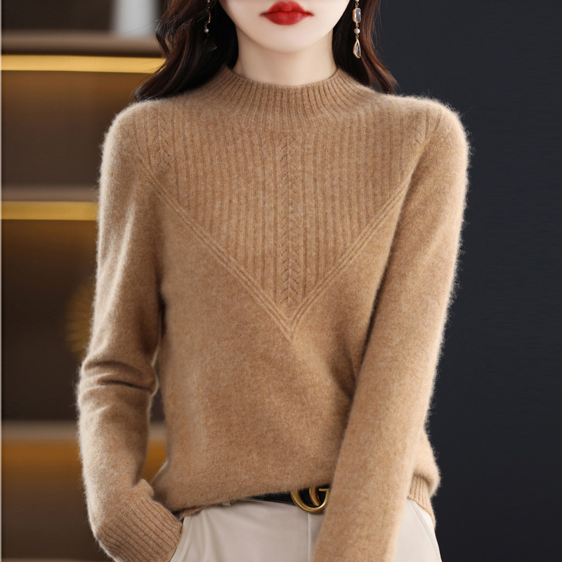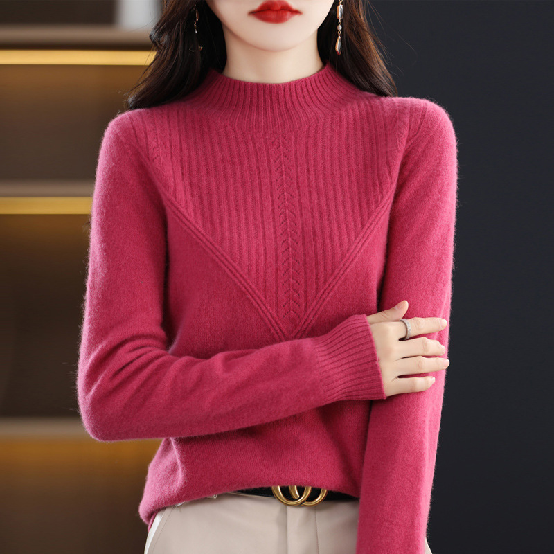 半高圆领针织衫女士套头毛衣秋冬新款宽松菱形纯色打底衫加厚上衣