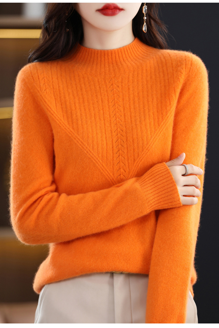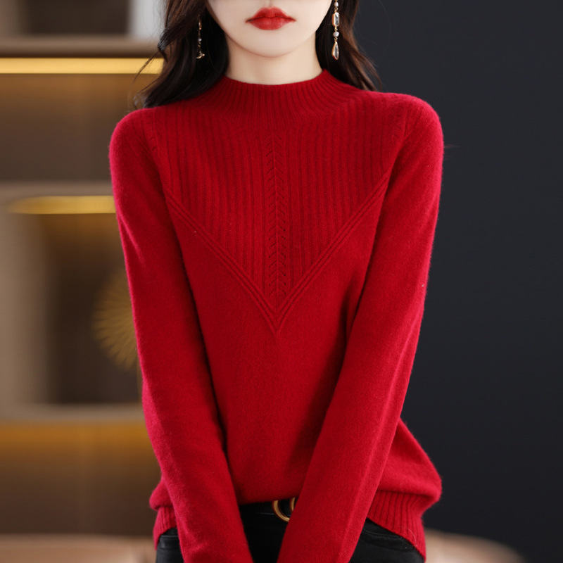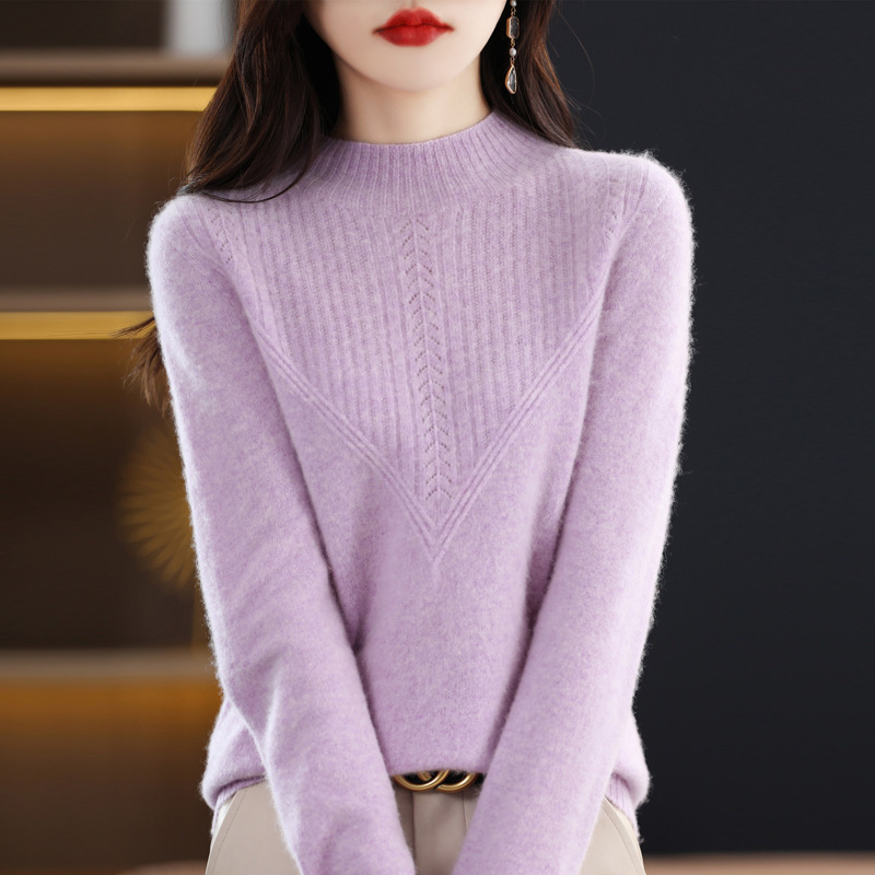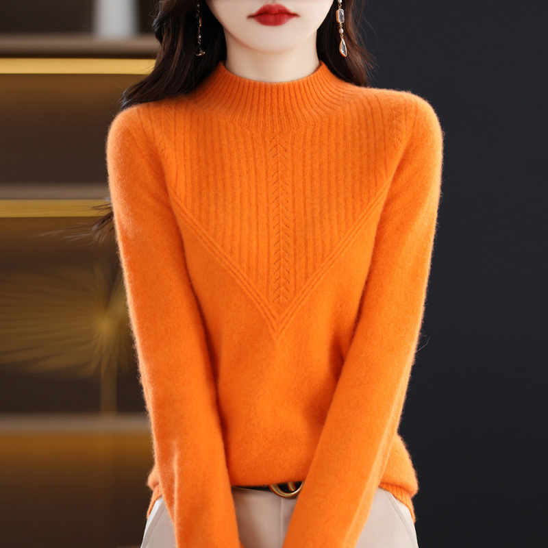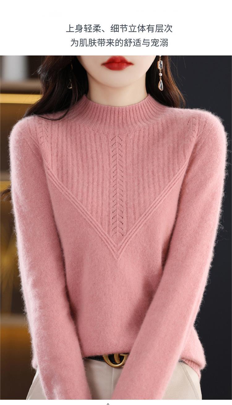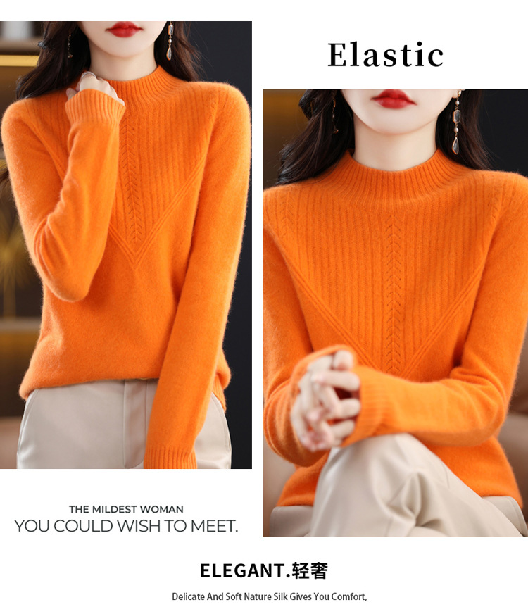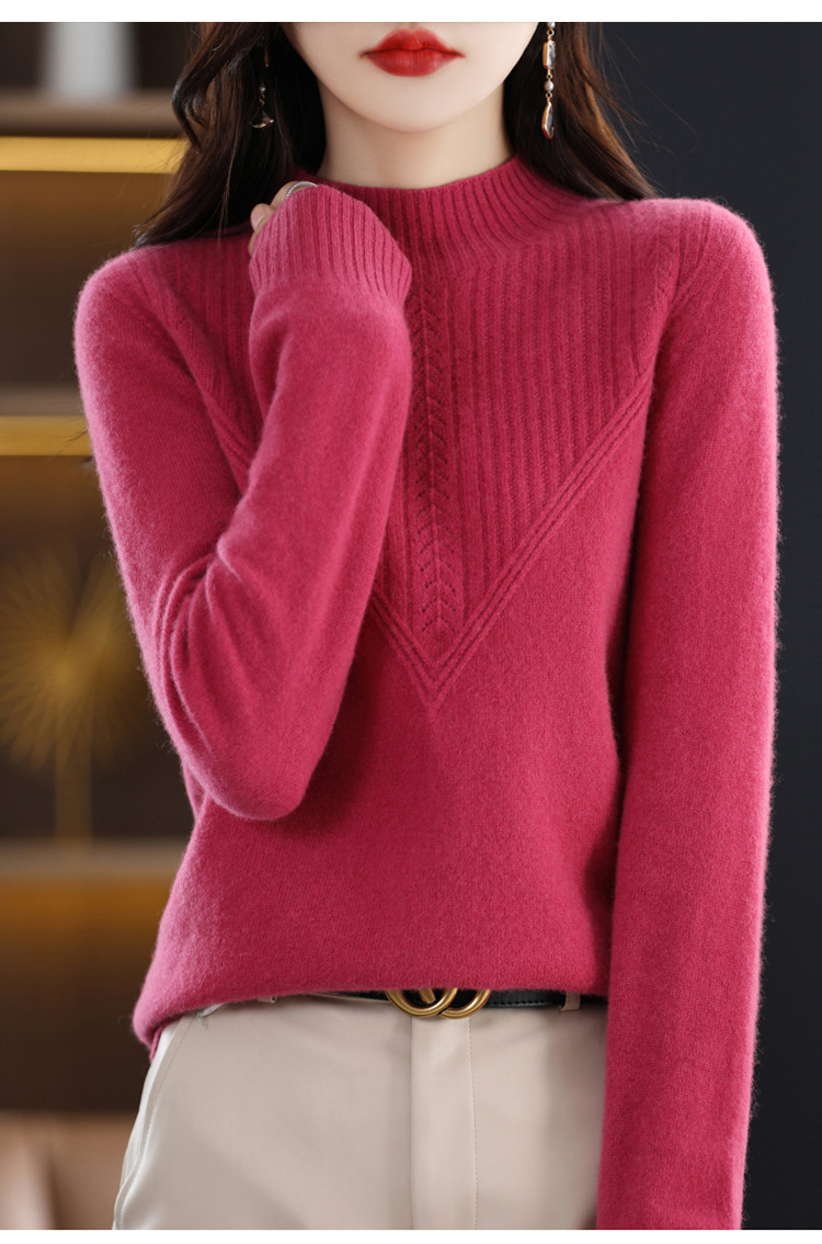 半高圆领针织衫女士套头毛衣秋冬新款宽松菱形纯色打底衫加厚上衣
