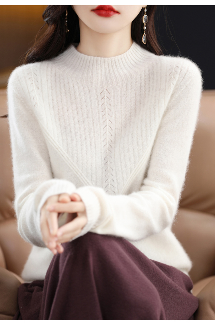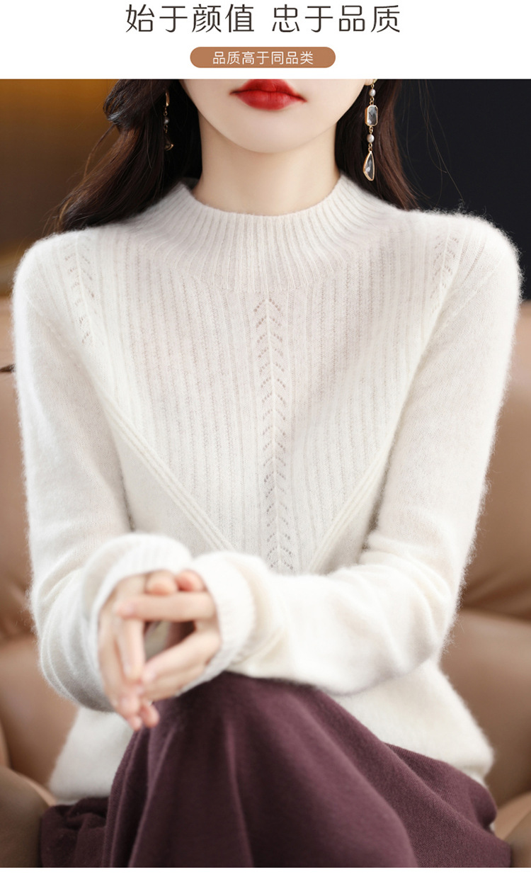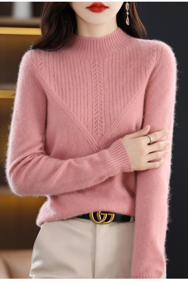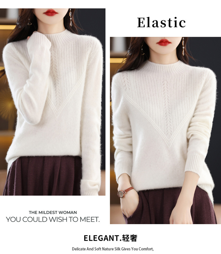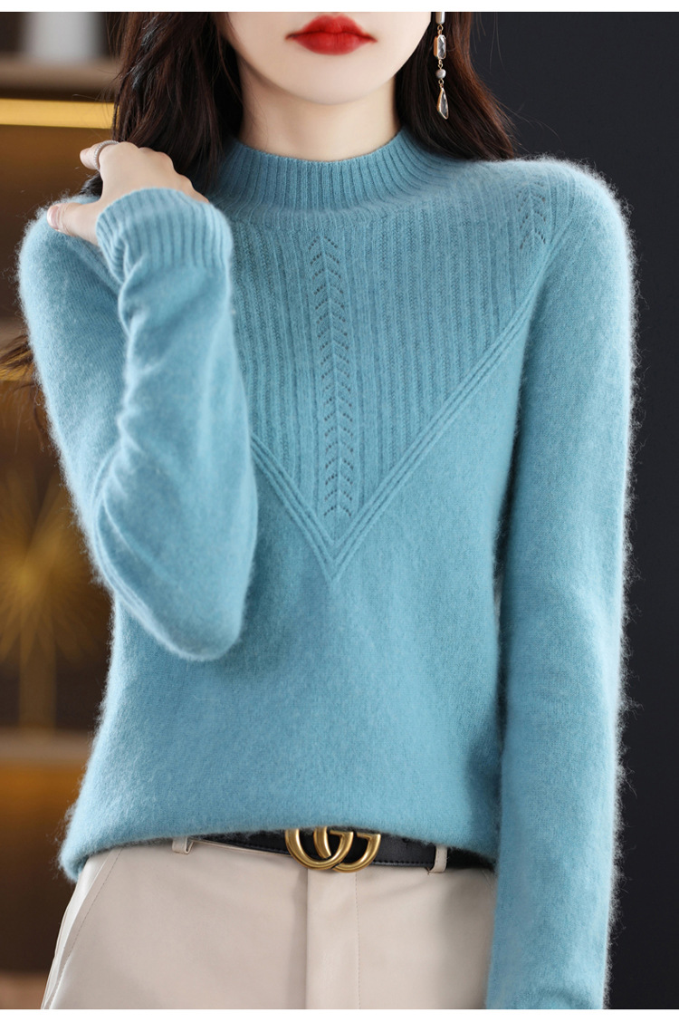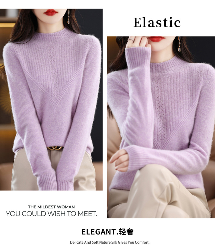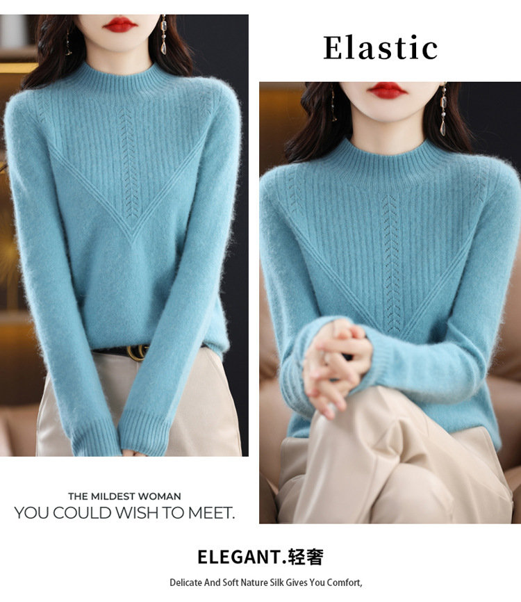 半高圆领针织衫女士套头毛衣秋冬新款宽松菱形纯色打底衫加厚上衣