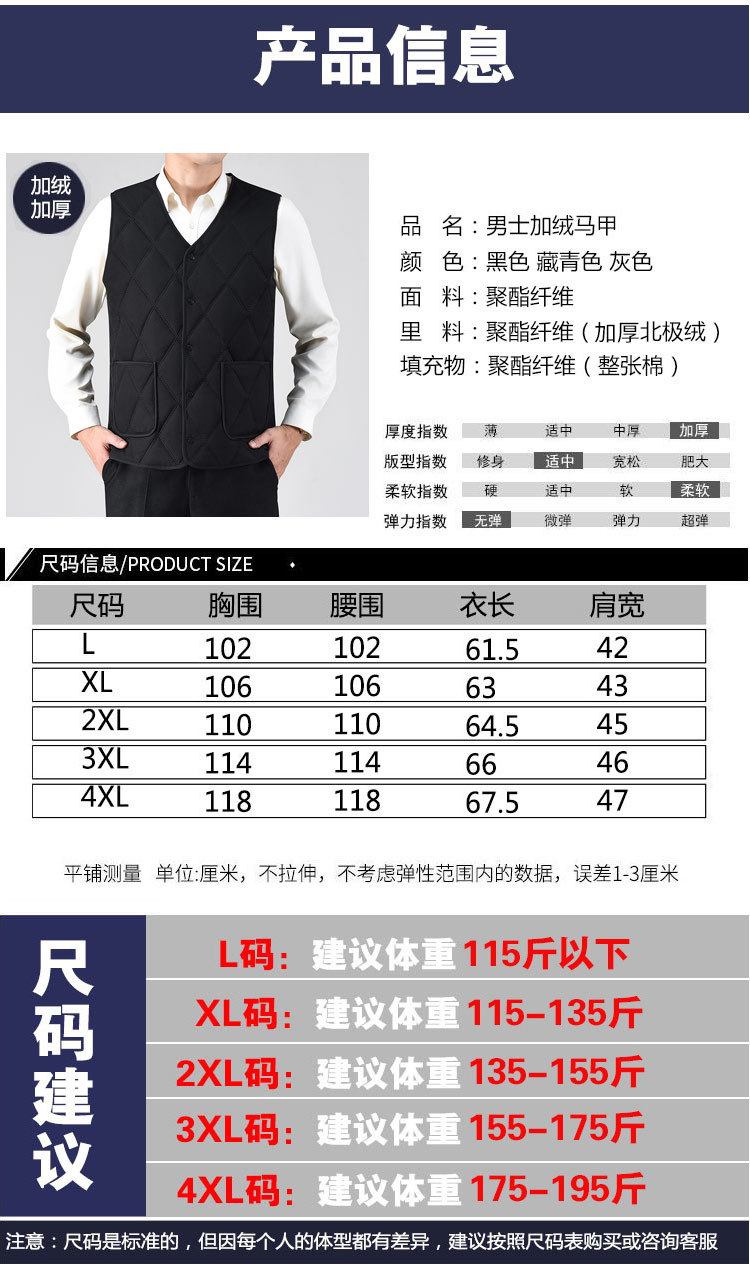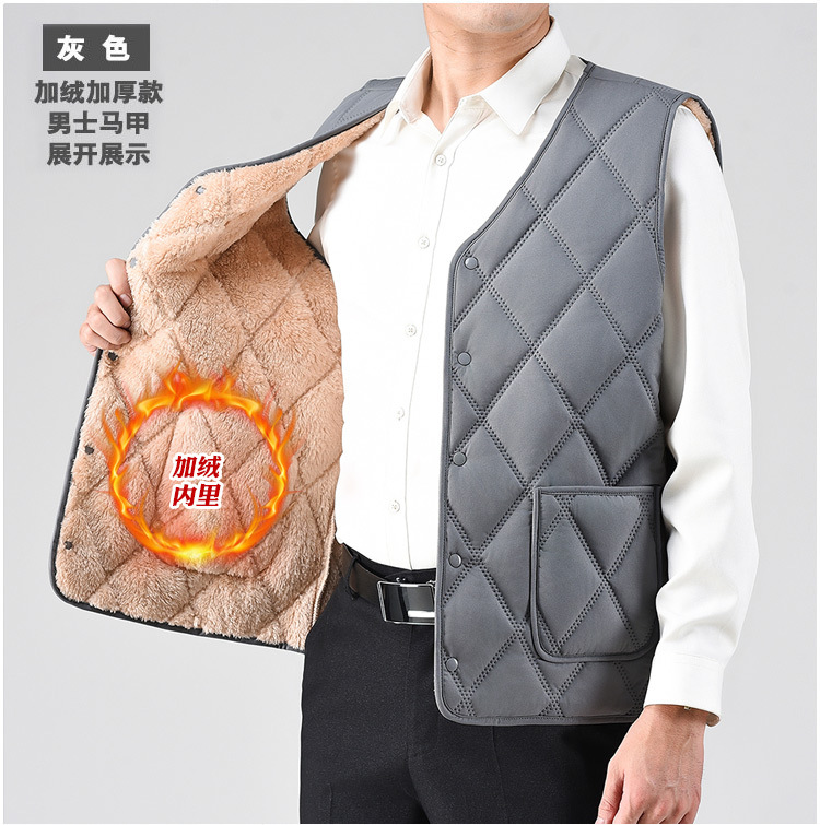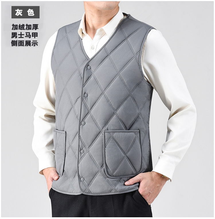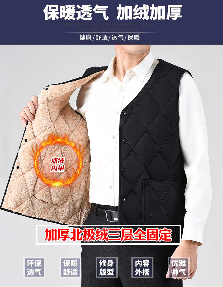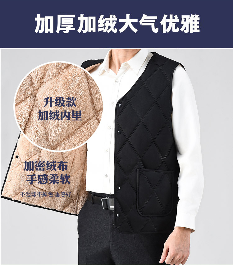 秋冬季男士加绒保暖中老年加大休闲保暖加厚马甲男款爸爸防寒背心