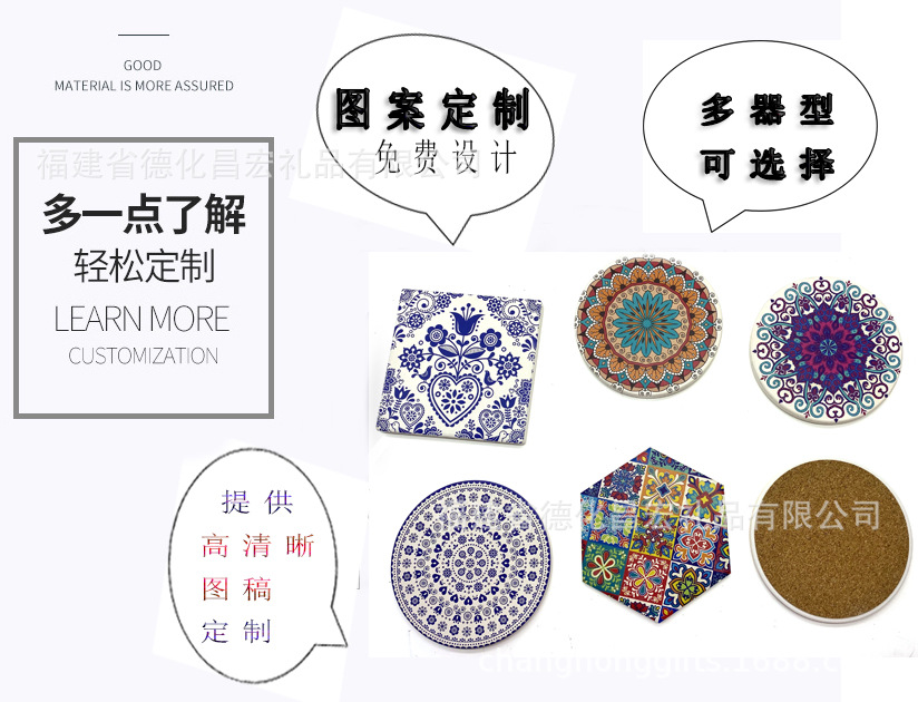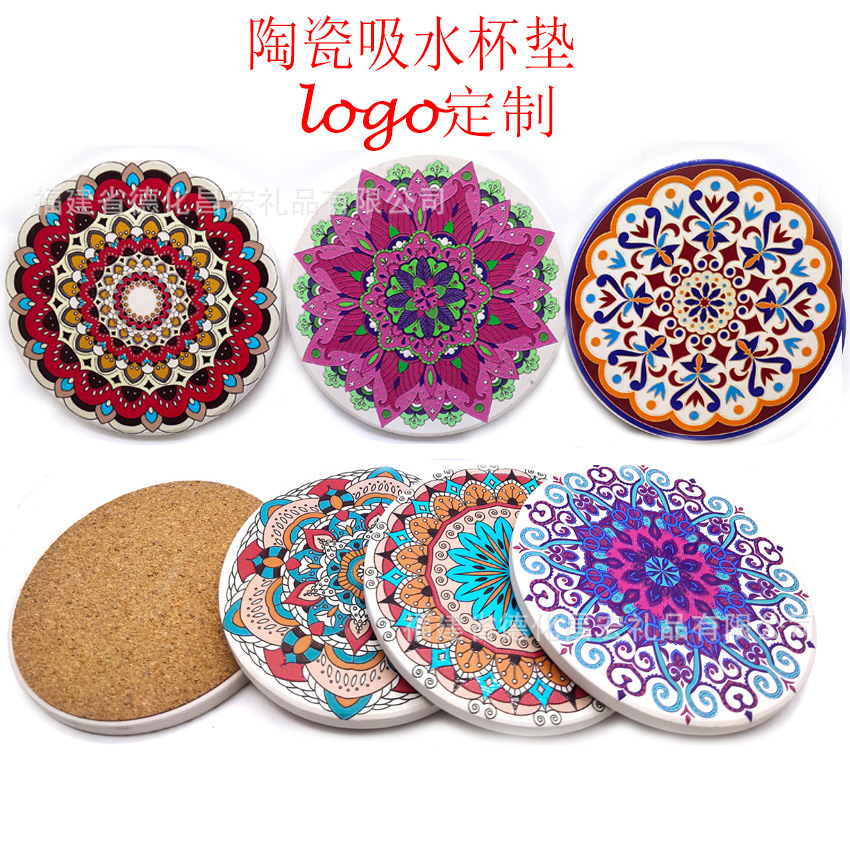 源头厂家直销跨镜专供陶瓷隔热垫吸水防滑杯垫餐垫可logo开发
