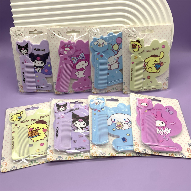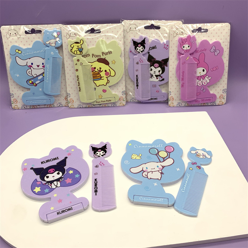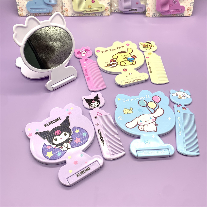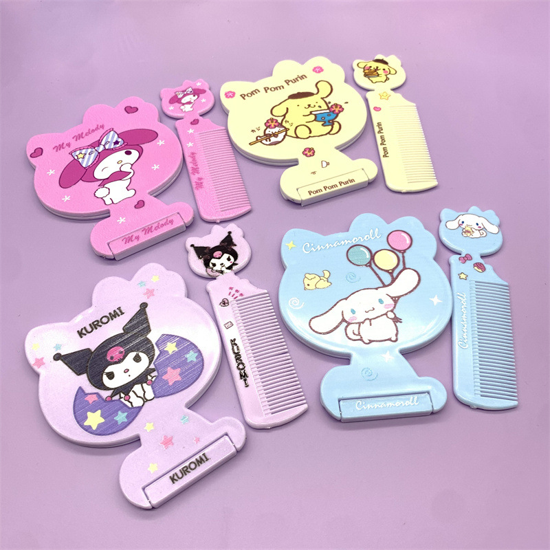 外贸三丽鸥折叠镜梳库洛米台镜大耳狗美乐蒂美妆镜宿舍小镜子梳子