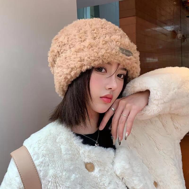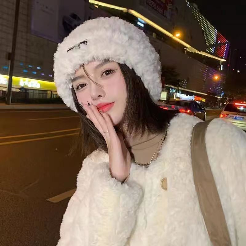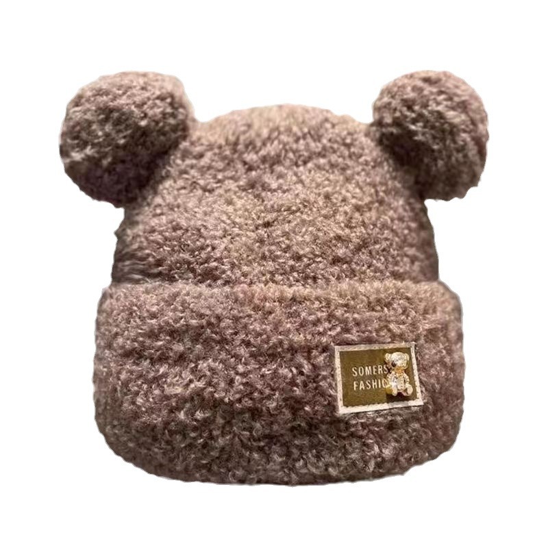 帽子冬季针织帽堆堆帽大头围软糯可爱小熊耳朵毛绒帽秋冬季保暖帽