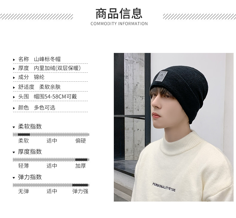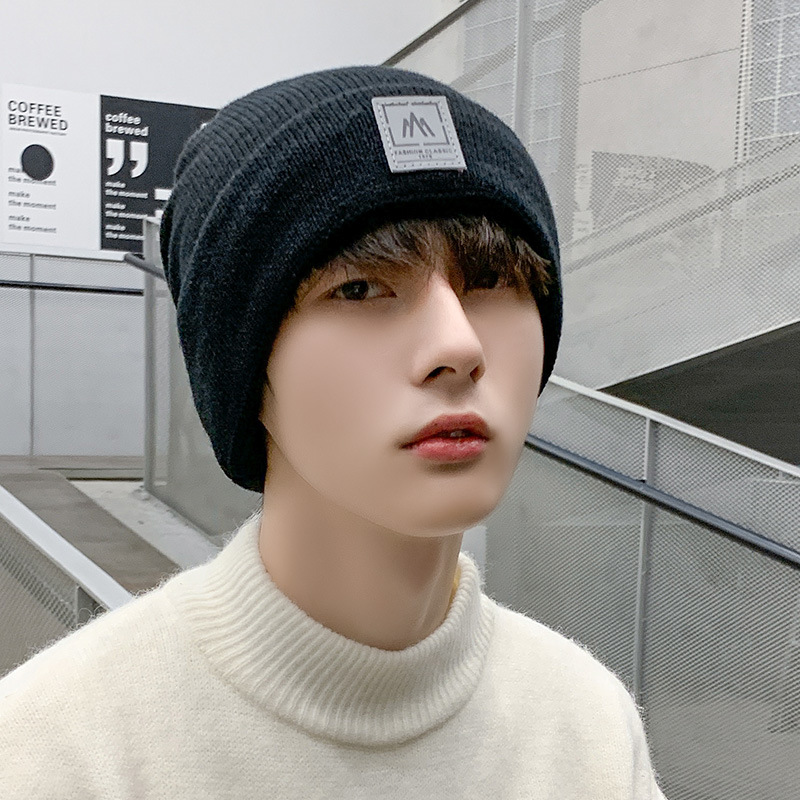 帽子男士冬季保暖毛线针织帽时尚潮新款棉帽骑车加绒男款包头冷帽