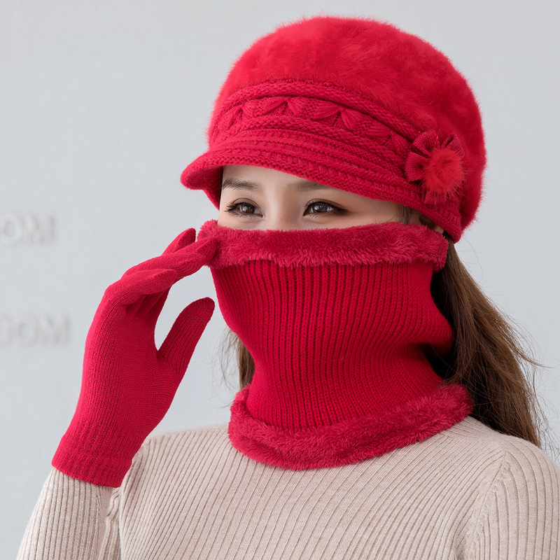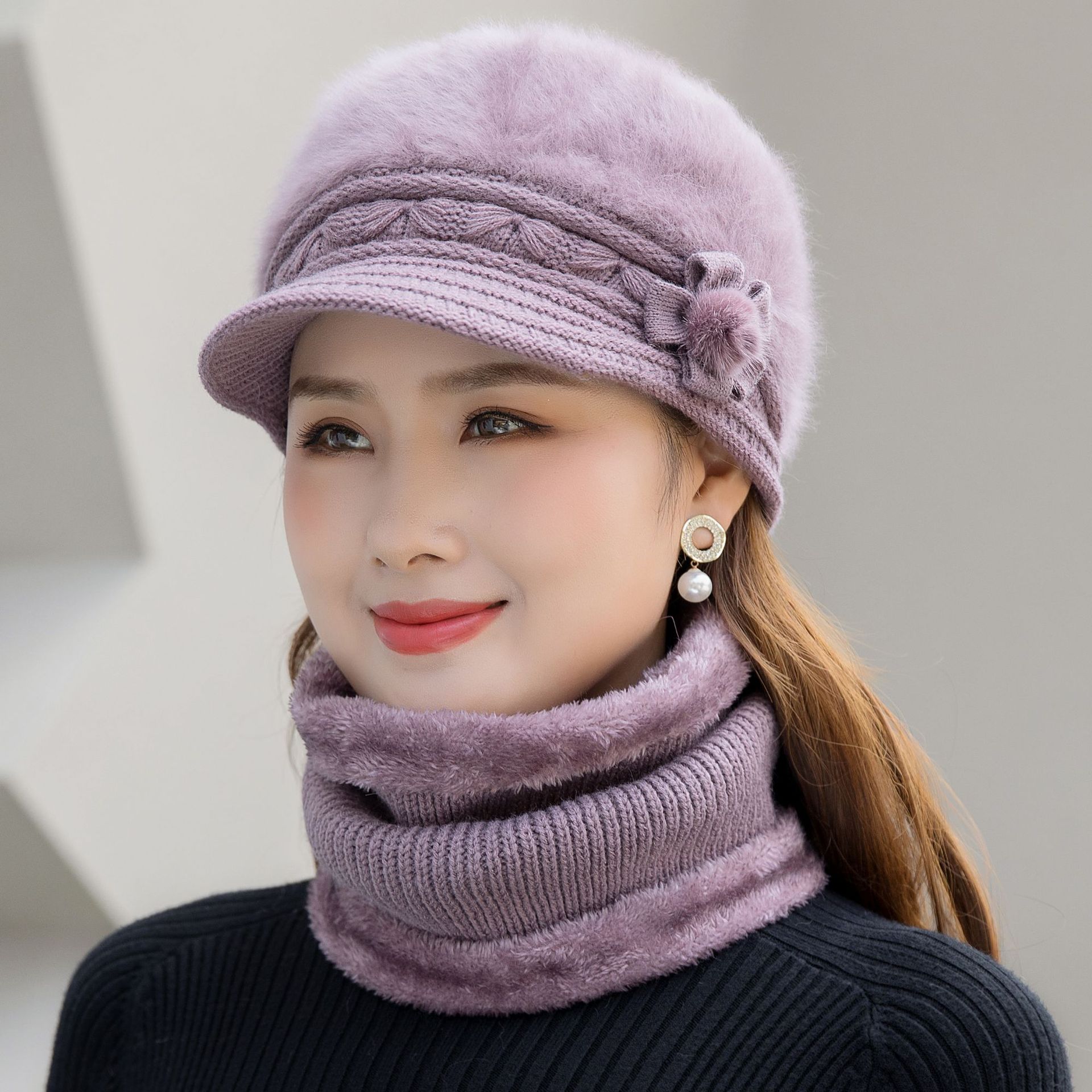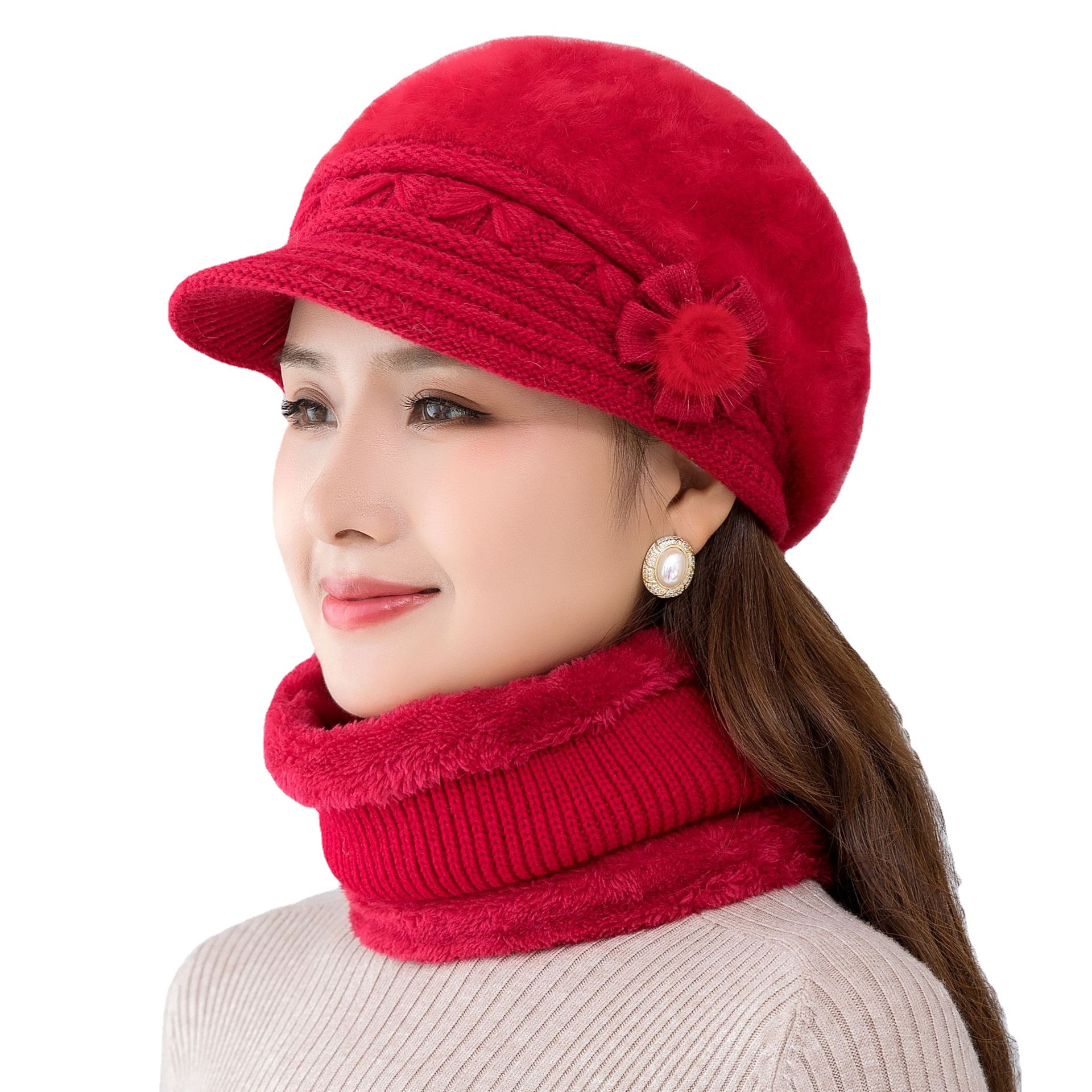 中老年人帽子围巾套装女冬天加厚保暖帽妈妈针织毛线帽奶奶老人帽