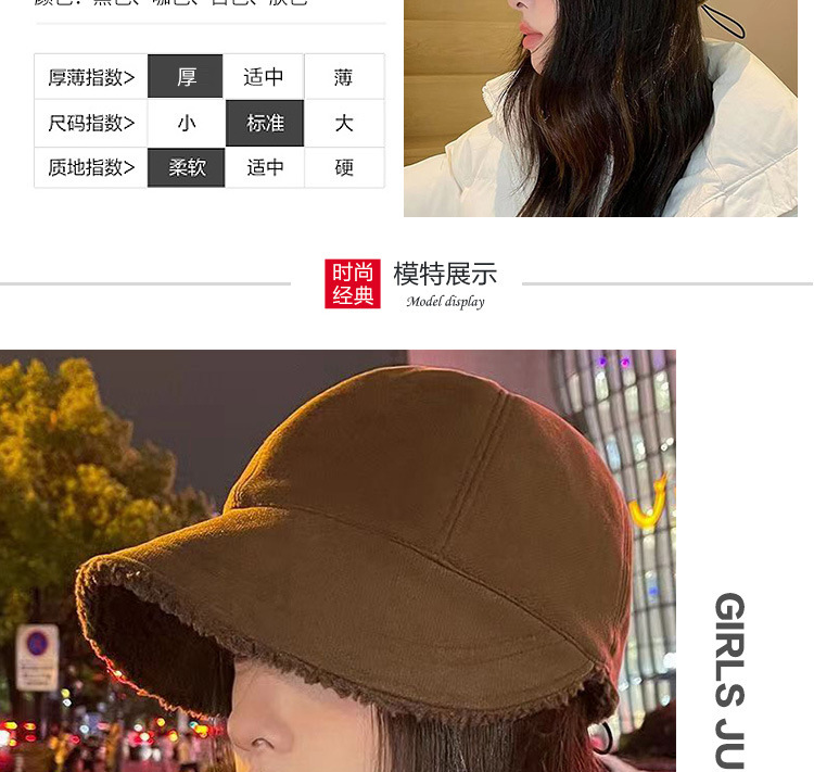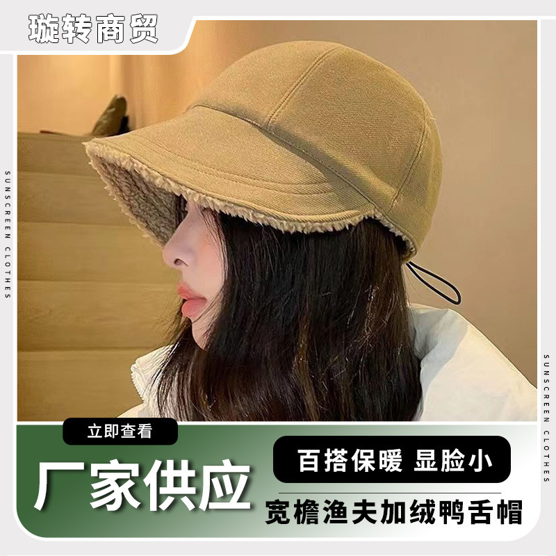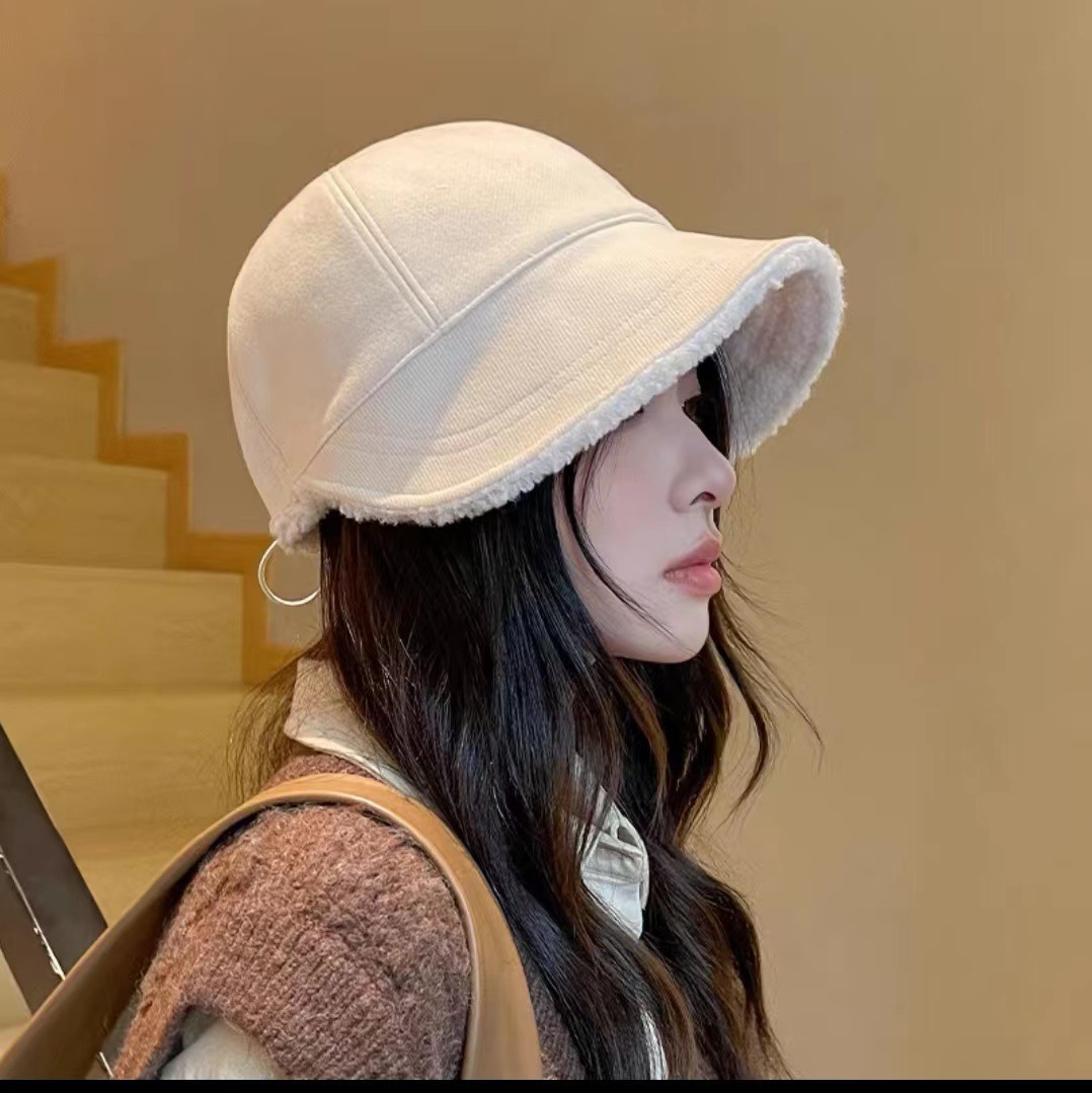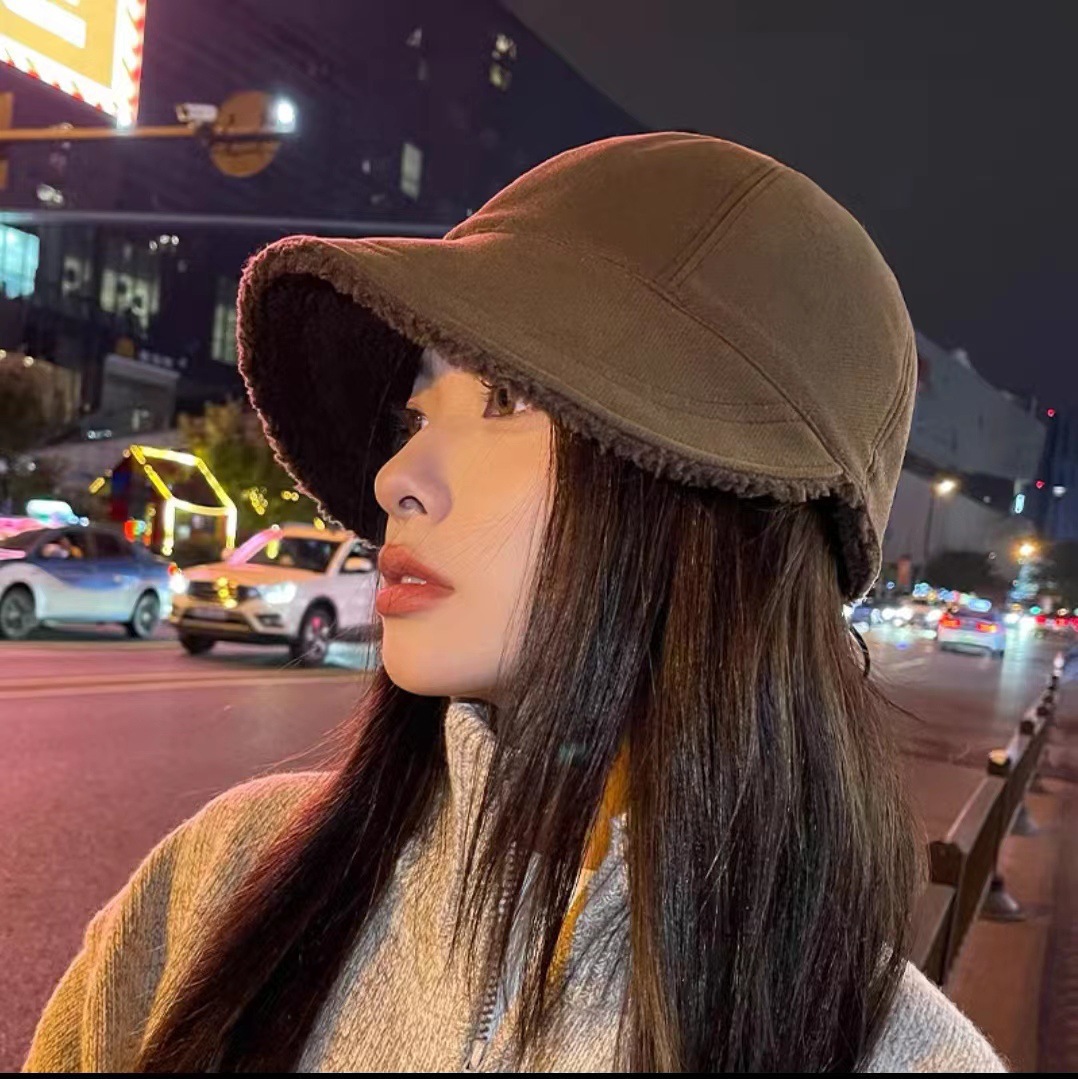 赵露思同款帽子女秋冬显脸小羊羔毛渔夫帽加绒双面戴马术休闲百搭