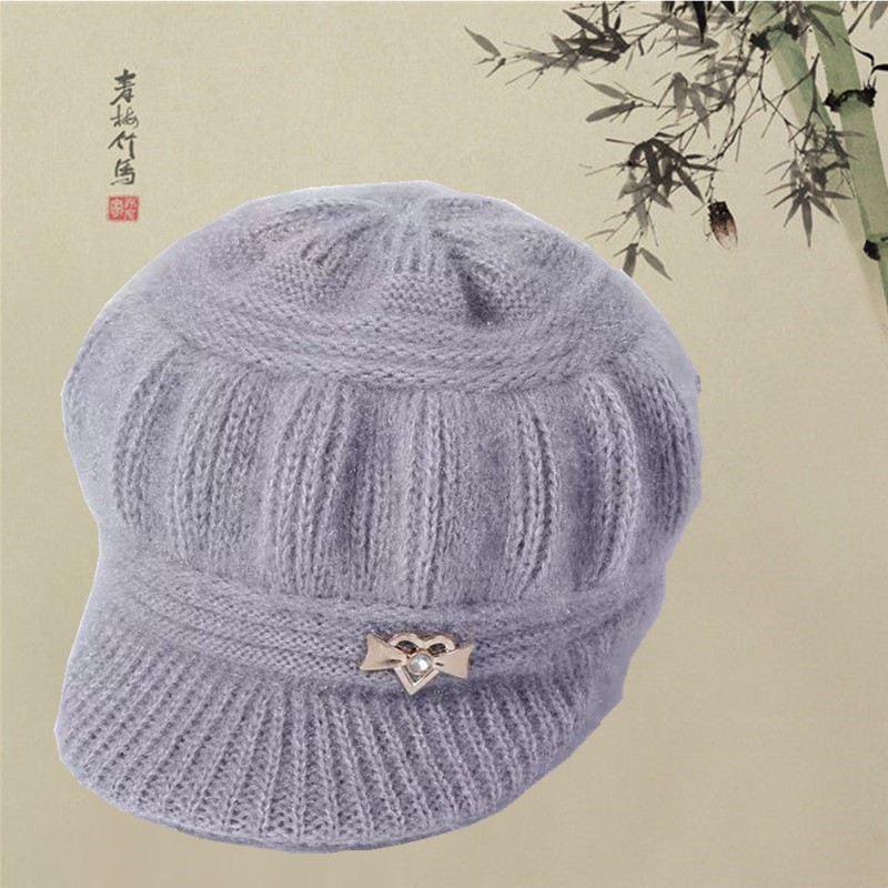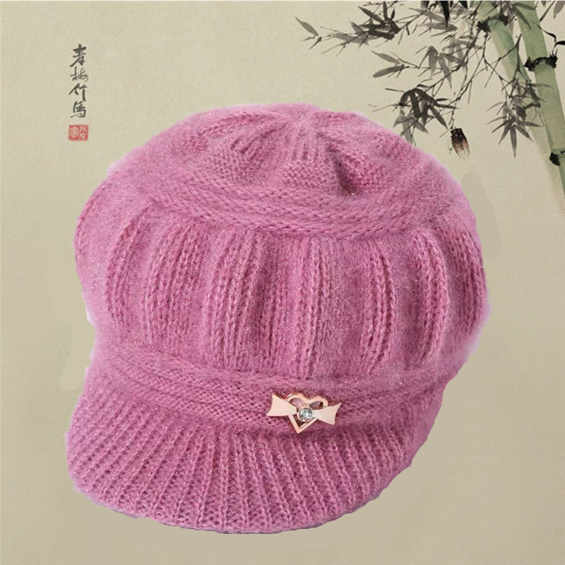 帽子女秋冬季韩版中老年棒球帽加厚保暖套头针织帽妈妈护耳毛线帽