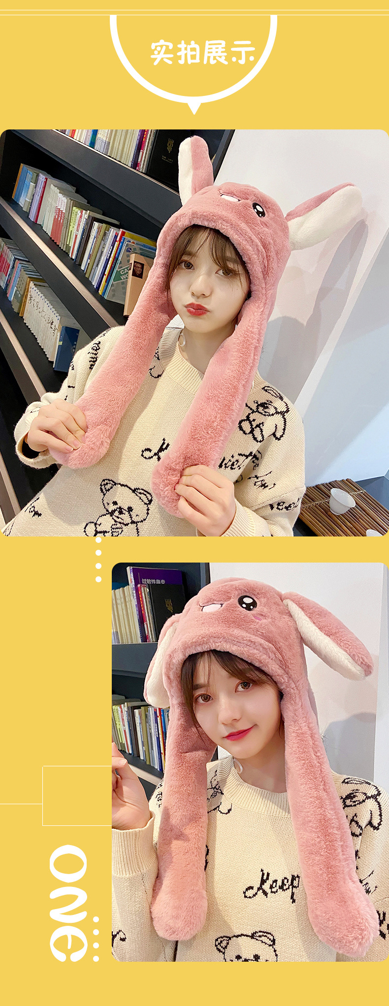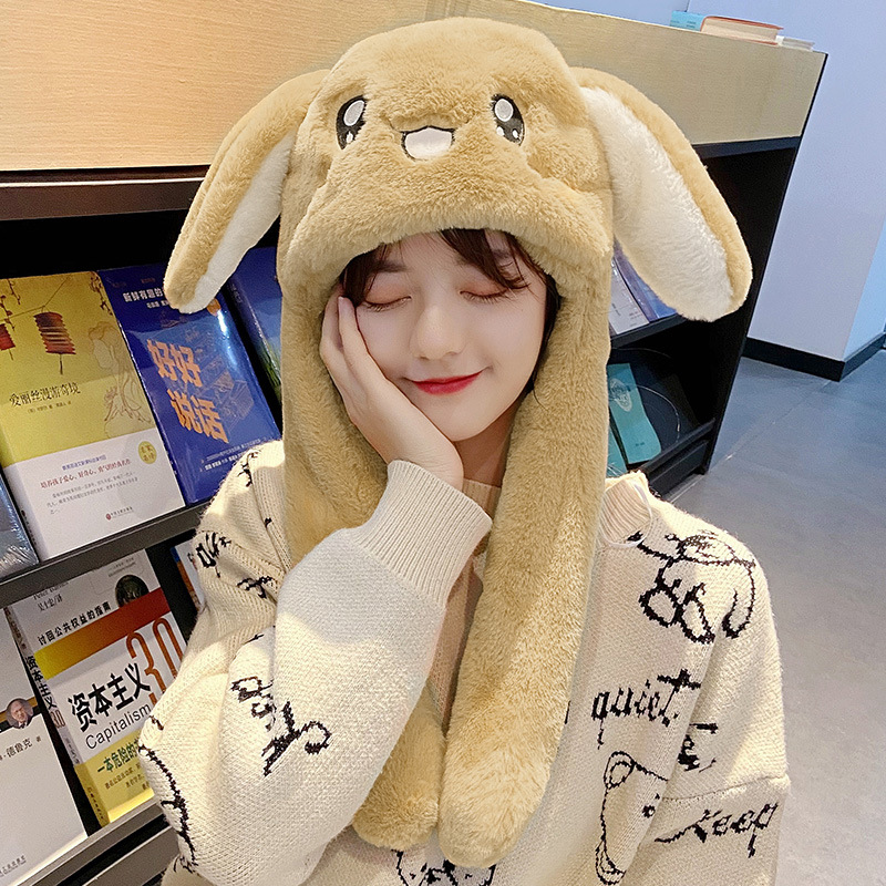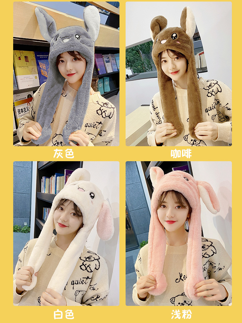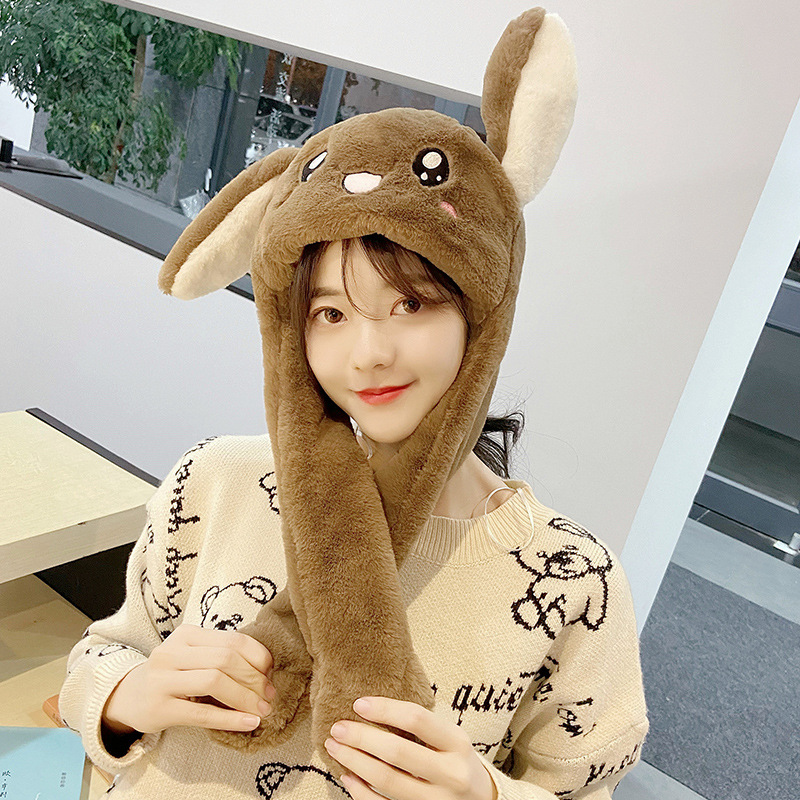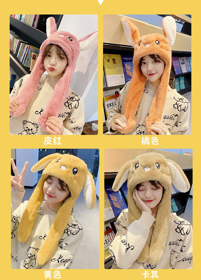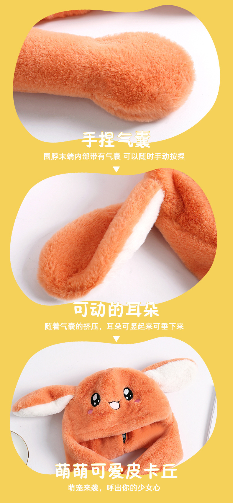 抖音同款兔子耳朵帽子女秋冬网红可爱一捏耳朵会动的帽子围巾一体