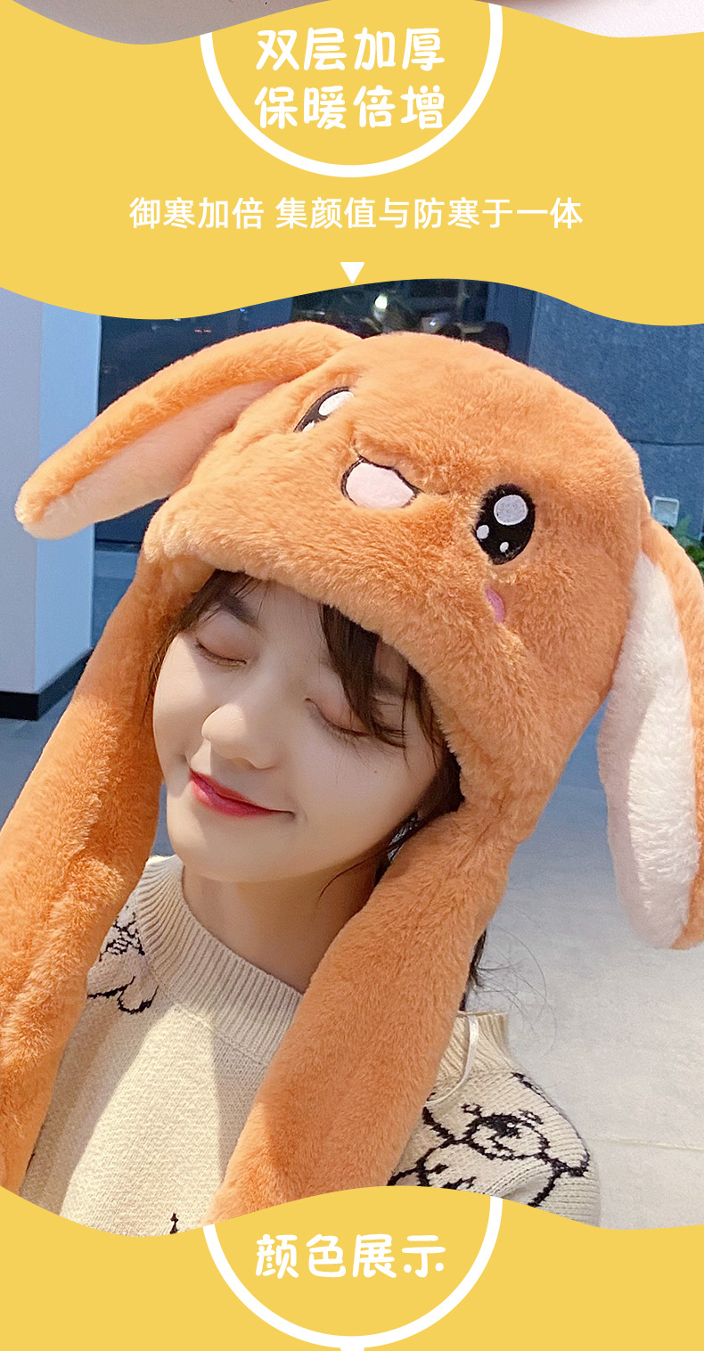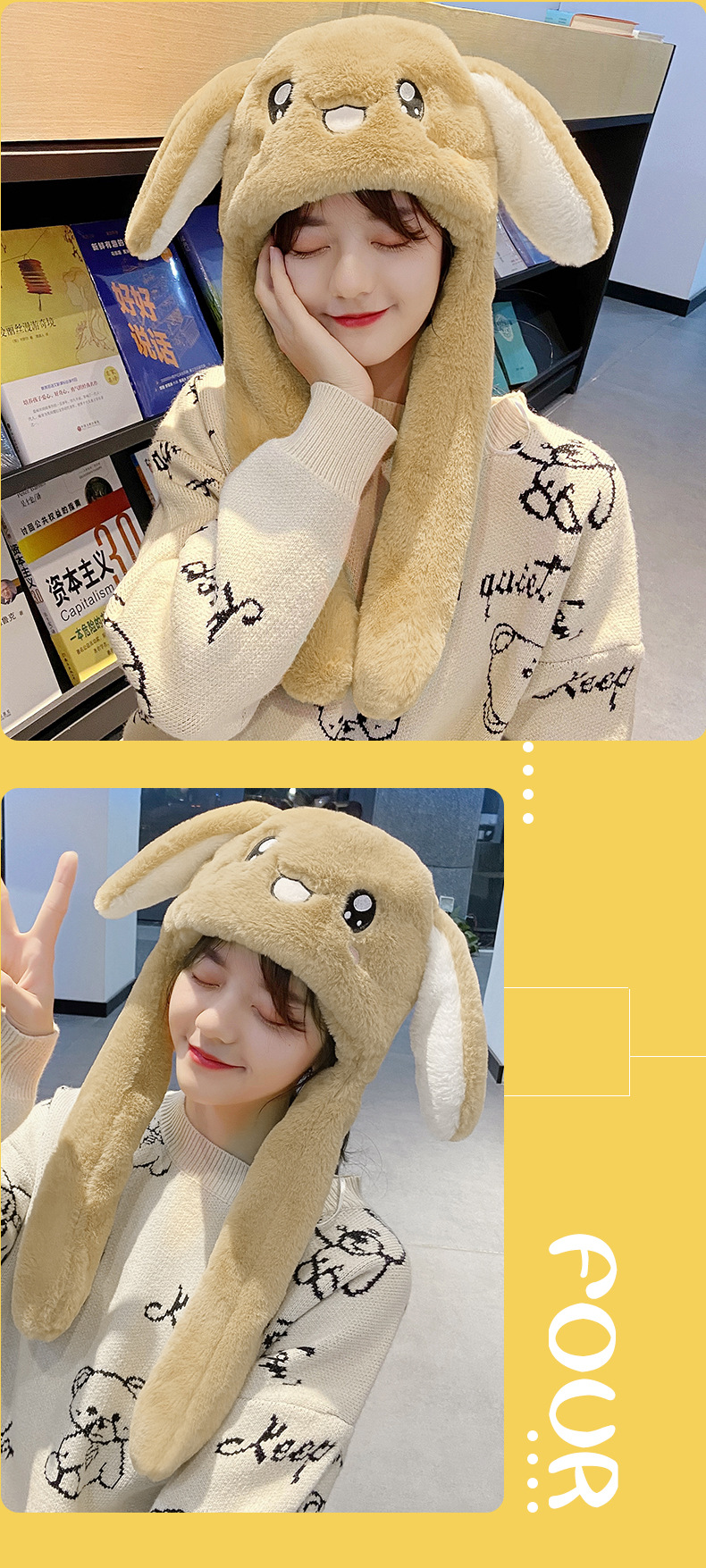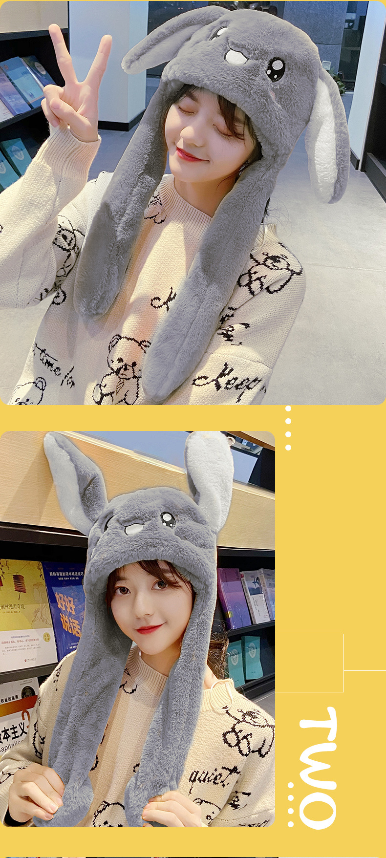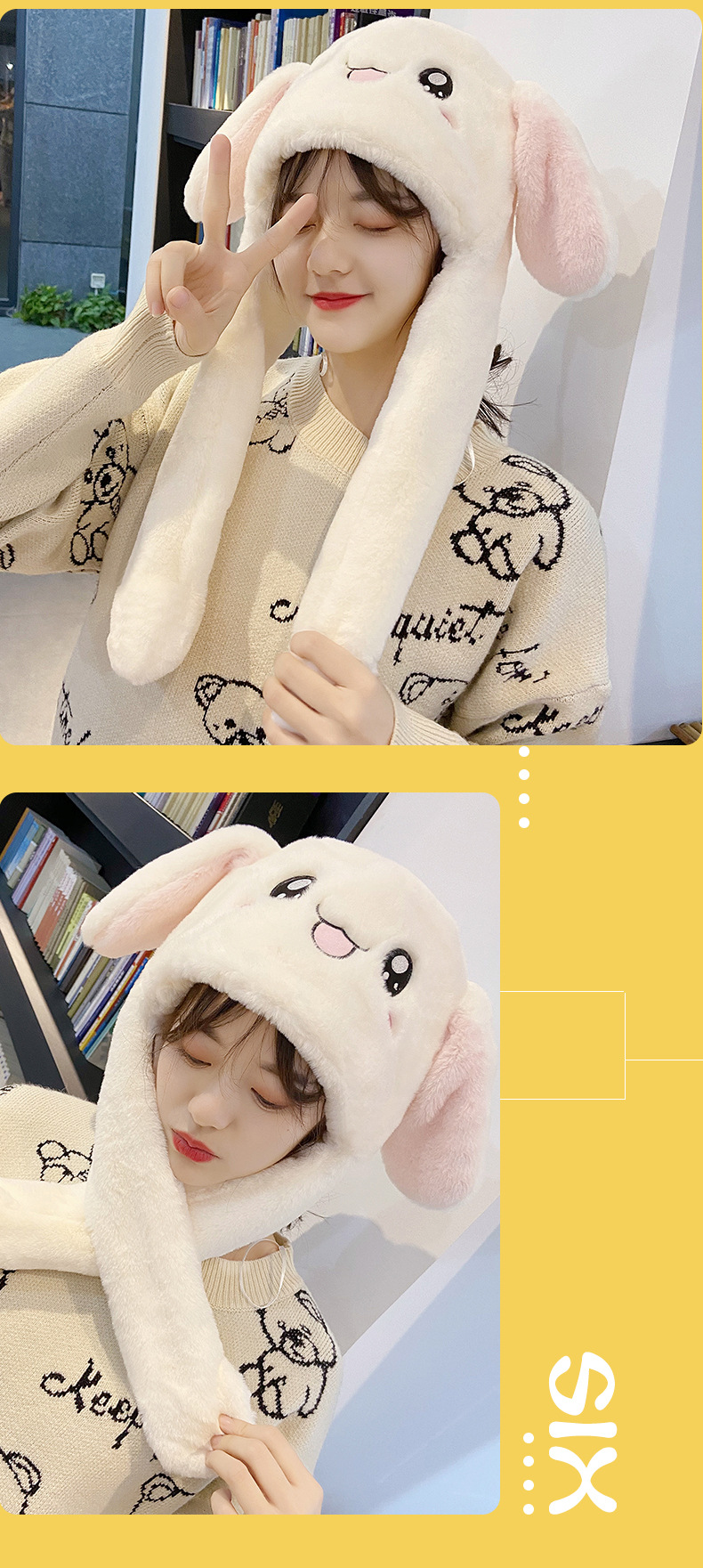 抖音同款兔子耳朵帽子女秋冬网红可爱一捏耳朵会动的帽子围巾一体