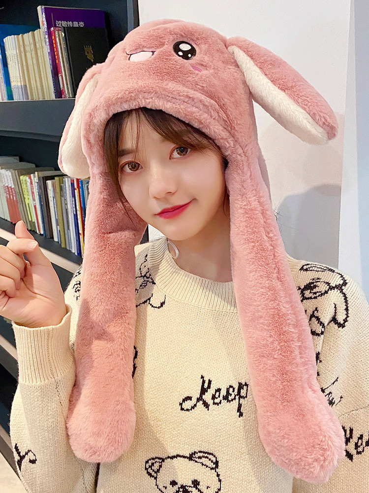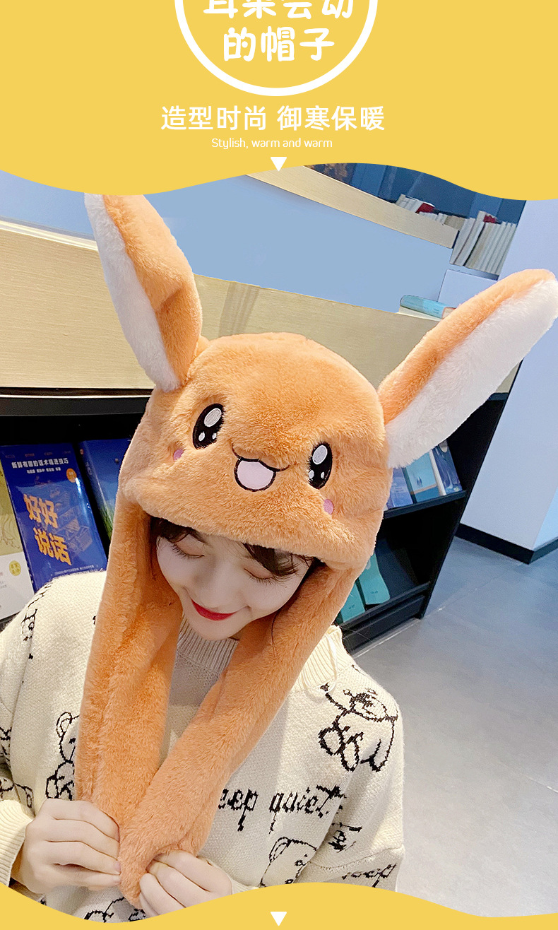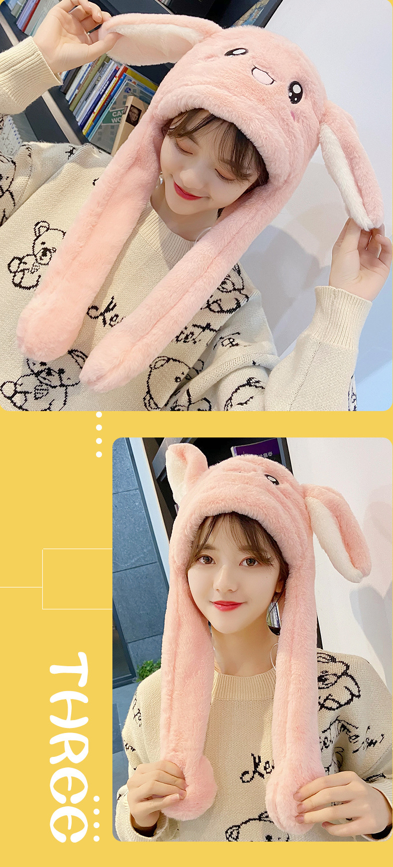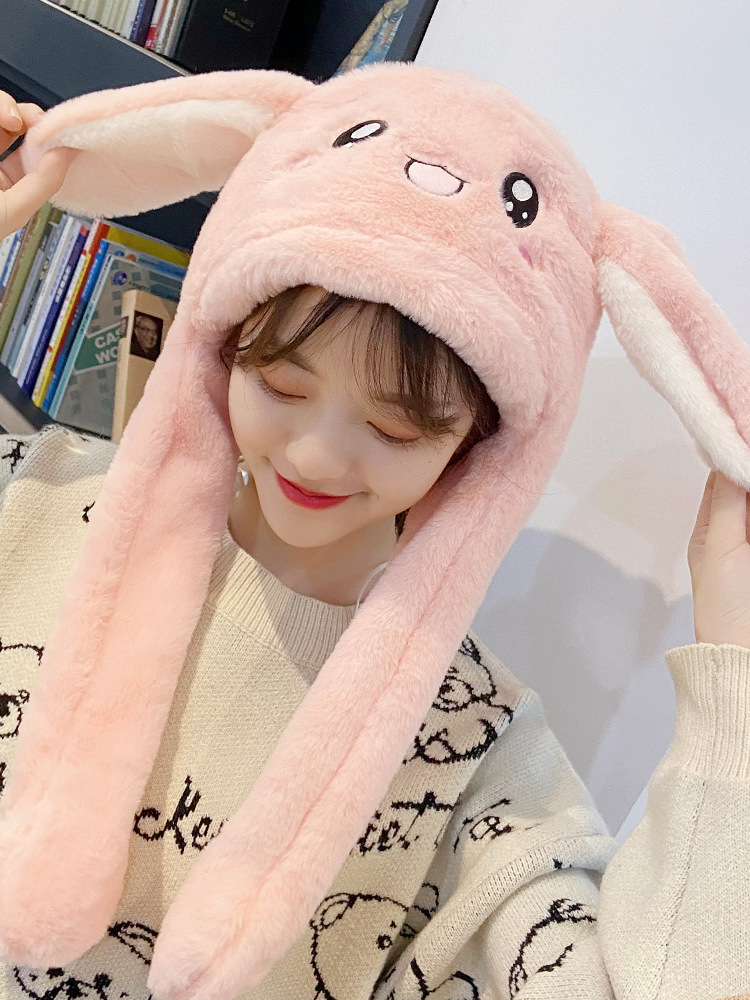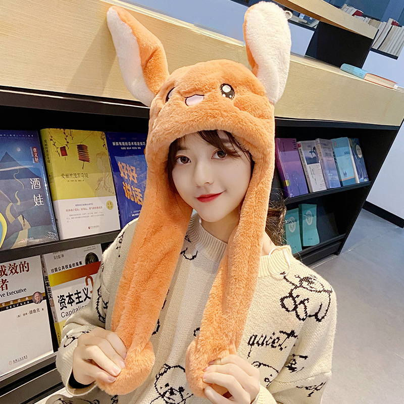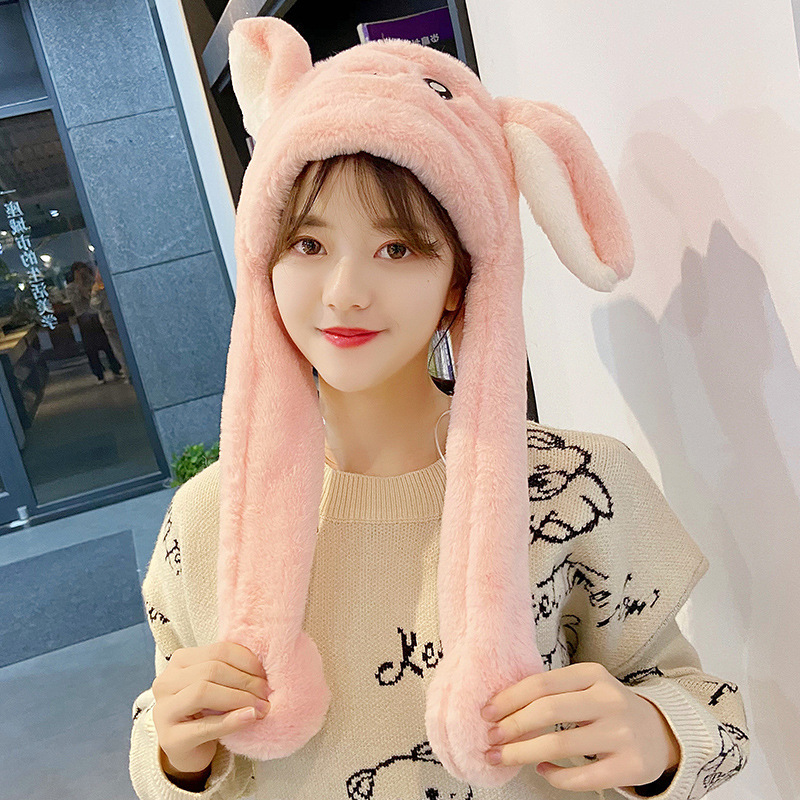 抖音同款兔子耳朵帽子女秋冬网红可爱一捏耳朵会动的帽子围巾一体