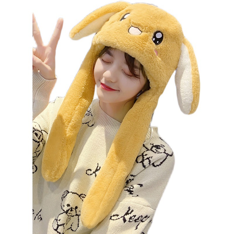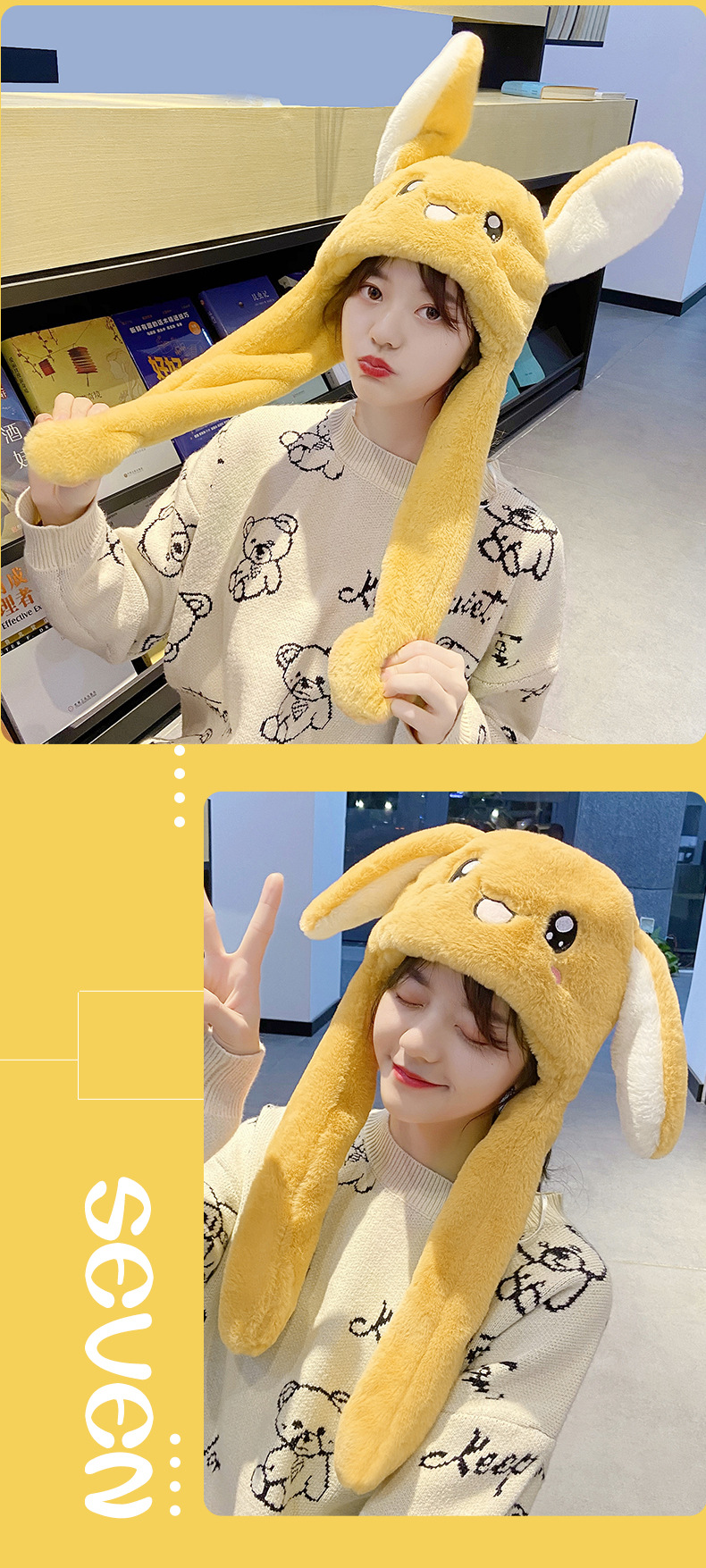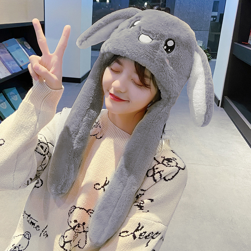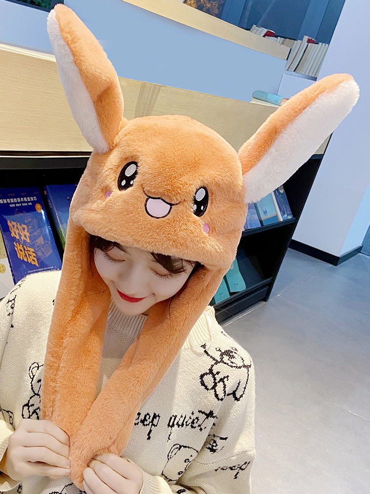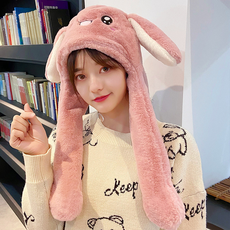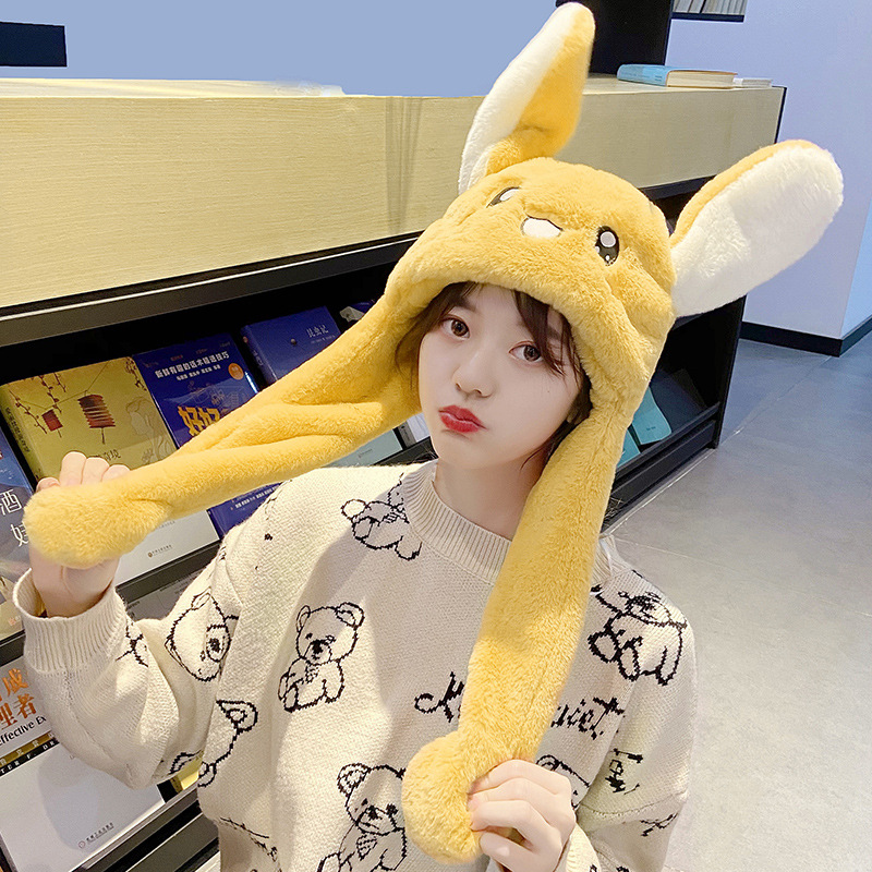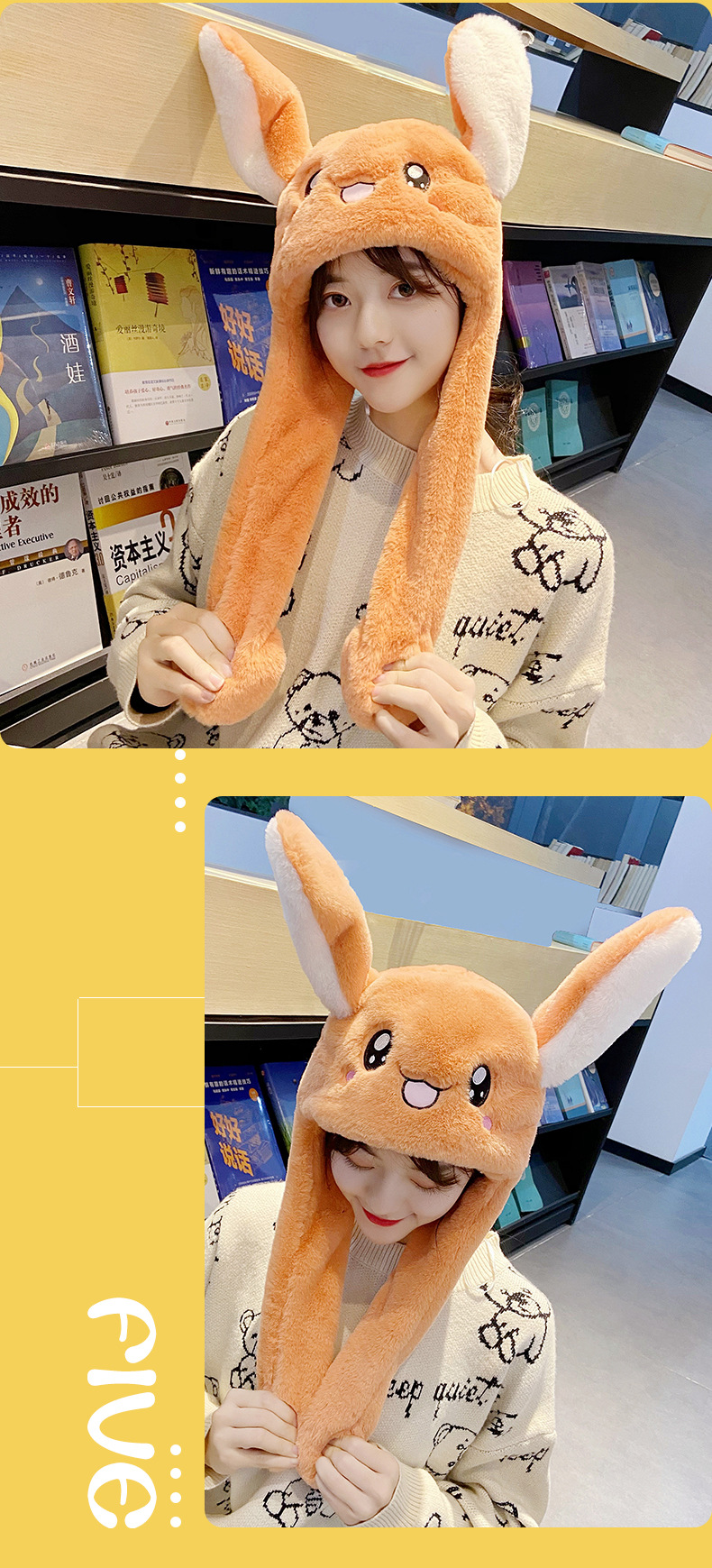 抖音同款兔子耳朵帽子女秋冬网红可爱一捏耳朵会动的帽子围巾一体