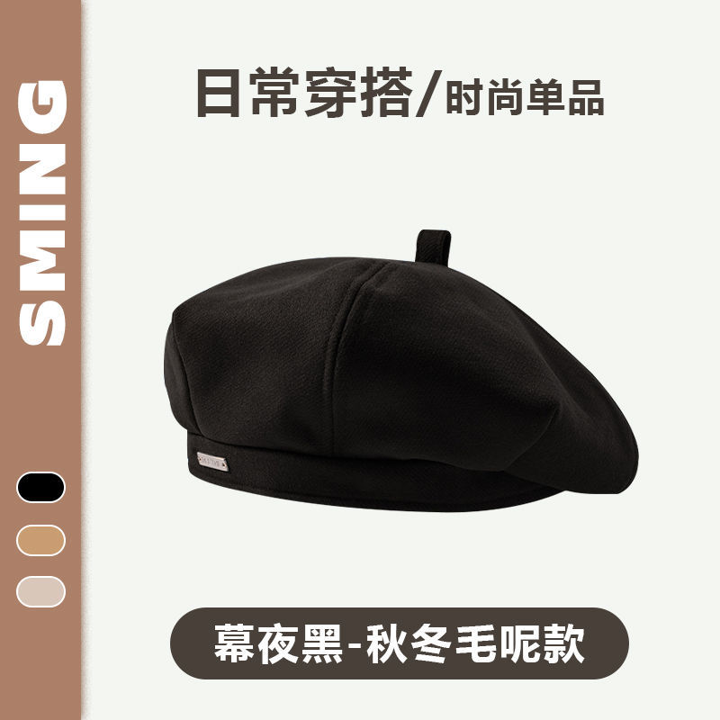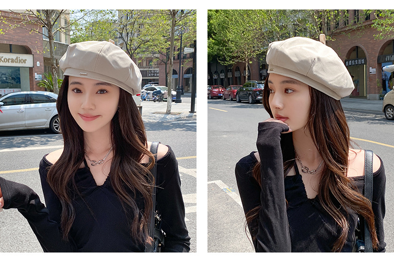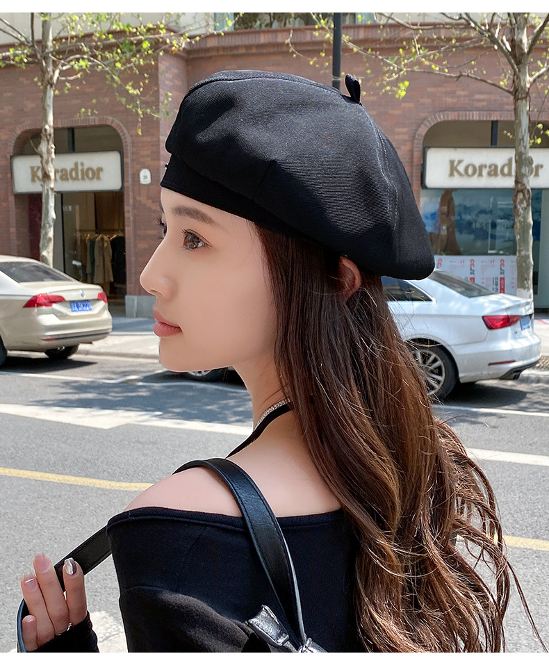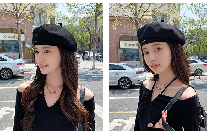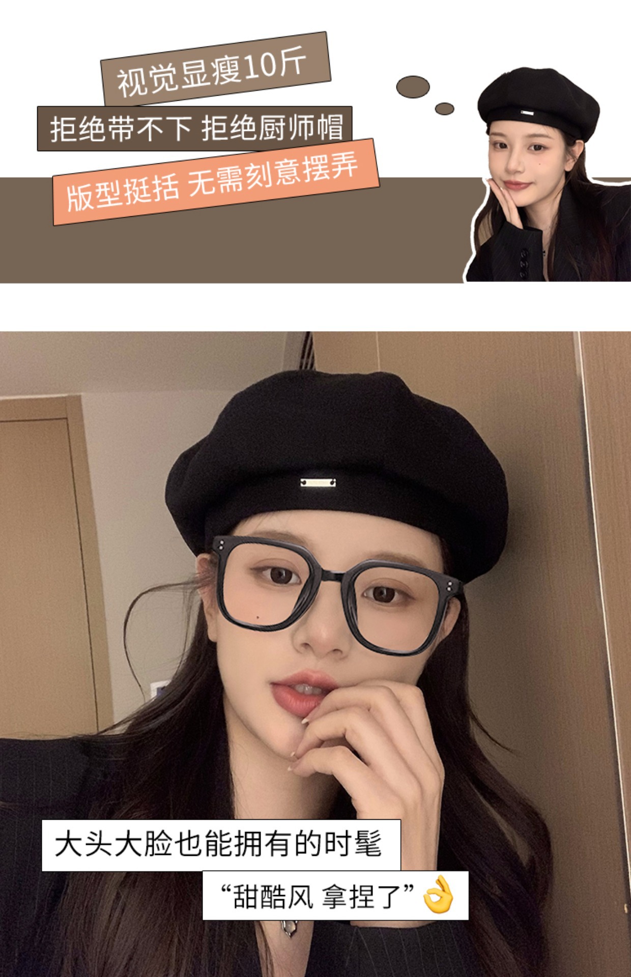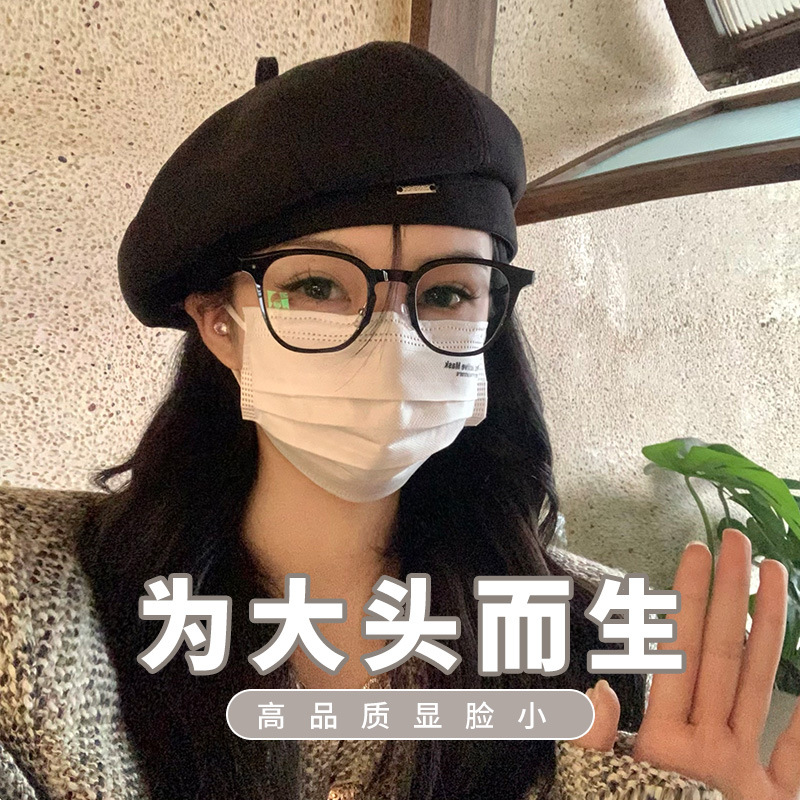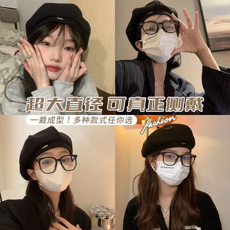 黑色贝雷帽女2023春秋天新款大头围蓓蕾帽显脸小八角画家帽冬季潮
