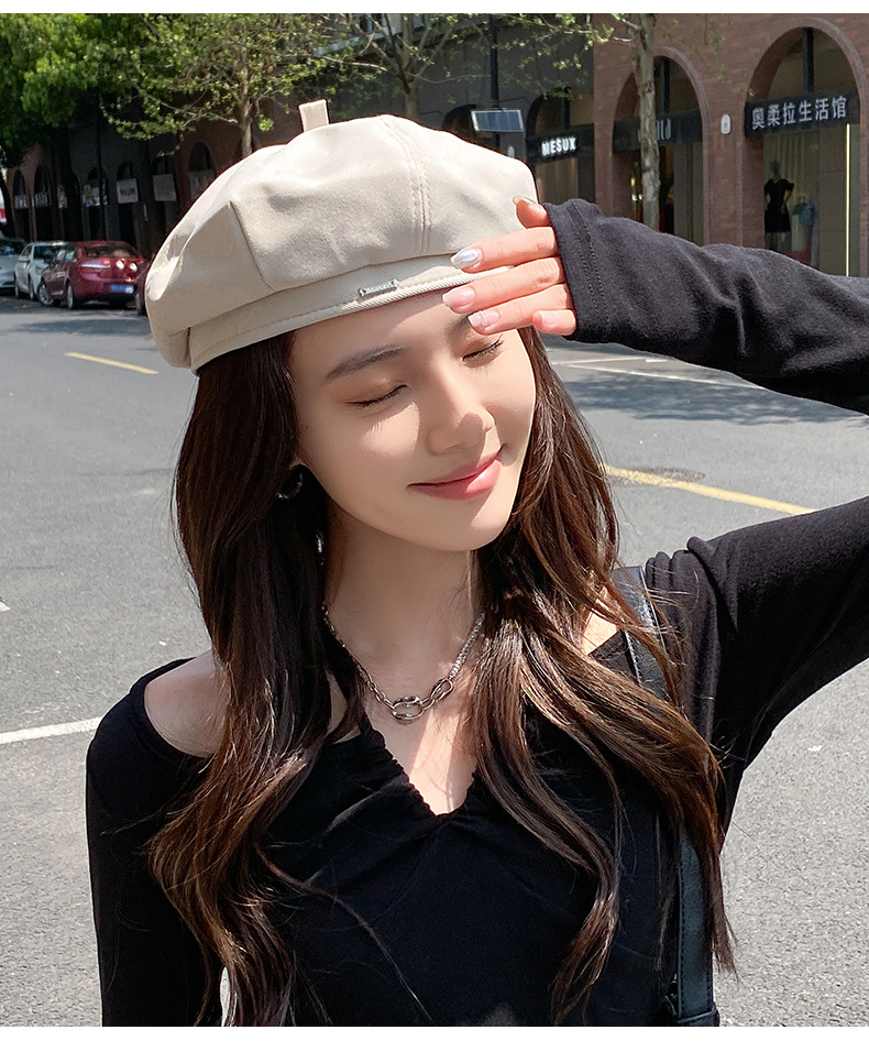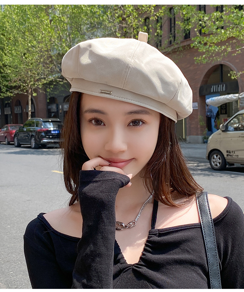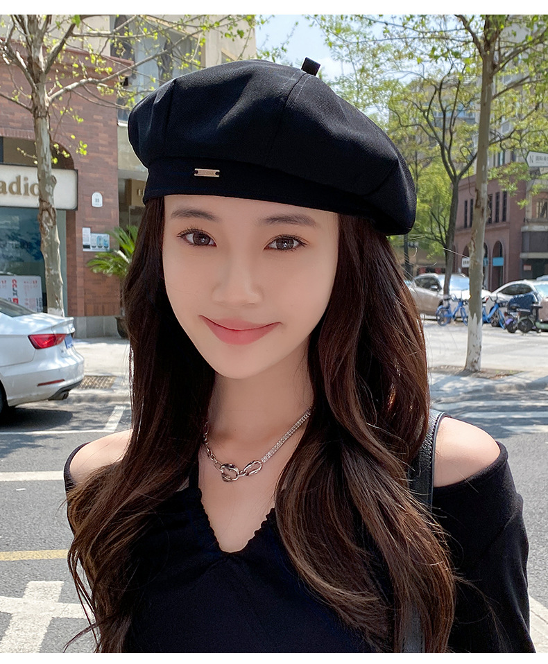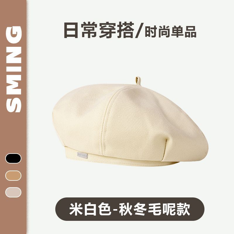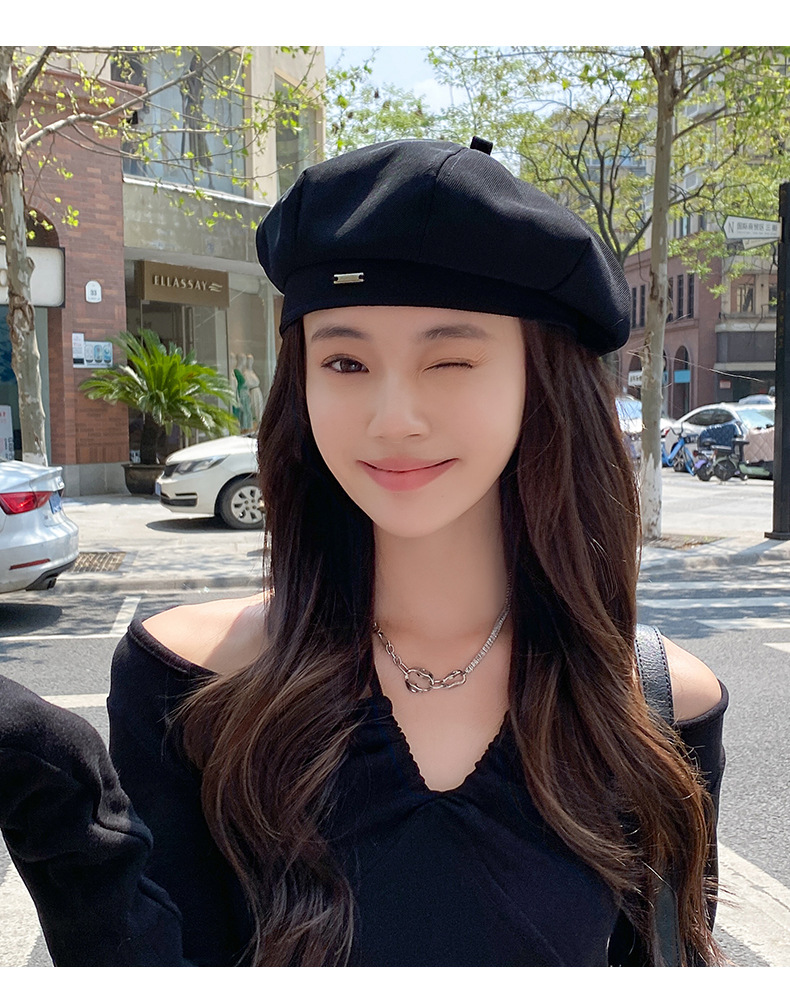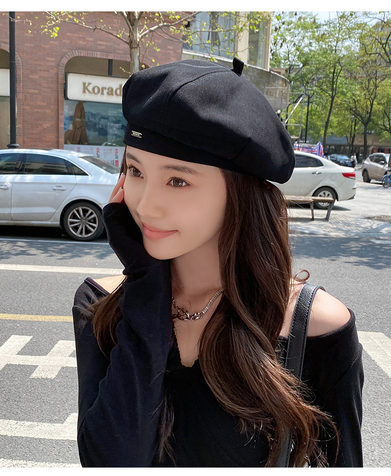 黑色贝雷帽女2023春秋天新款大头围蓓蕾帽显脸小八角画家帽冬季潮