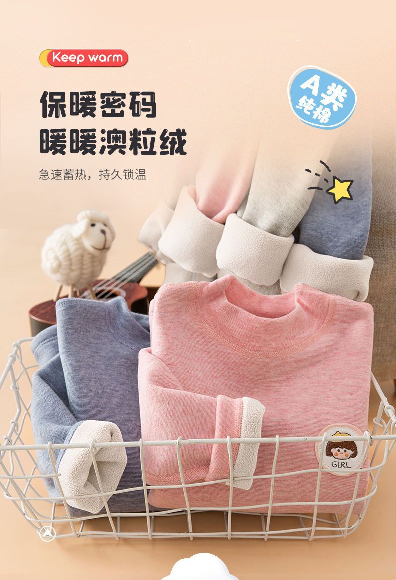 儿童保暖内衣套装加绒加厚奥粒绒无痕秋衣秋裤秋冬男童女童睡衣