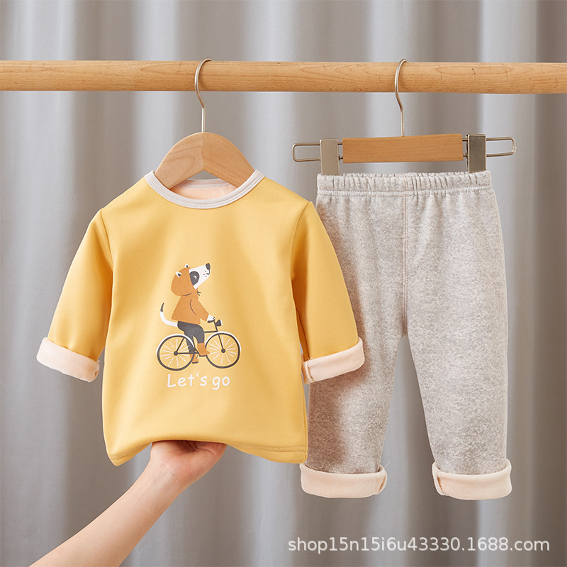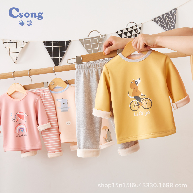 儿童保暖内衣套装秋冬季宝宝加绒加厚家居服睡衣男童女童秋衣秋裤