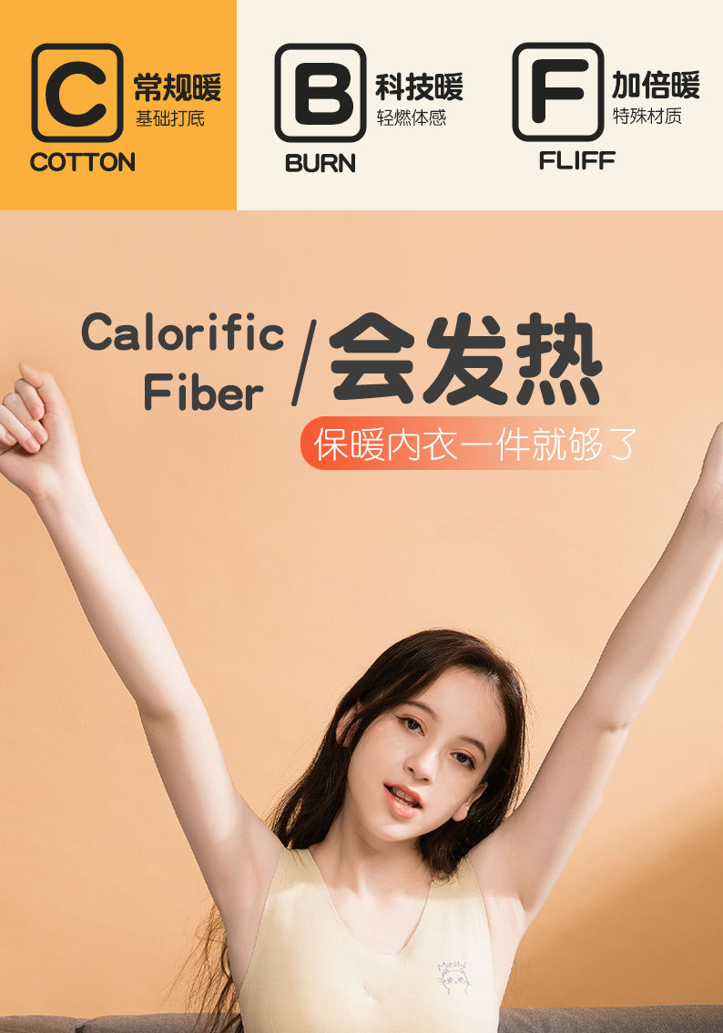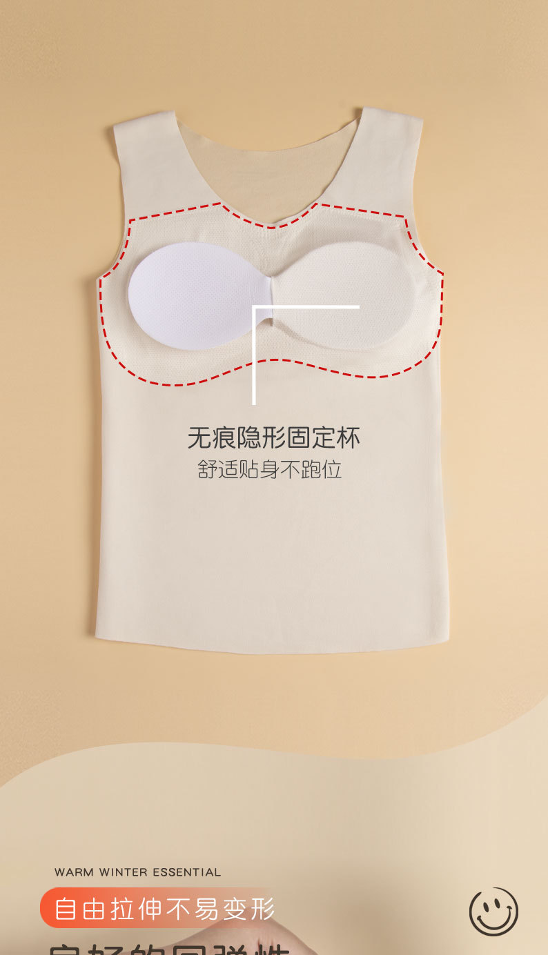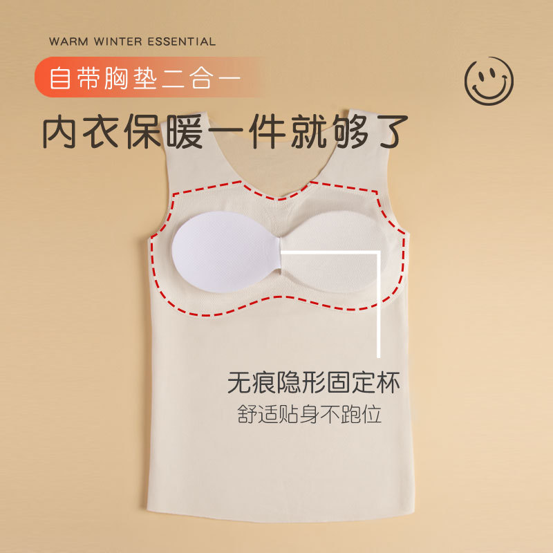 发育期少女德绒保暖内衣女童小学初高中学生带胸垫保暖背心秋冬款