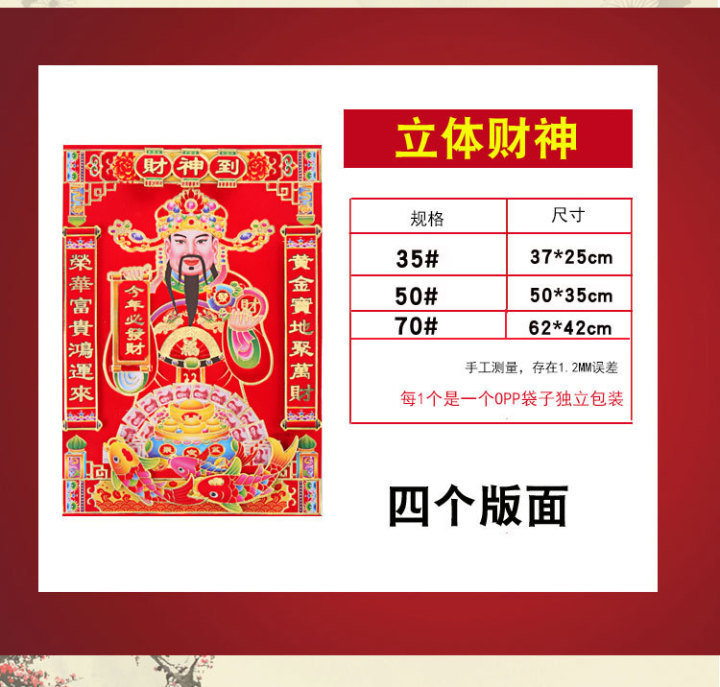| no. 50 three-dimensional god of wealth randomly sent(50号立体财神随机发) | USD $0.53 | 20250 piece available |