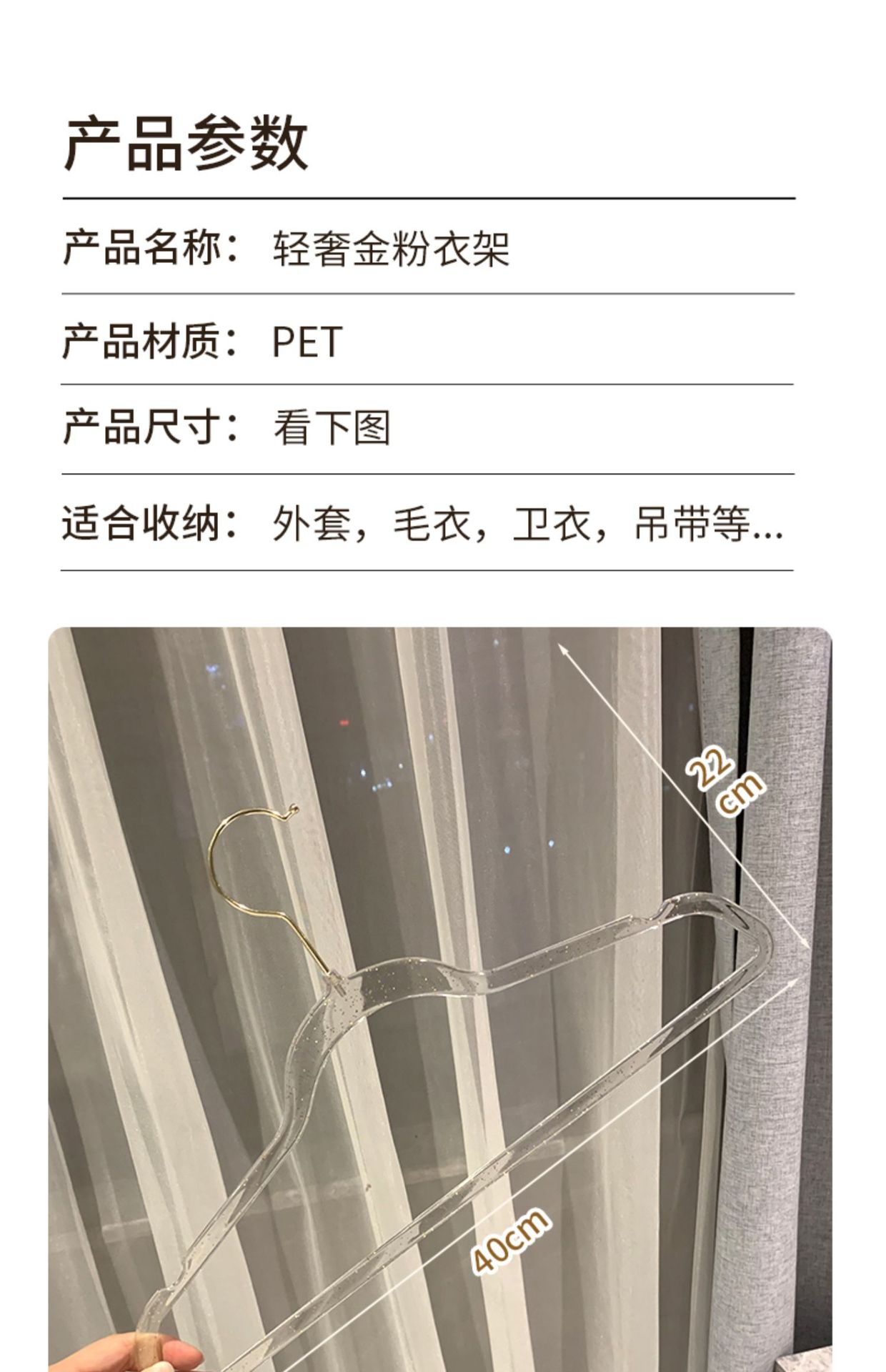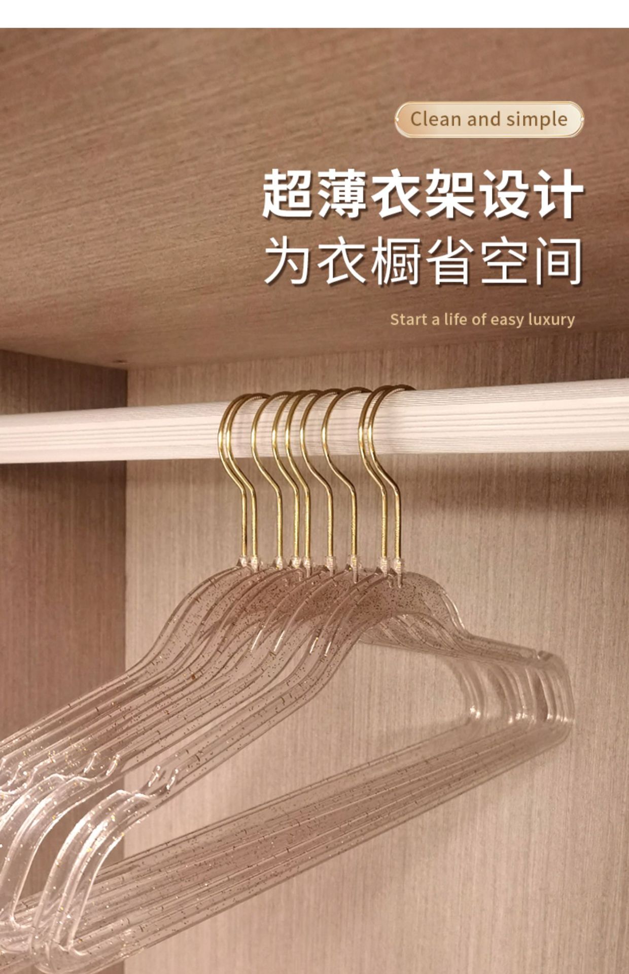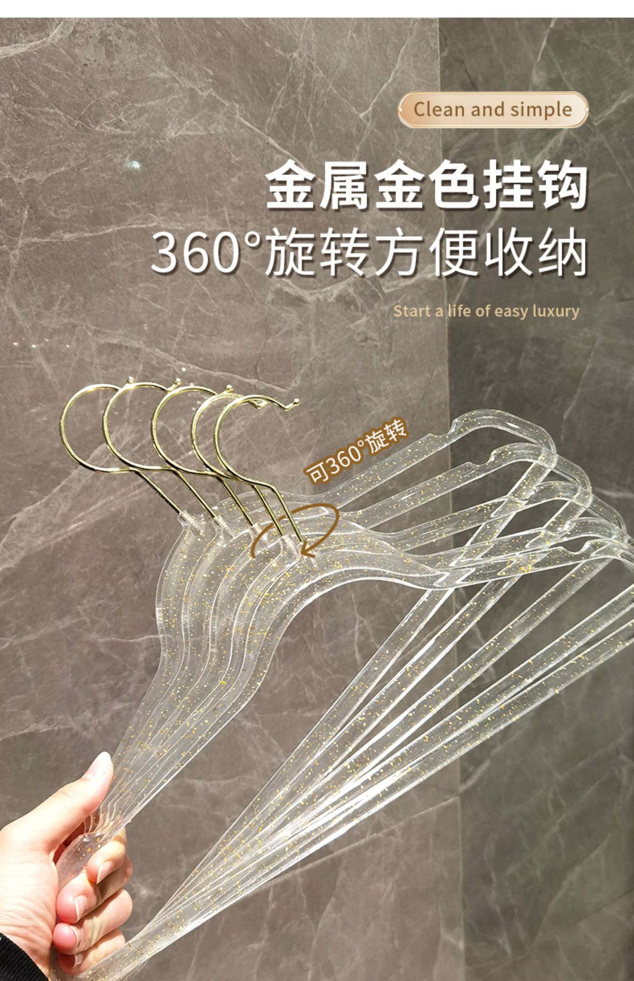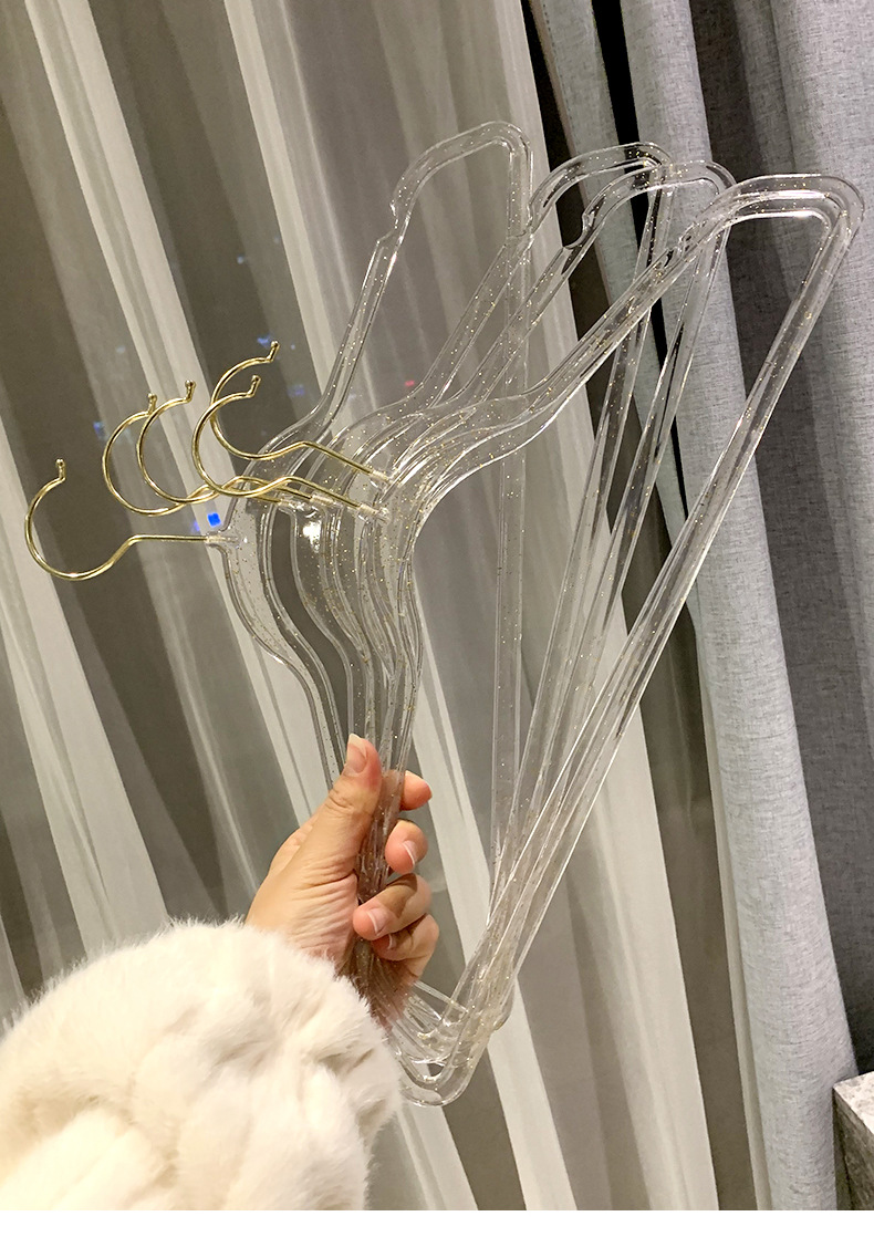 透明家居家用衣架亚克力闪粉金粉水晶衣撑衣挂晾衣架耐热批发衣架