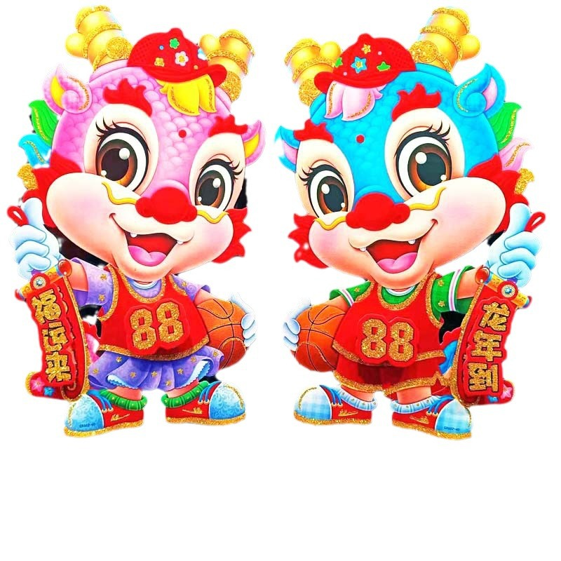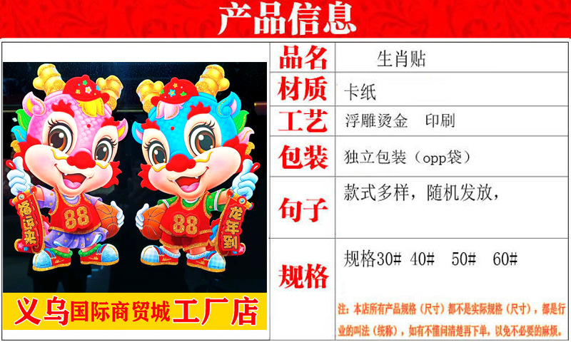 门贴2024龙年立体生肖门贴批发植绒生肖贴卡通生肖立体龙生肖年画