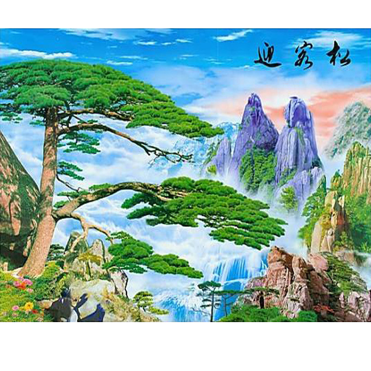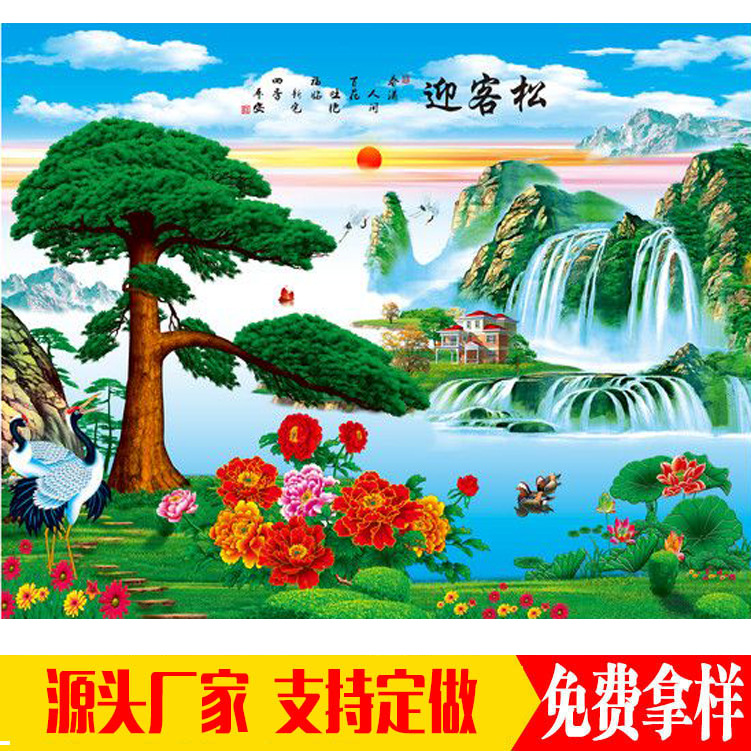 春节年画客厅装饰墙画八骏图 迎客松 山水 风景 宝宝 财神画