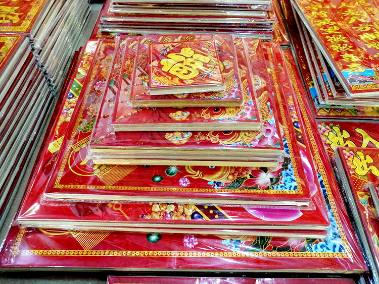 新款不干胶福字春节斗方批发福字门贴春节用品小福子自带胶地摊货