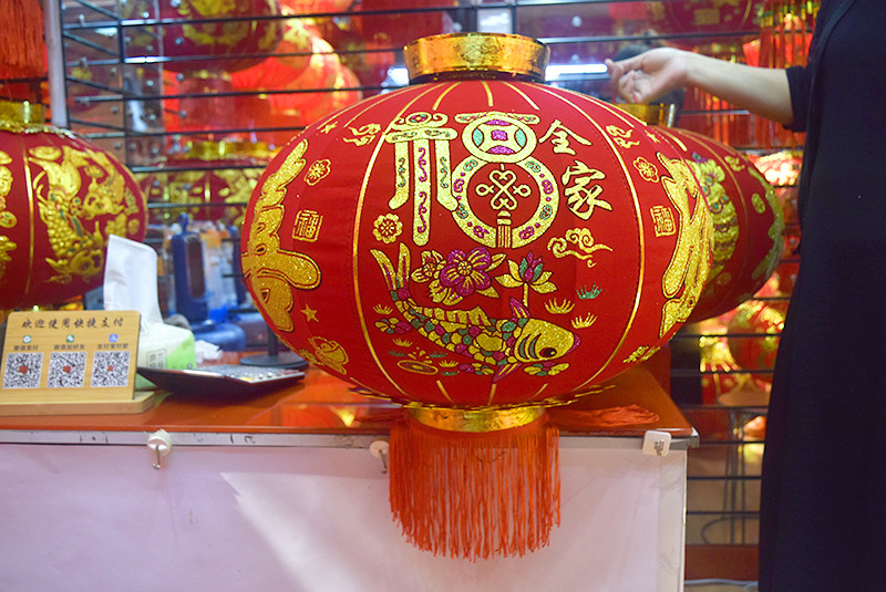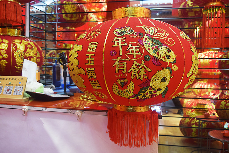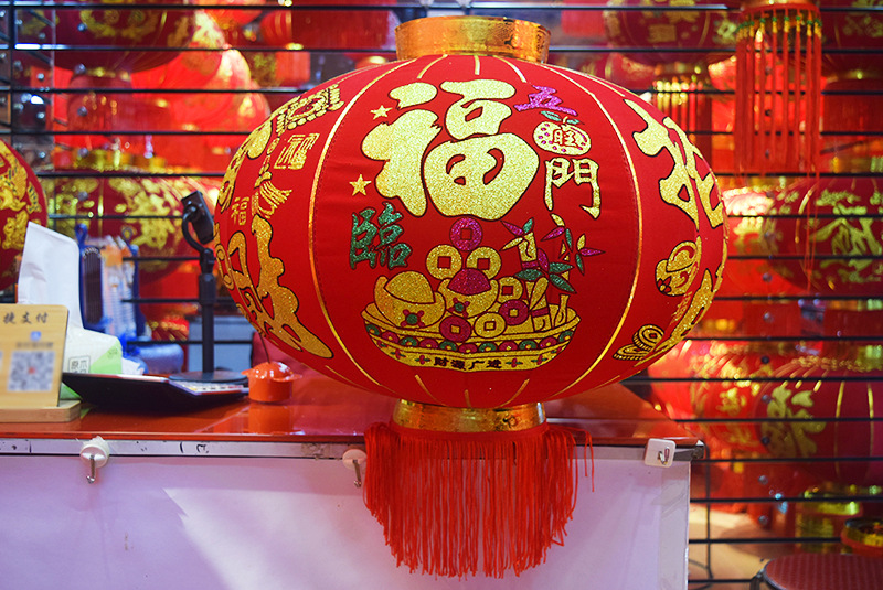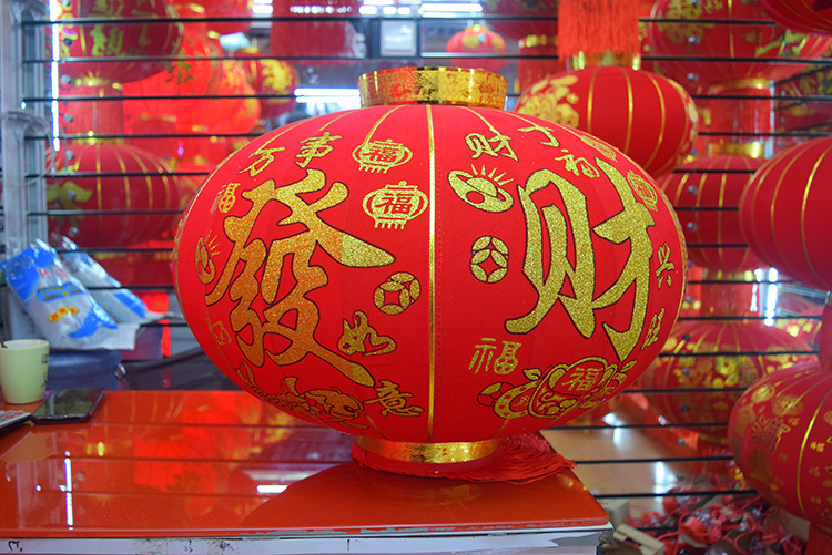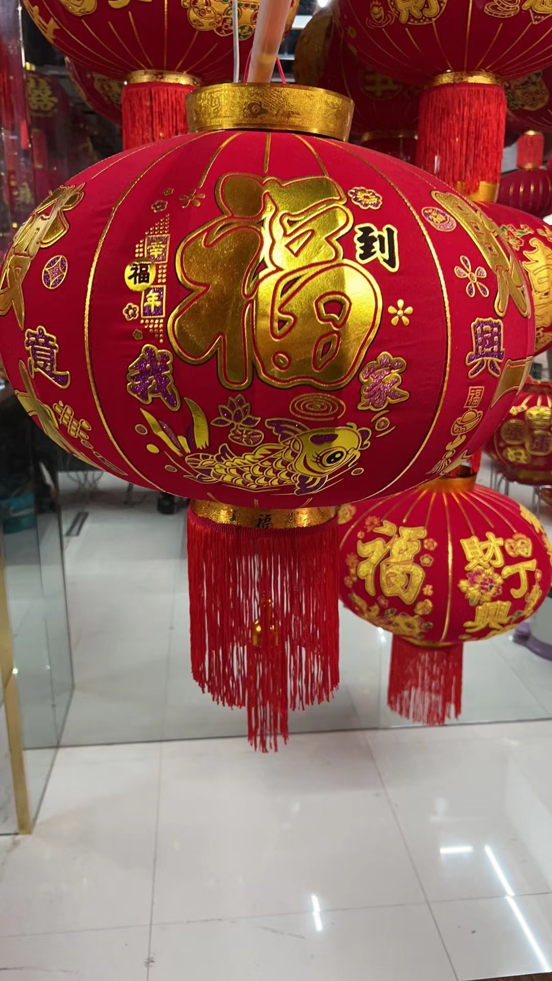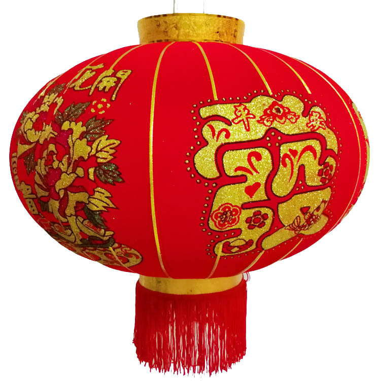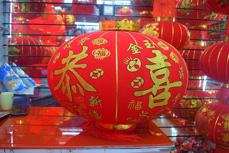 60新款植绒布灯笼批发 大红80短杆灯笼 过年灯笼地摊宫灯100 120