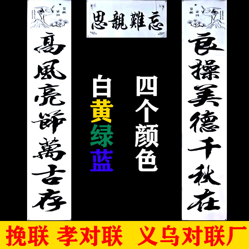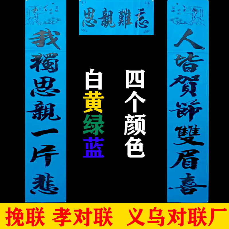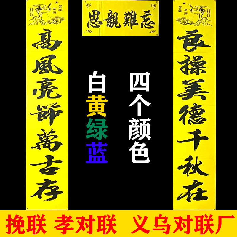 孝对丧对白事丧事绿白蓝黄守孝对联追悼守孝思亲挽联厂家直营批发