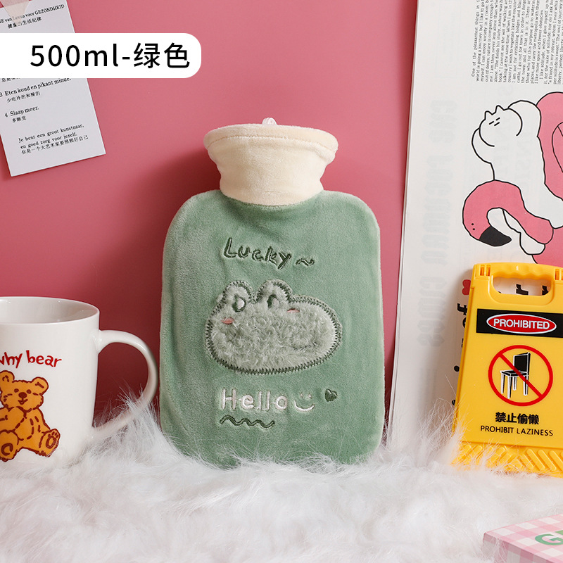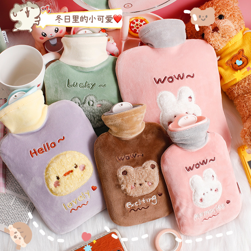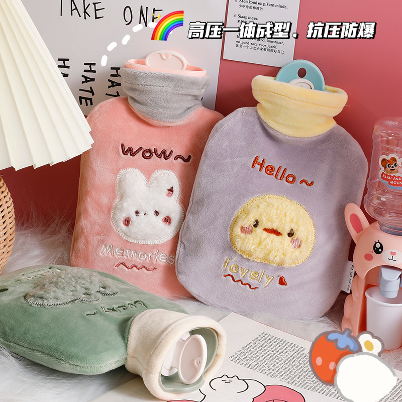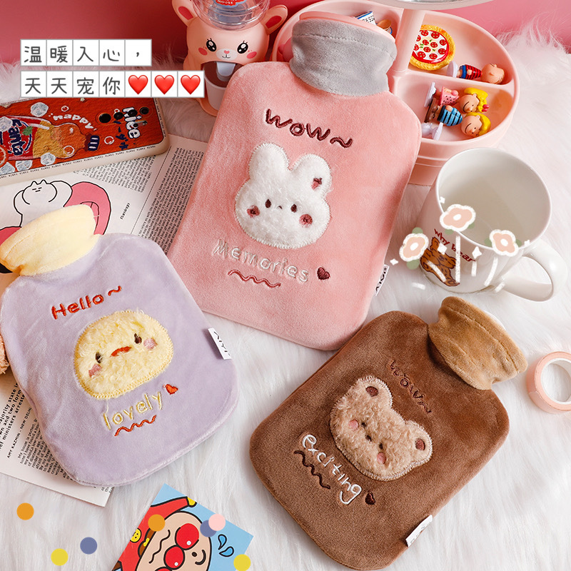 毛绒刺绣注水pvc暖手袋冬季保暖户外暖手宝防爆热水袋 大容量水袋