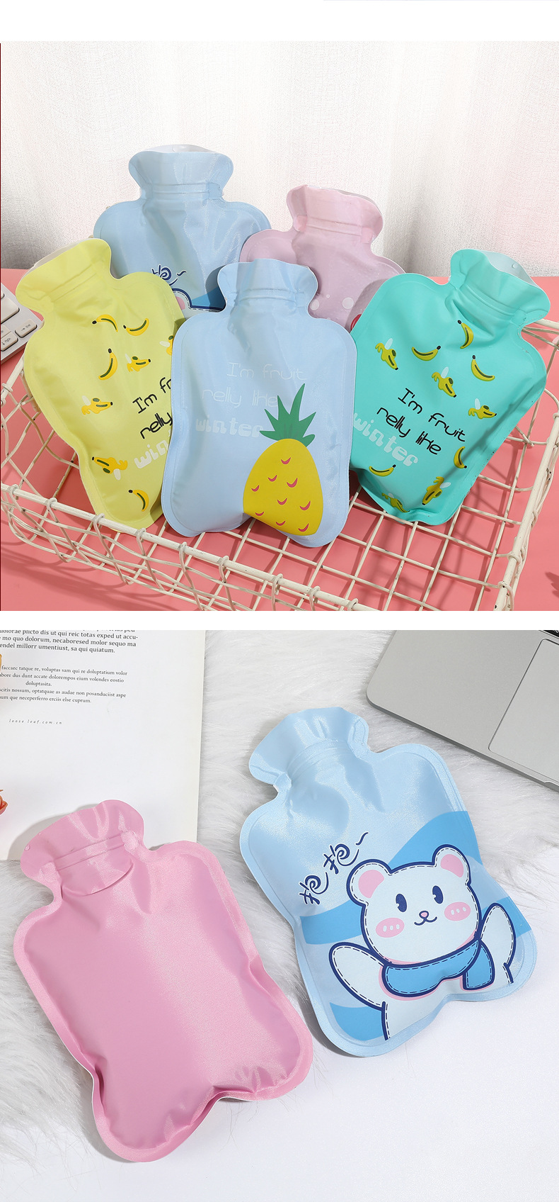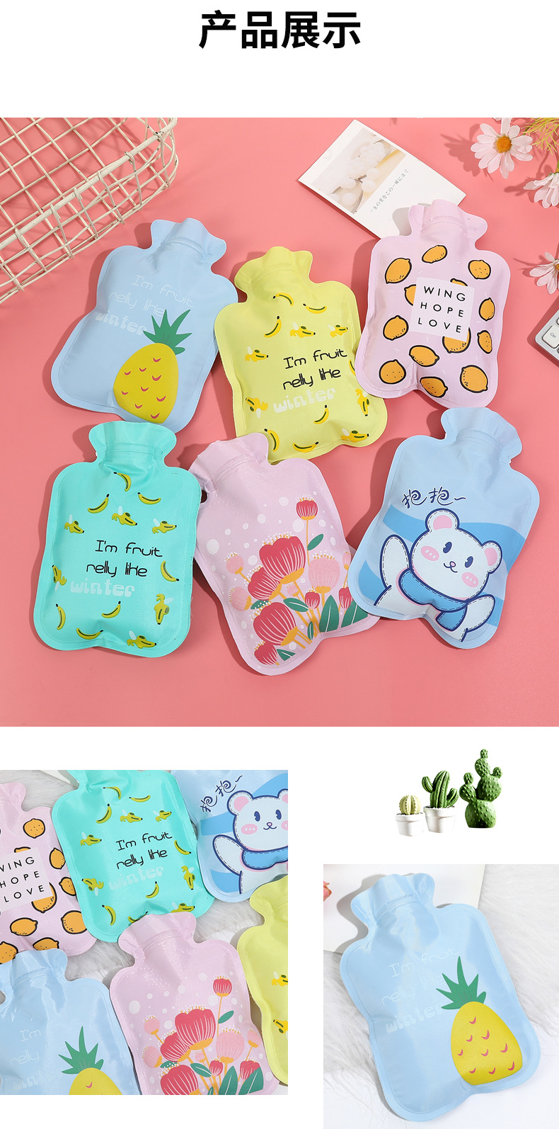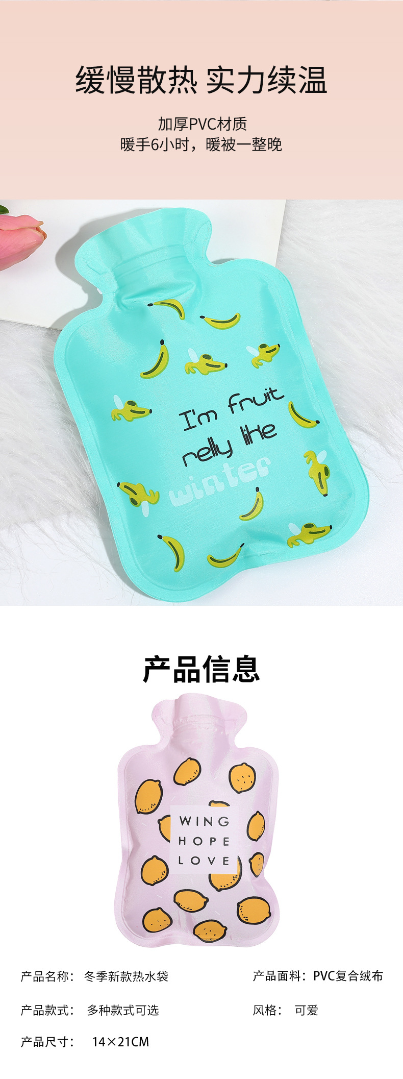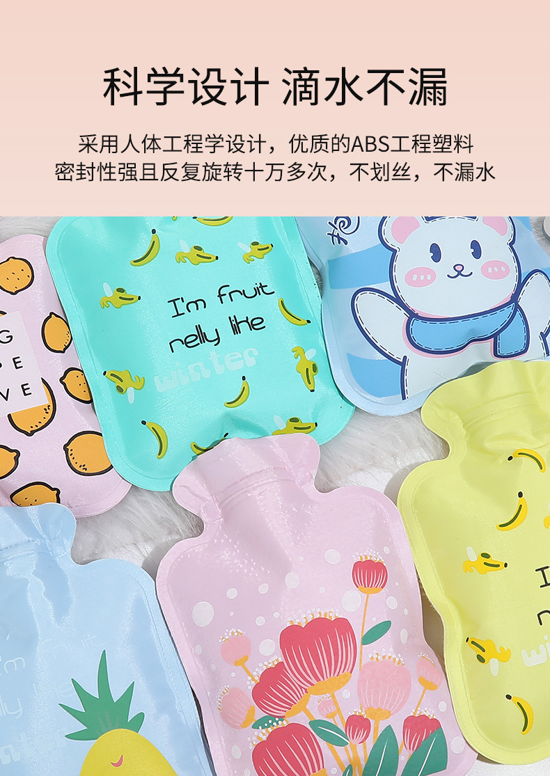 大号花布注水热水袋学生卡通动物暖手袋水果图案花布暖手宝印logo