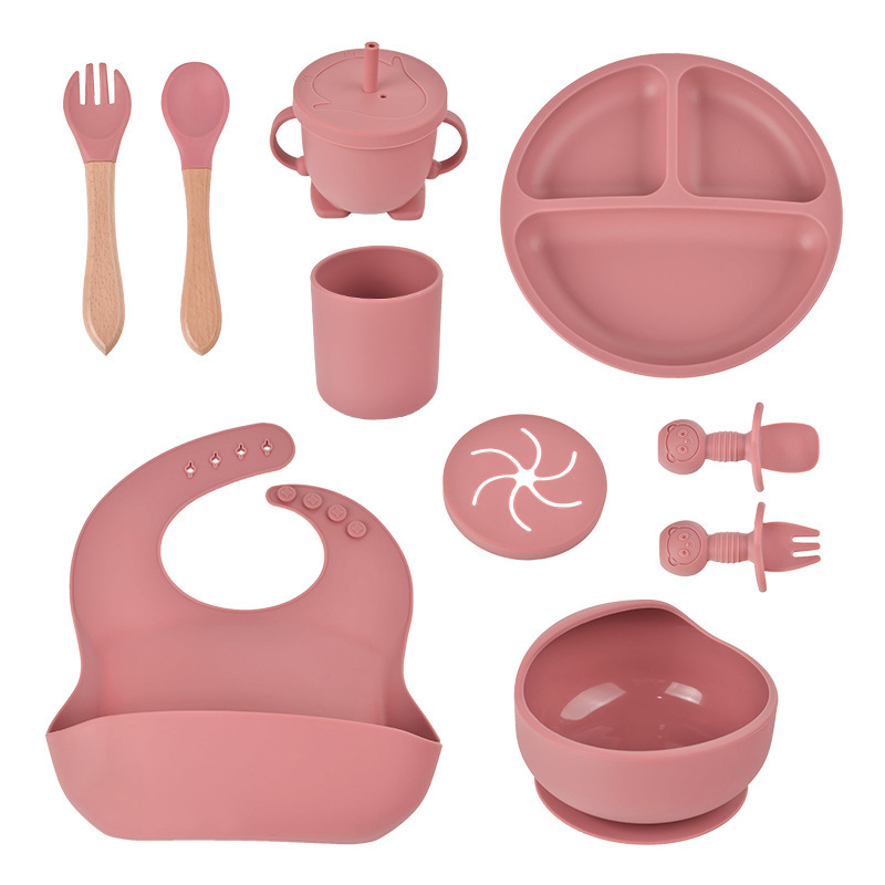 日用 儿童餐具套装组合 10件套硅胶辅食吸盘碗笑脸餐盘围兜
