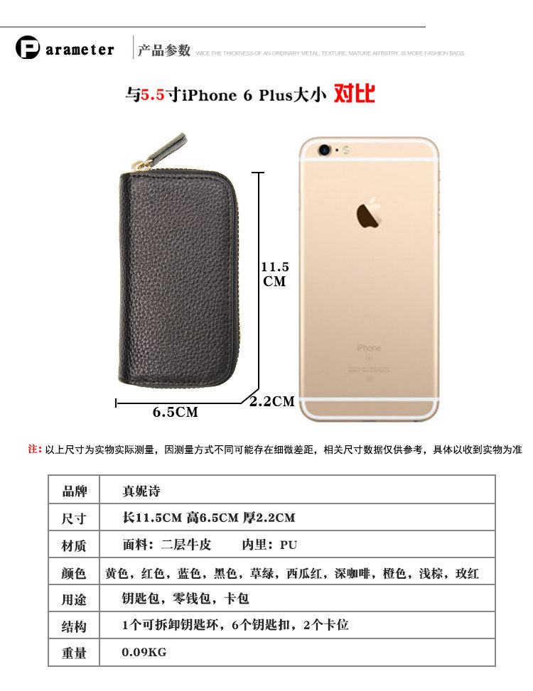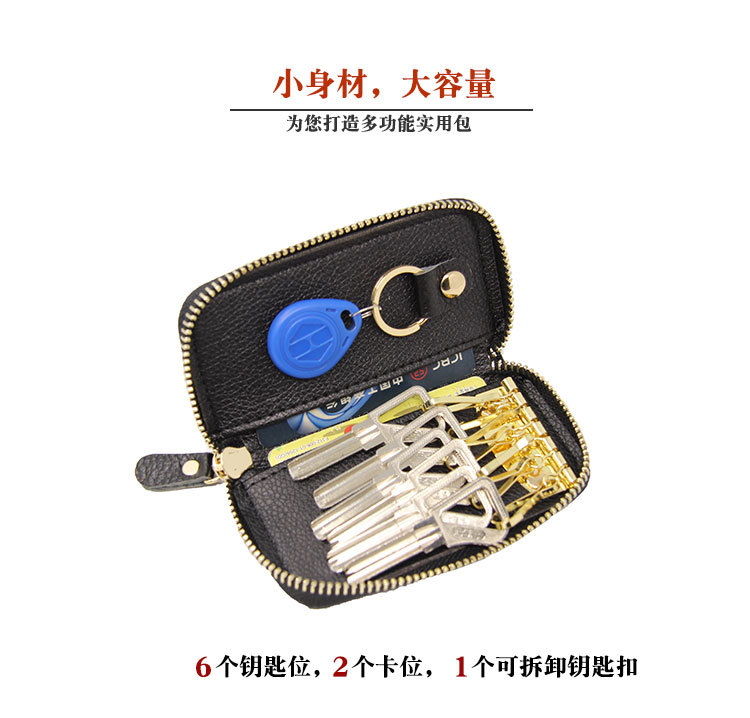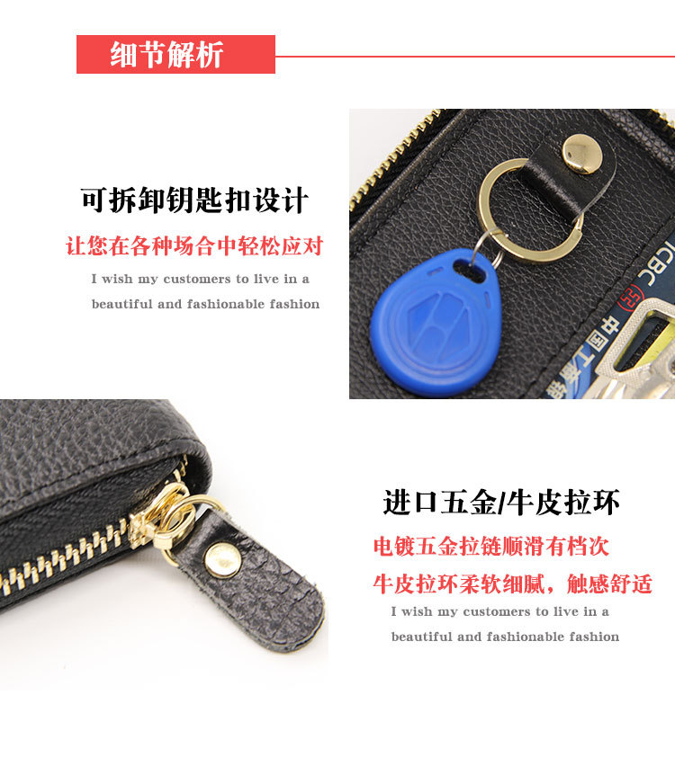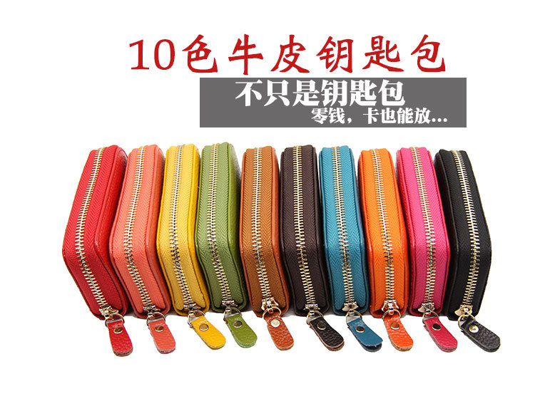 厂家批发 牛皮钥匙包锁匙包女式零钱包卡包拉链多功能门用钥匙包