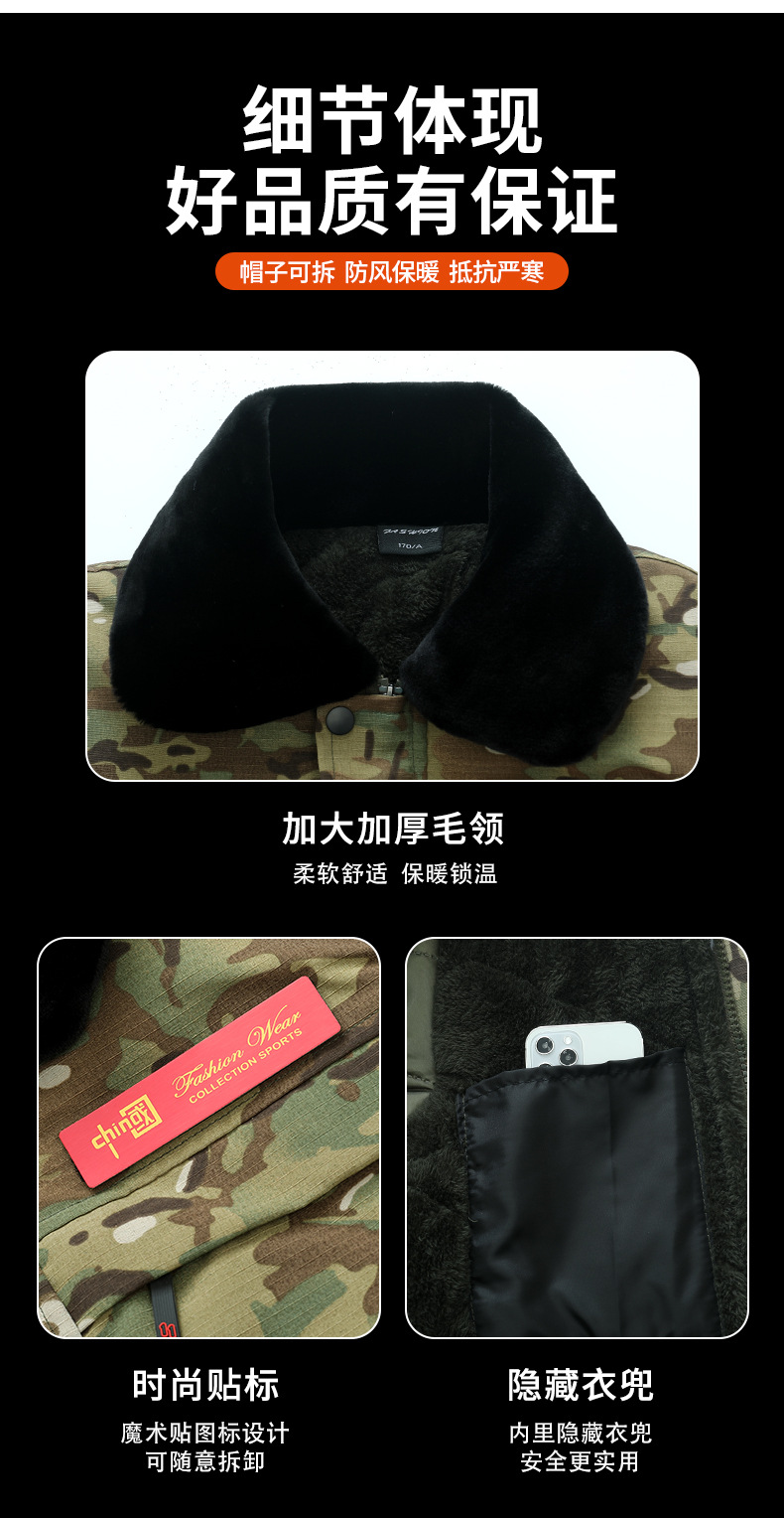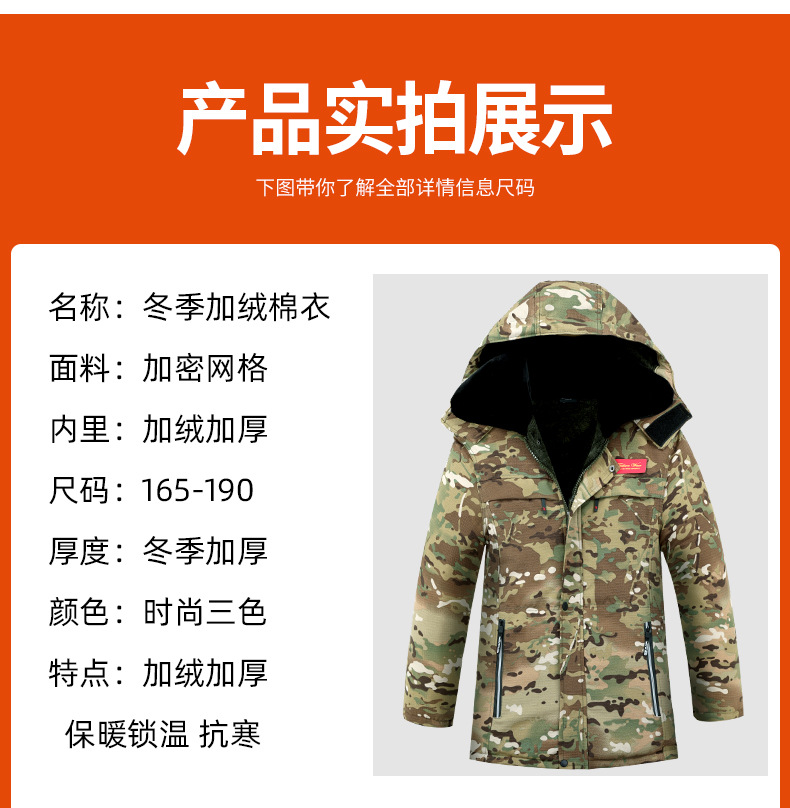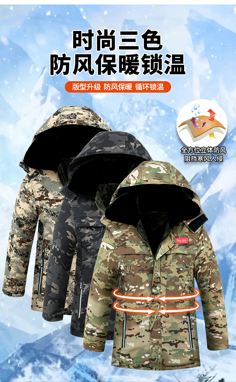 迷彩棉服棉衣男士冬季工作服军大衣保暖加厚外套冷库防寒劳保棉袄