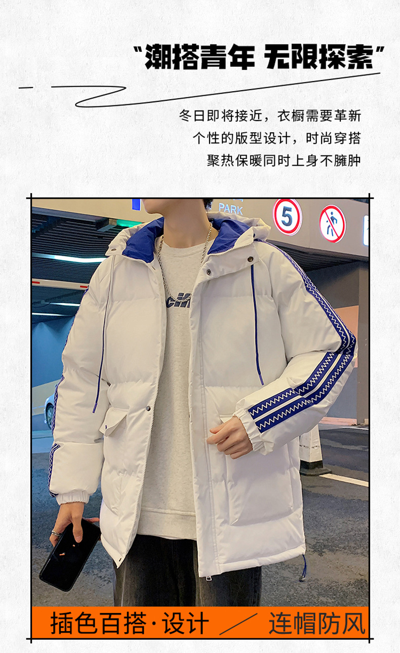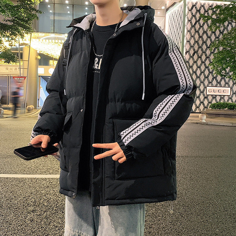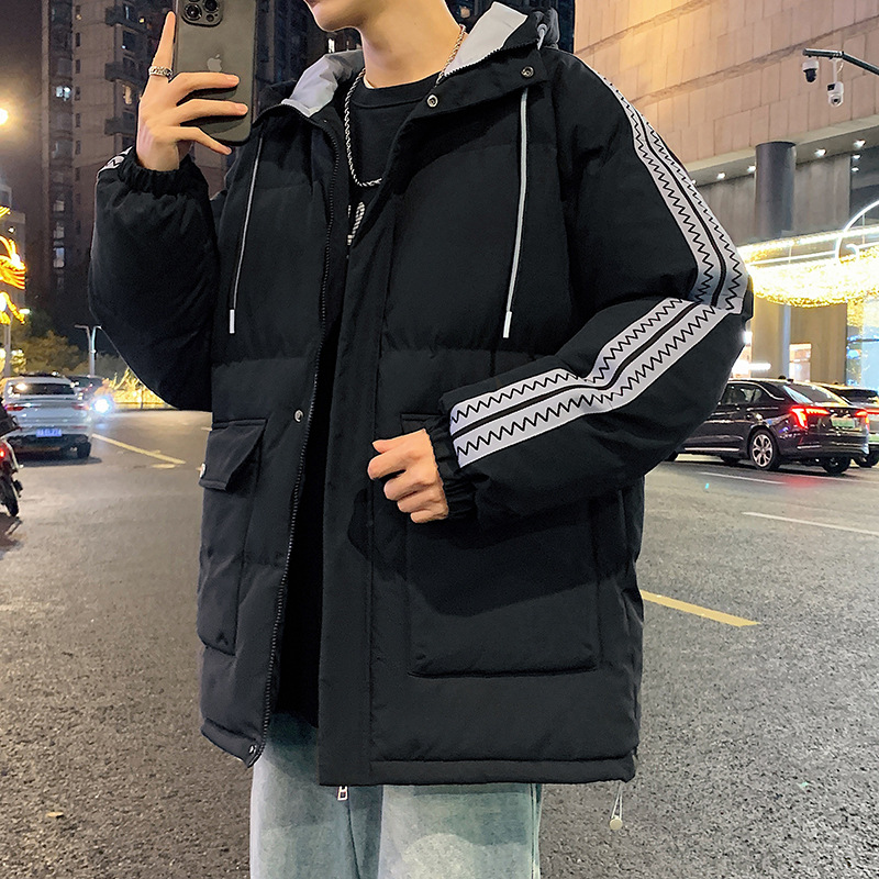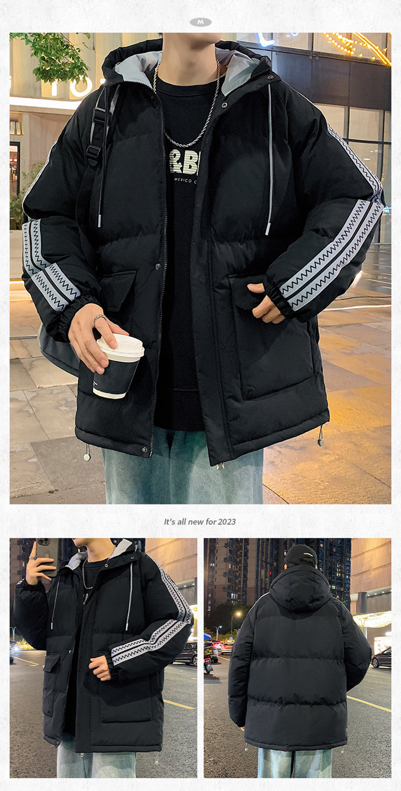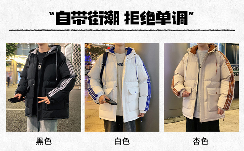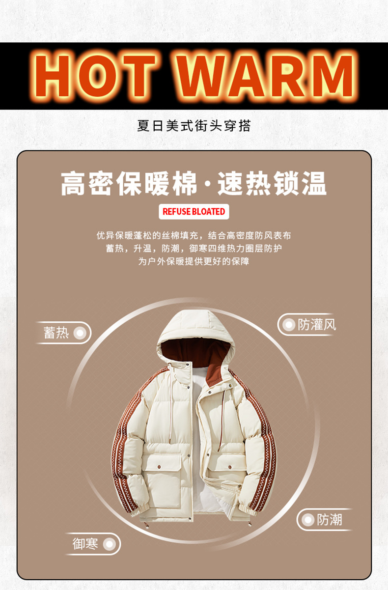 美式工装羽绒棉服男款冬季新款侧条纹加厚棉衣oversize连帽棉袄子