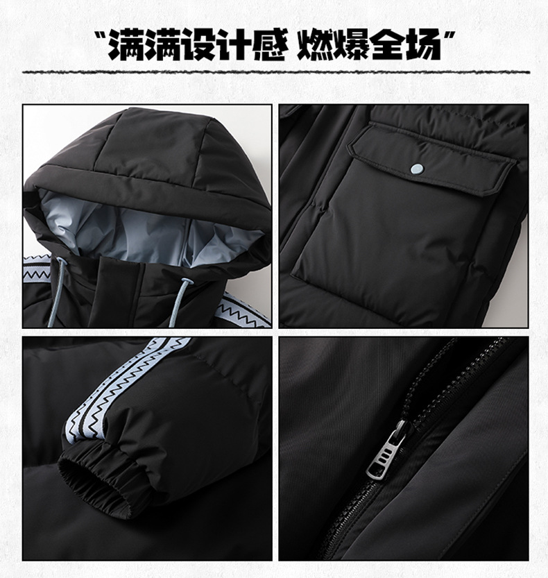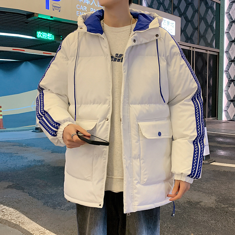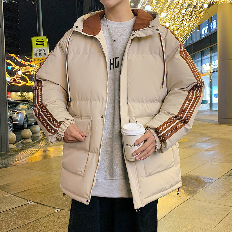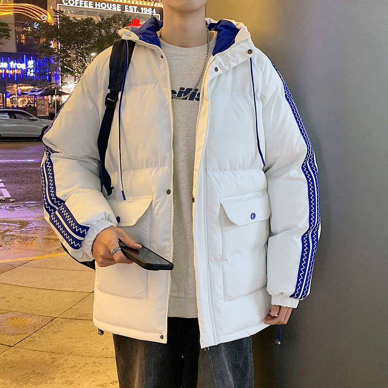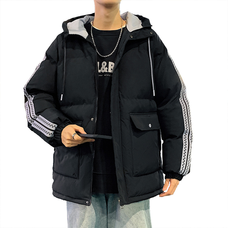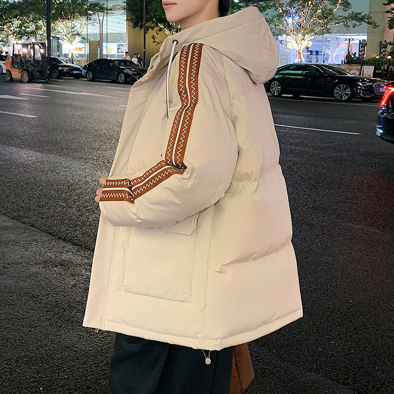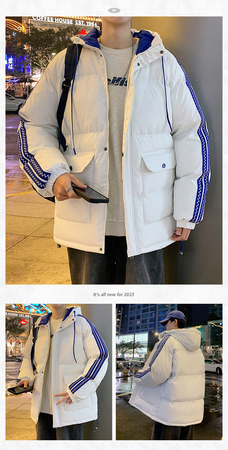 美式工装羽绒棉服男款冬季新款侧条纹加厚棉衣oversize连帽棉袄子