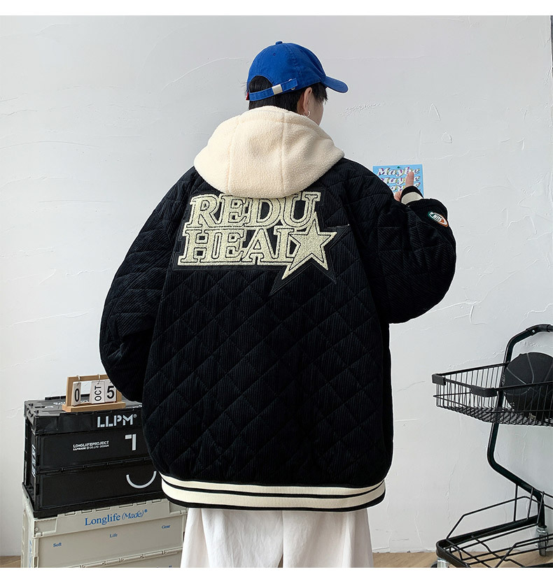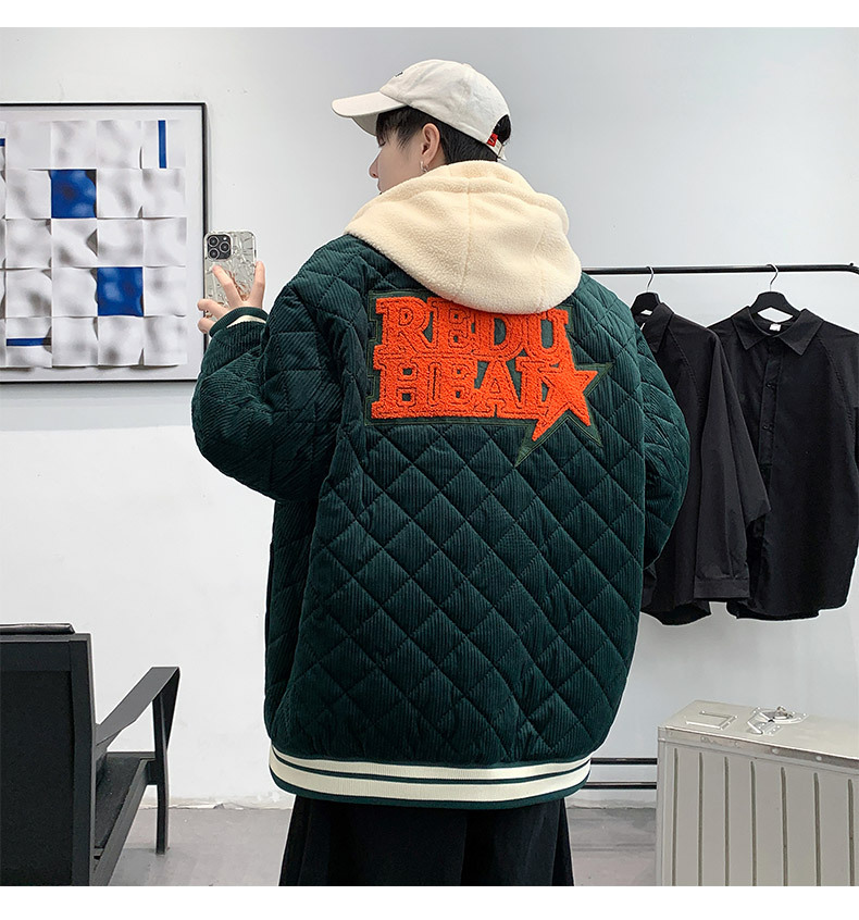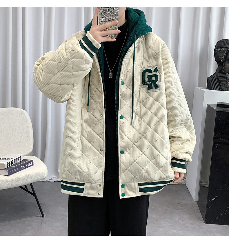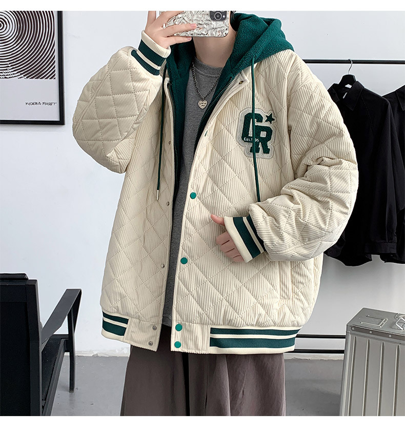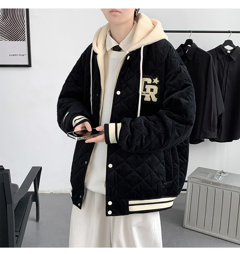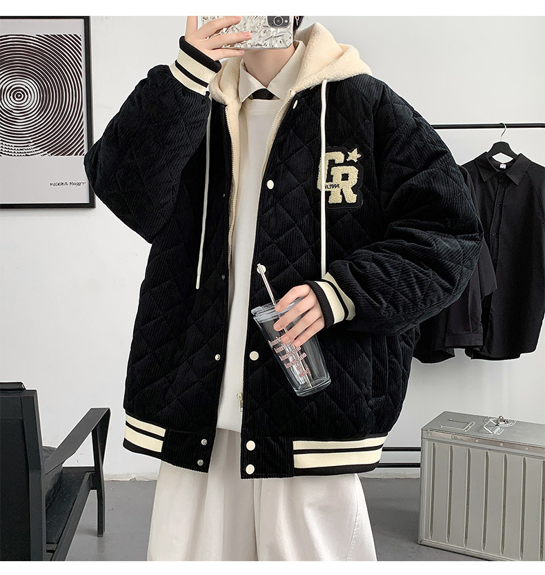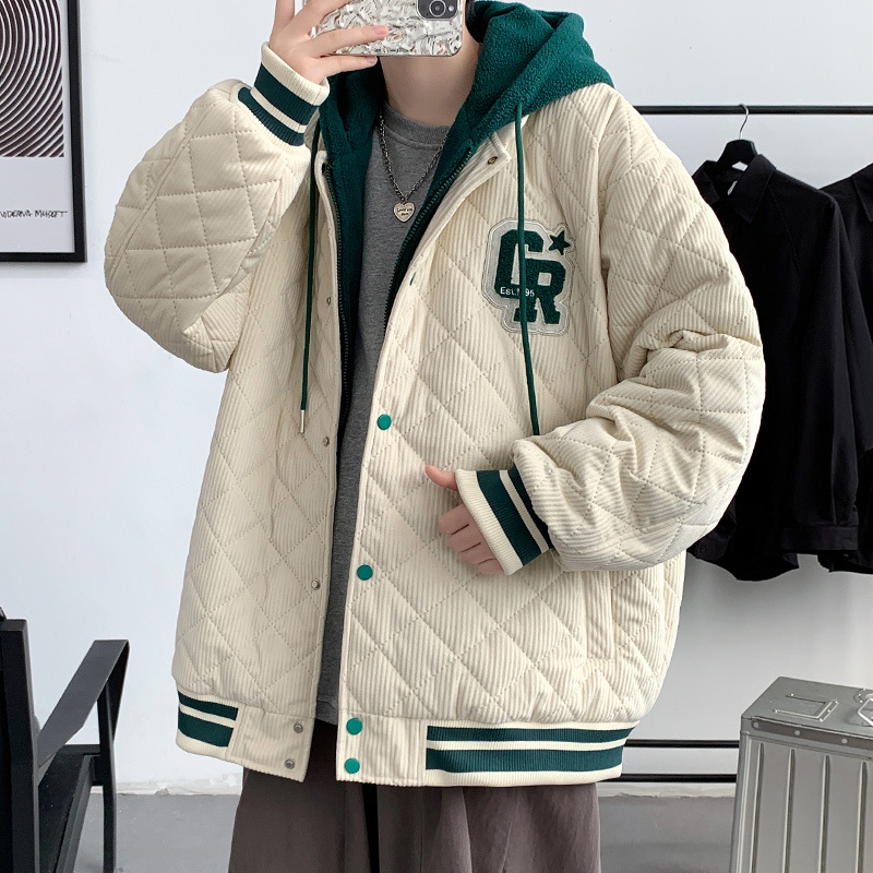 2023新款冬季假两件连帽棉服夹克外套男加厚保暖宽松学生情侣棉衣